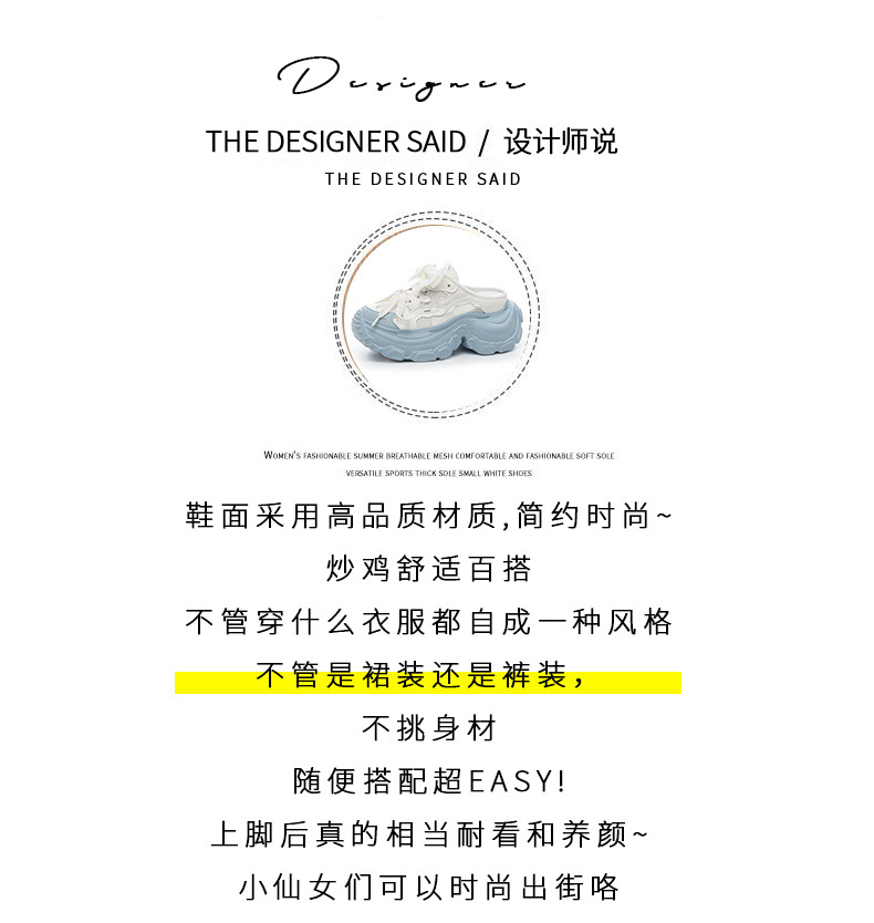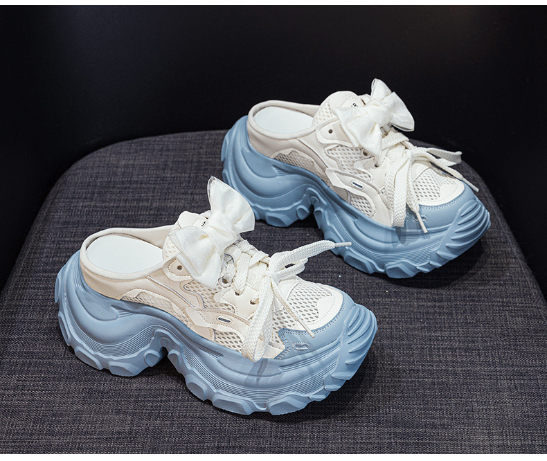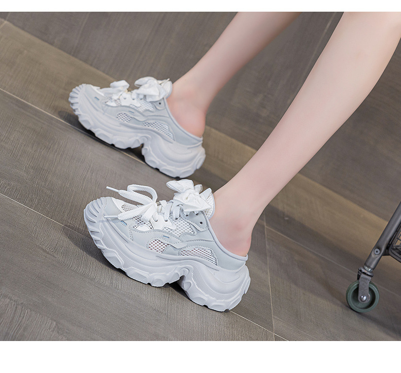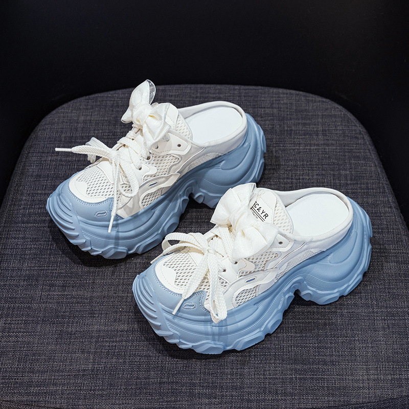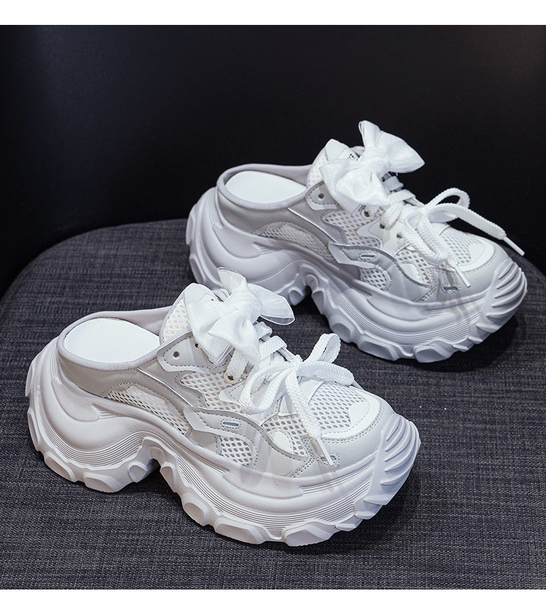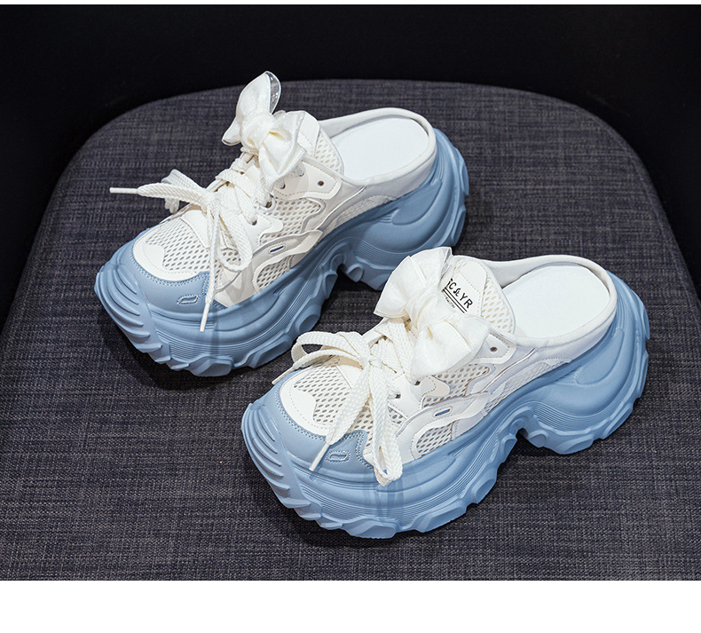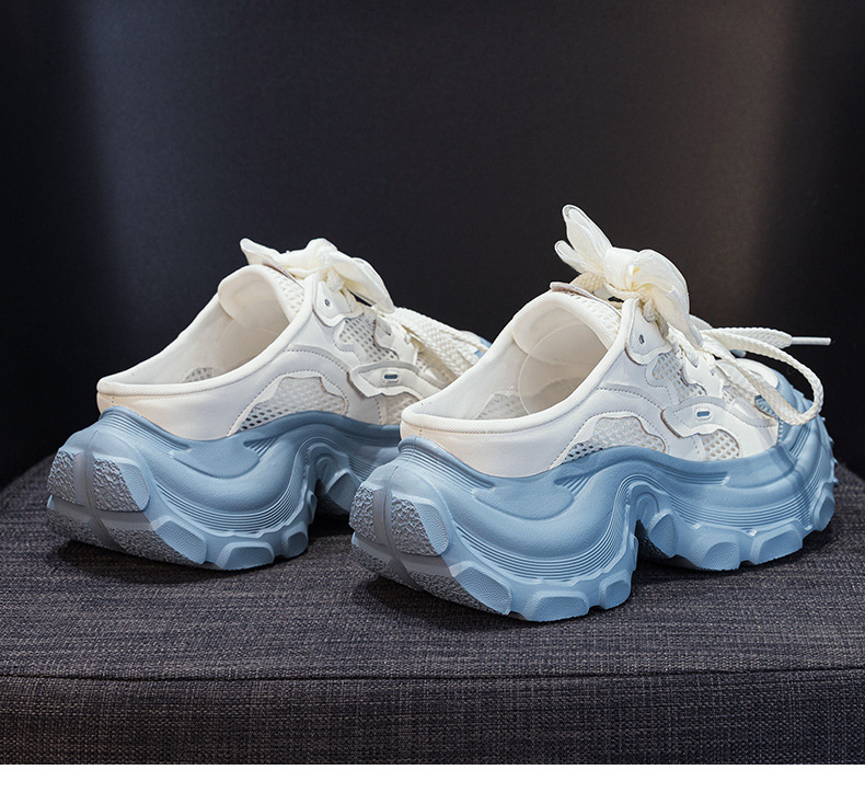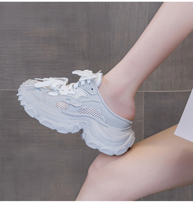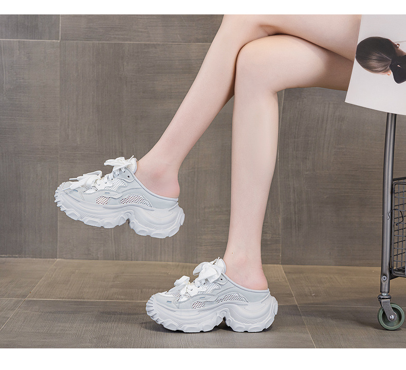 두꺼운 밑창 높이 증가 Baotou 하프 슬리퍼 여성의 2025 새로운 아버지 신발 빈 통기성 샌들 캐주얼 패션 게으른 슬리퍼