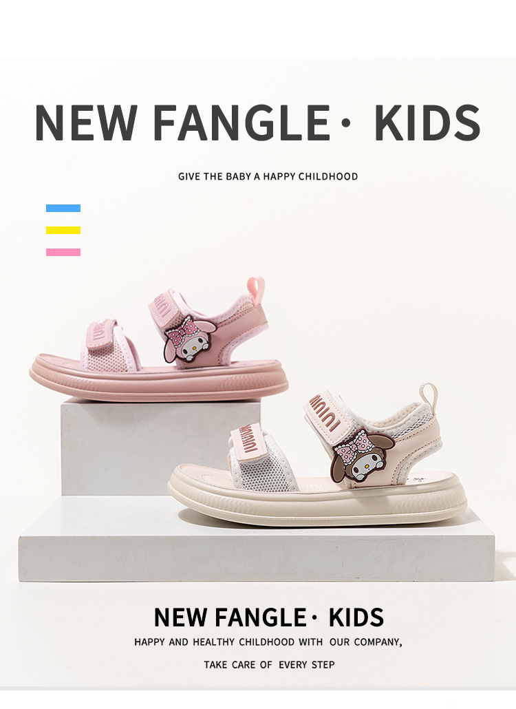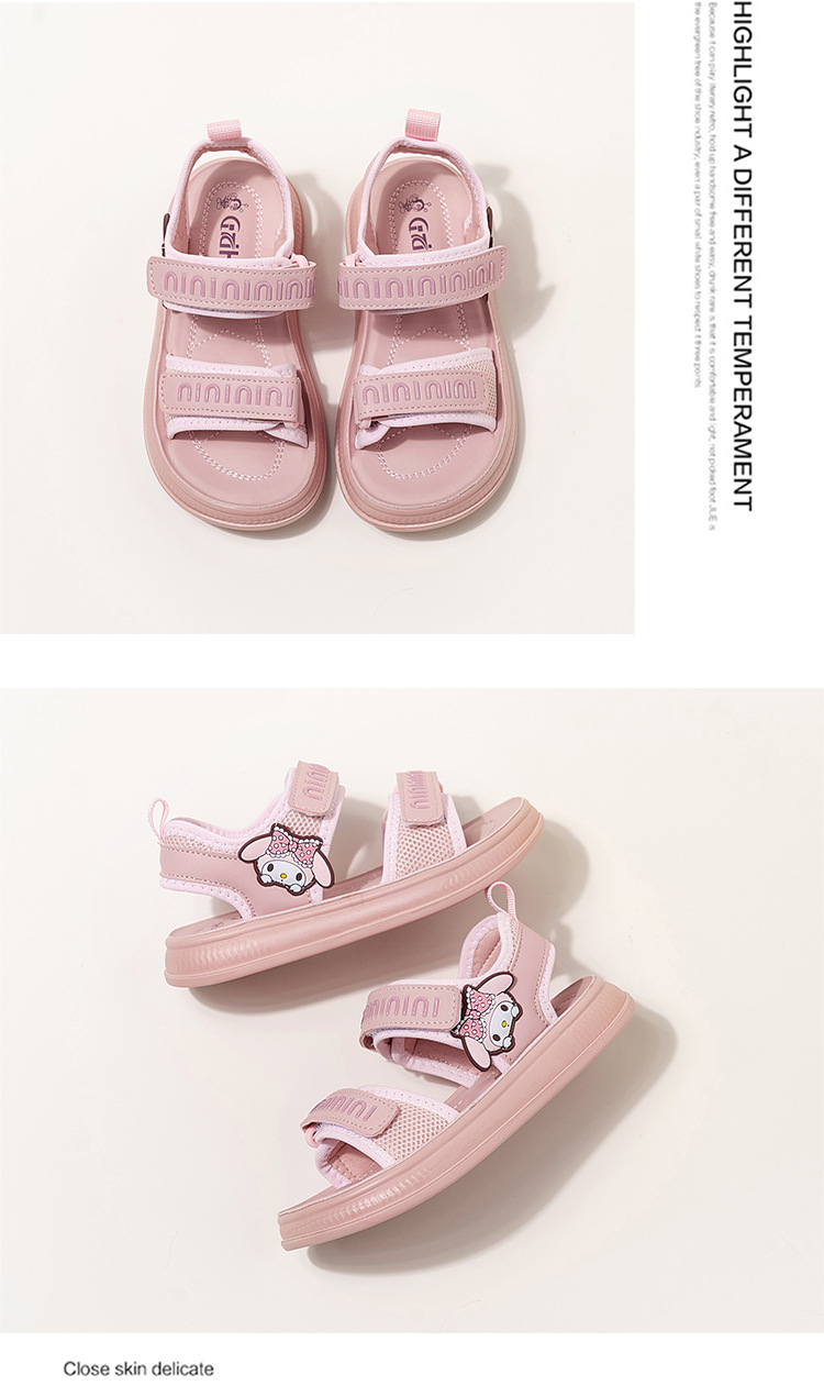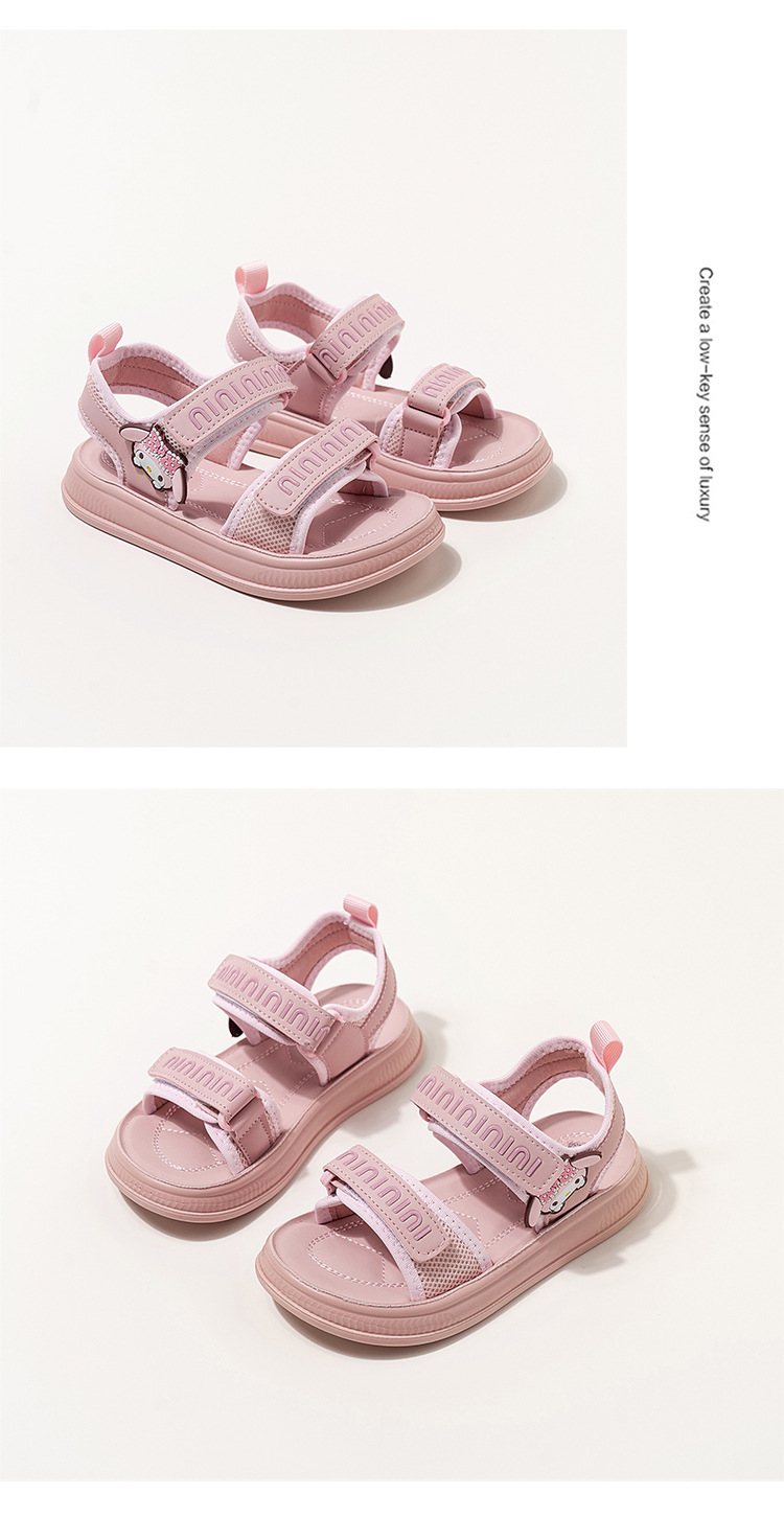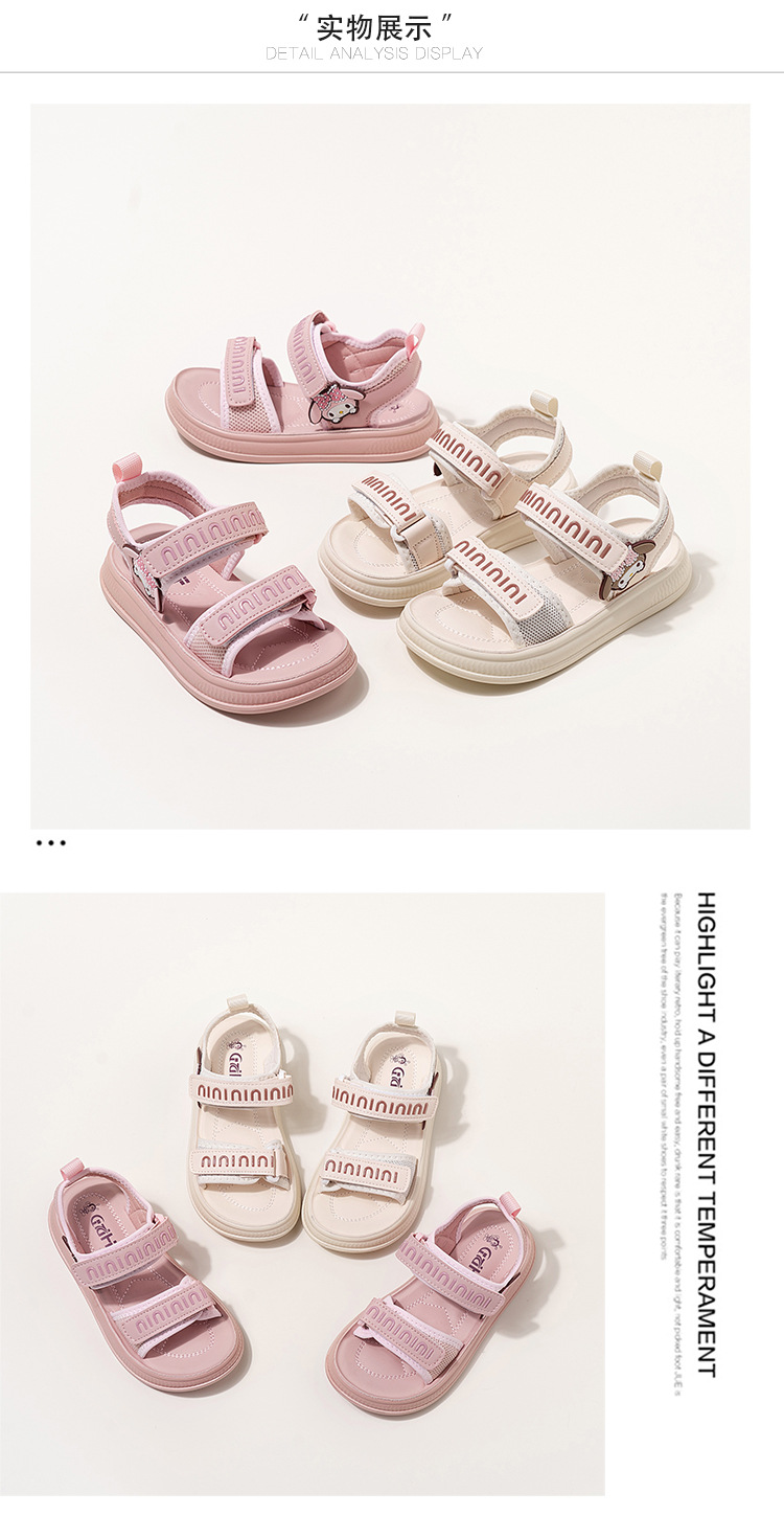 소녀 샌들 여름 새로운 벨크로 소녀 신발 소프트 단독 대형 어린이 신발 만화 미끄럼 방지 소녀 비치 슈즈