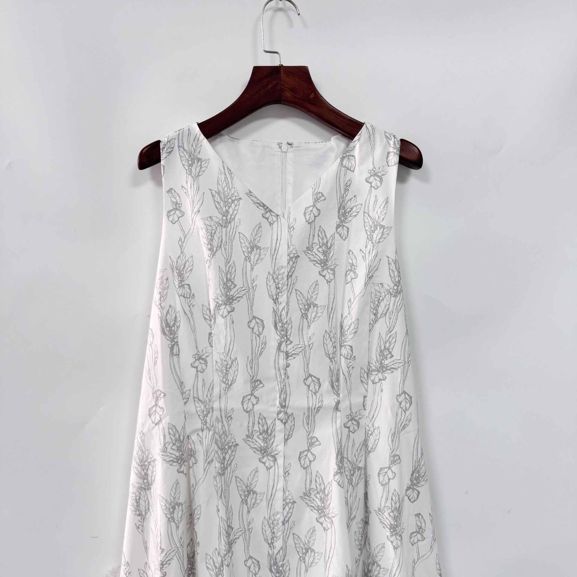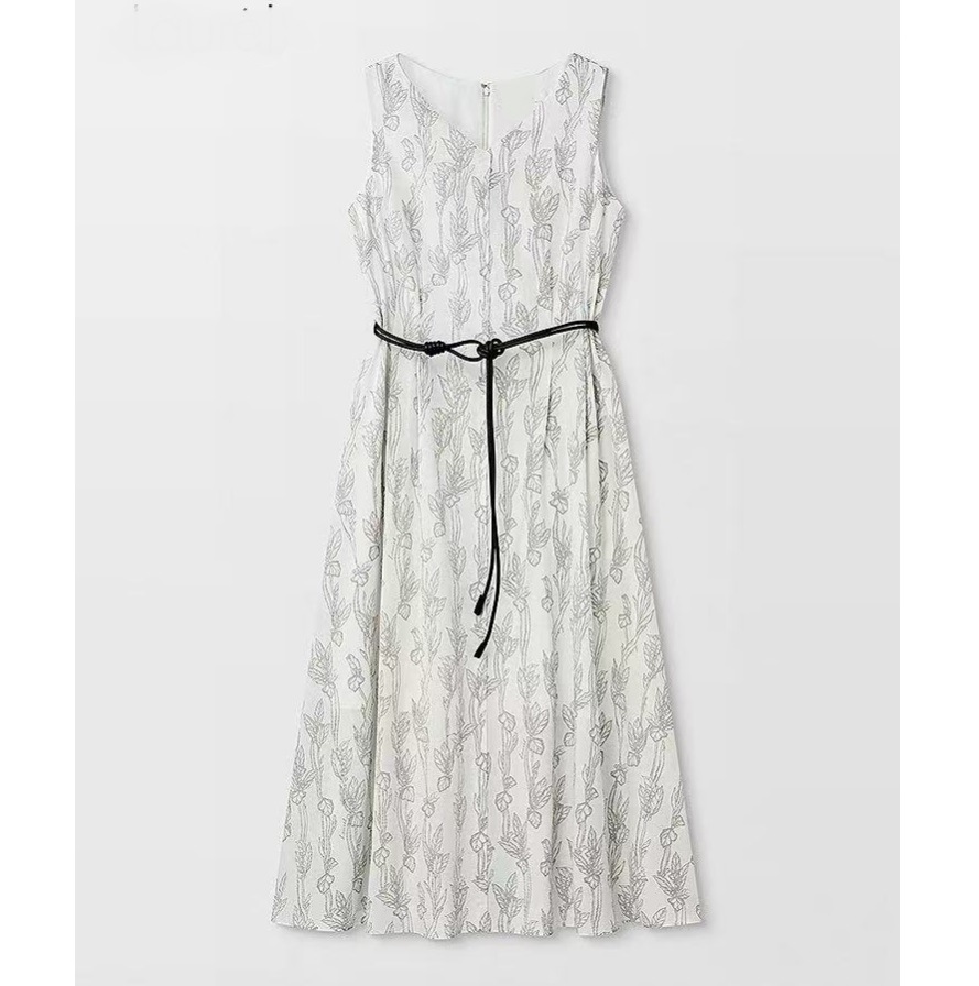 Lau25 봄과 여름 새로운 우아한 빛 꽃 면 민소매 우아한 소금 수축 원피스