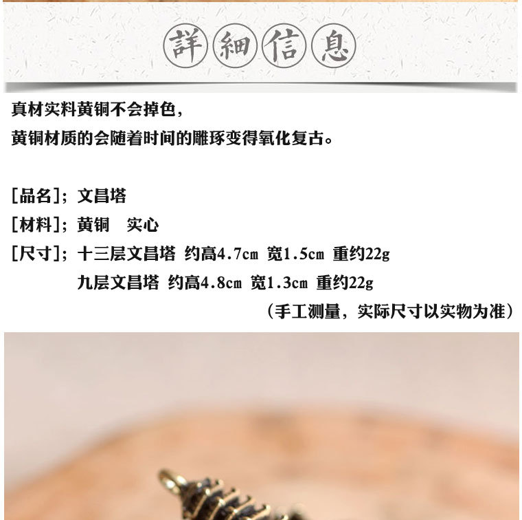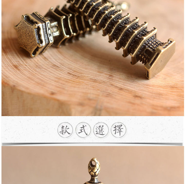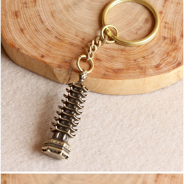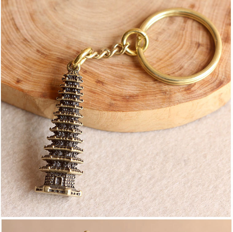 빈티지 브라스 키 체인 웬창 타워 13 층 휴대용 소형 펜던트 자동차 키 체인 펜던트 남성 절묘한스토어 가기