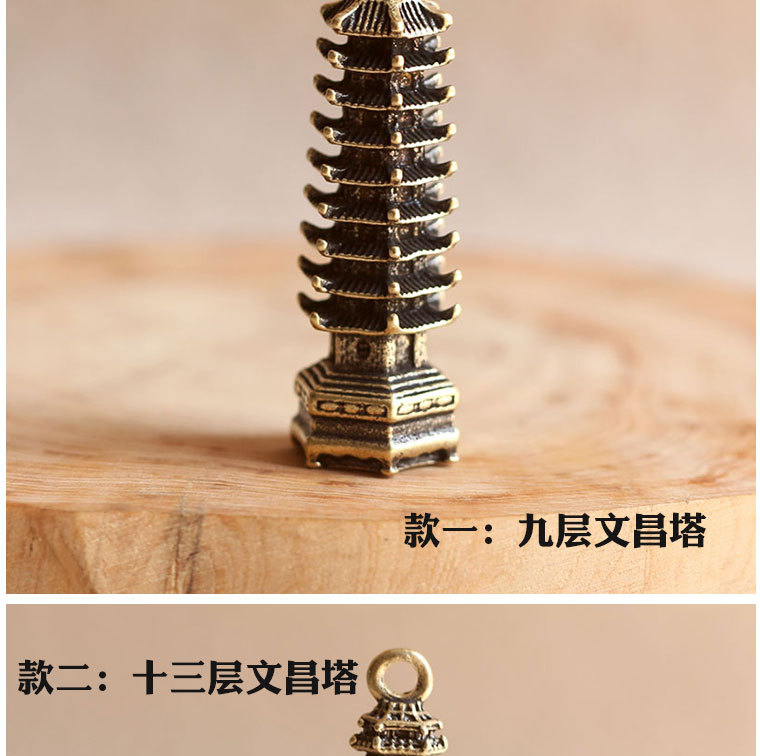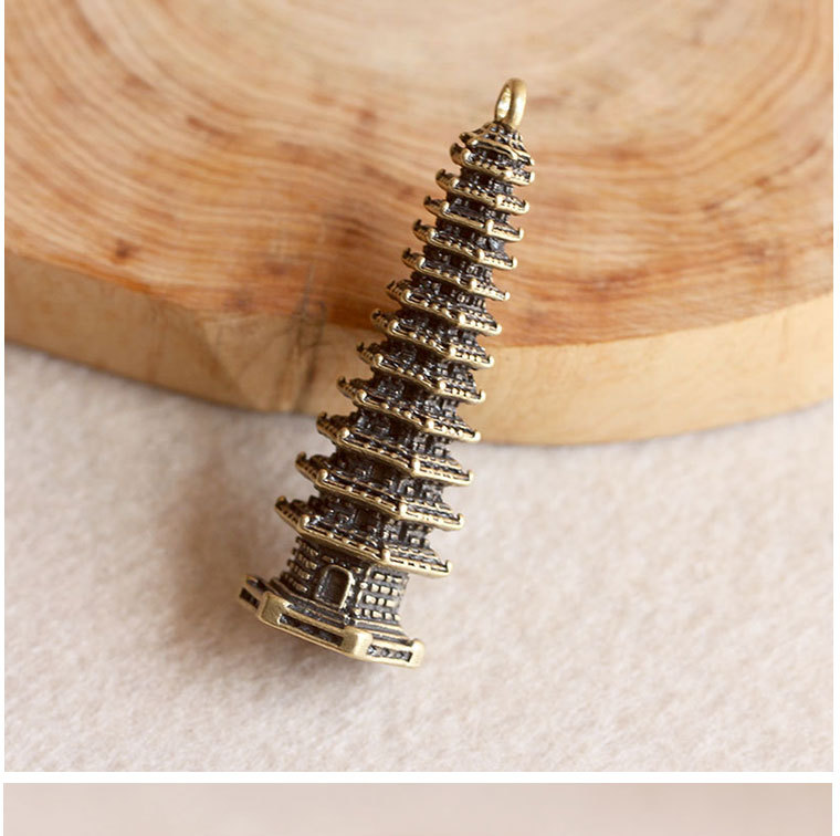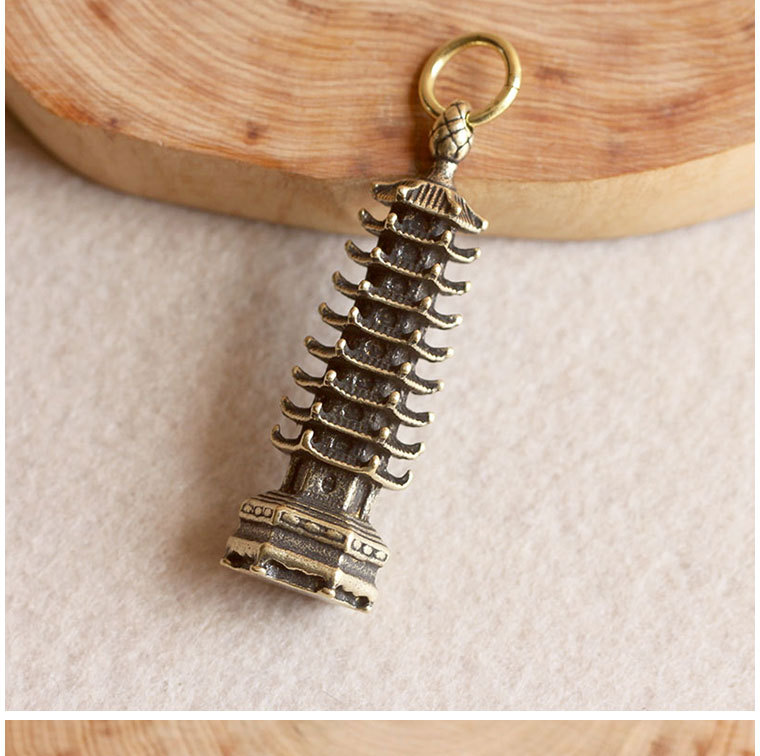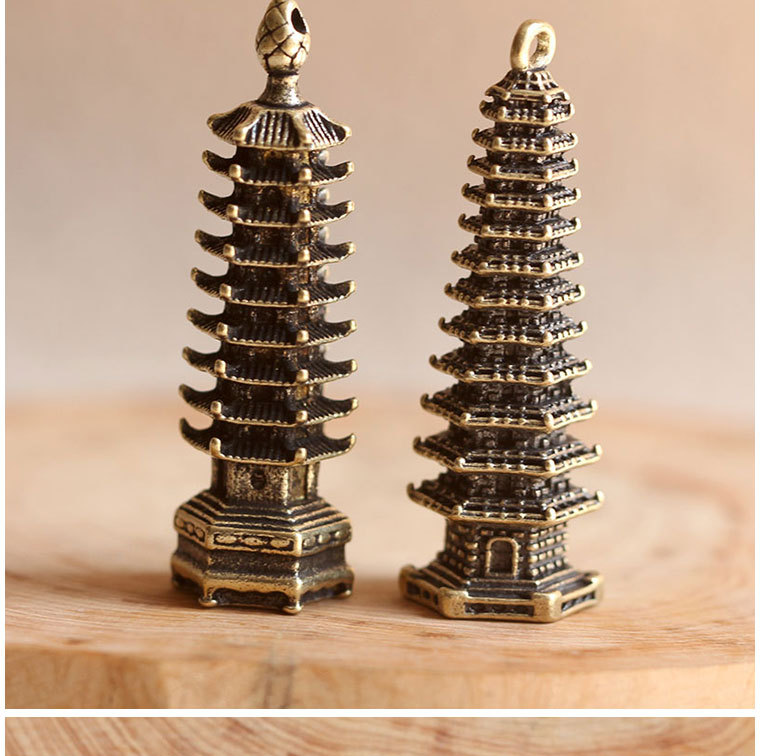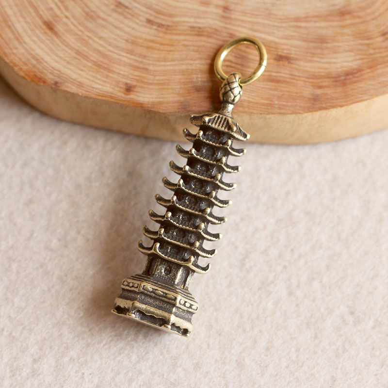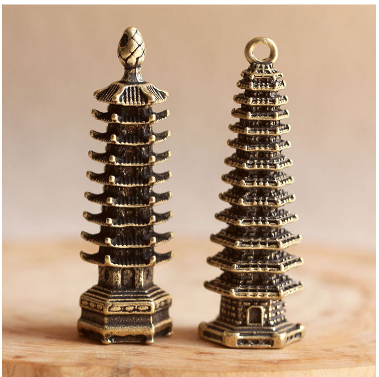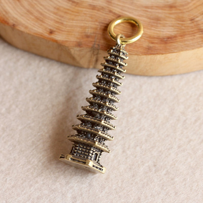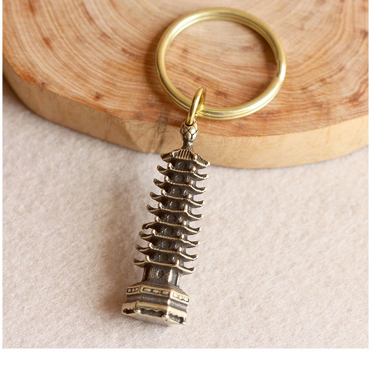 빈티지 브라스 키 체인 웬창 타워 13 층 휴대용 소형 펜던트 자동차 키 체인 펜던트 남성 절묘한