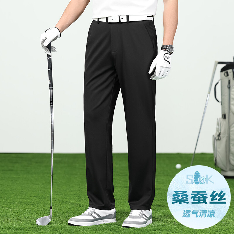 남성용 멀버리 실크 바지 2025 봄 여름 신작 중년 및 젊은 남성 캐주얼 야외 골프 스트레이트 팬츠