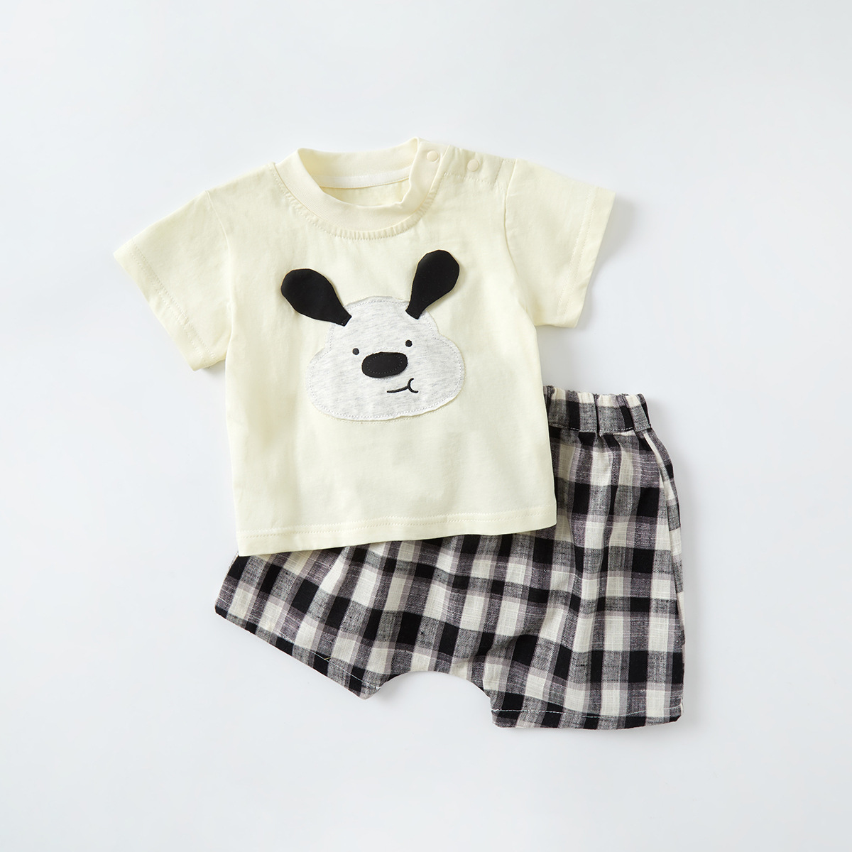 소년 강아지 격자 무늬 바지 투피스 세트 2025 여름 신작 유아용 얇은 반팔 반바지 스플릿 투피스 세트스토어 가기