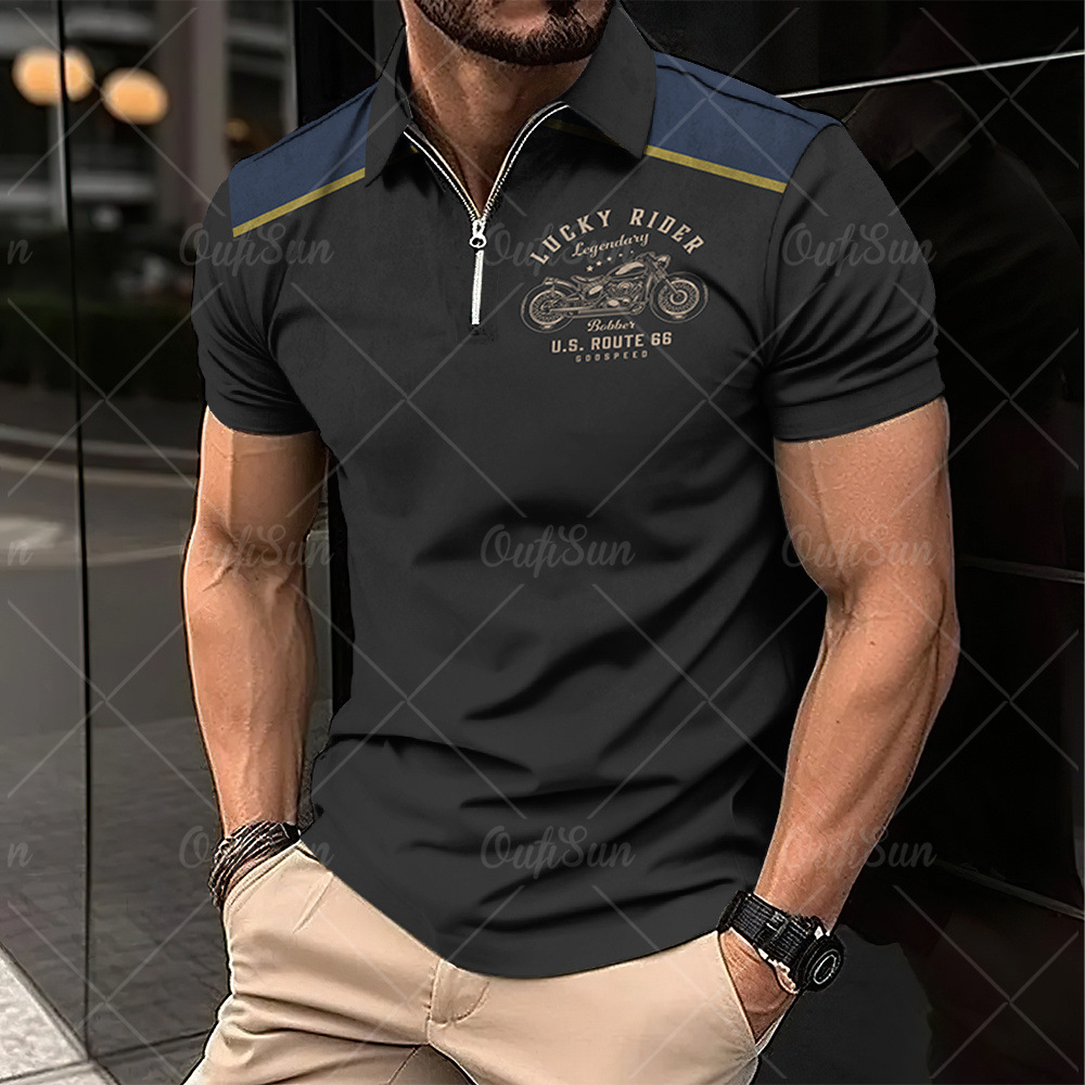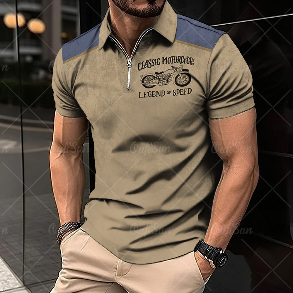 빈티지 짧은 소매 남성용 폴로 셔츠 오토바이 3D 프린트 라 지퍼 남성용 최고 하이 퀄리티 캐주얼 웨어스토어 가기