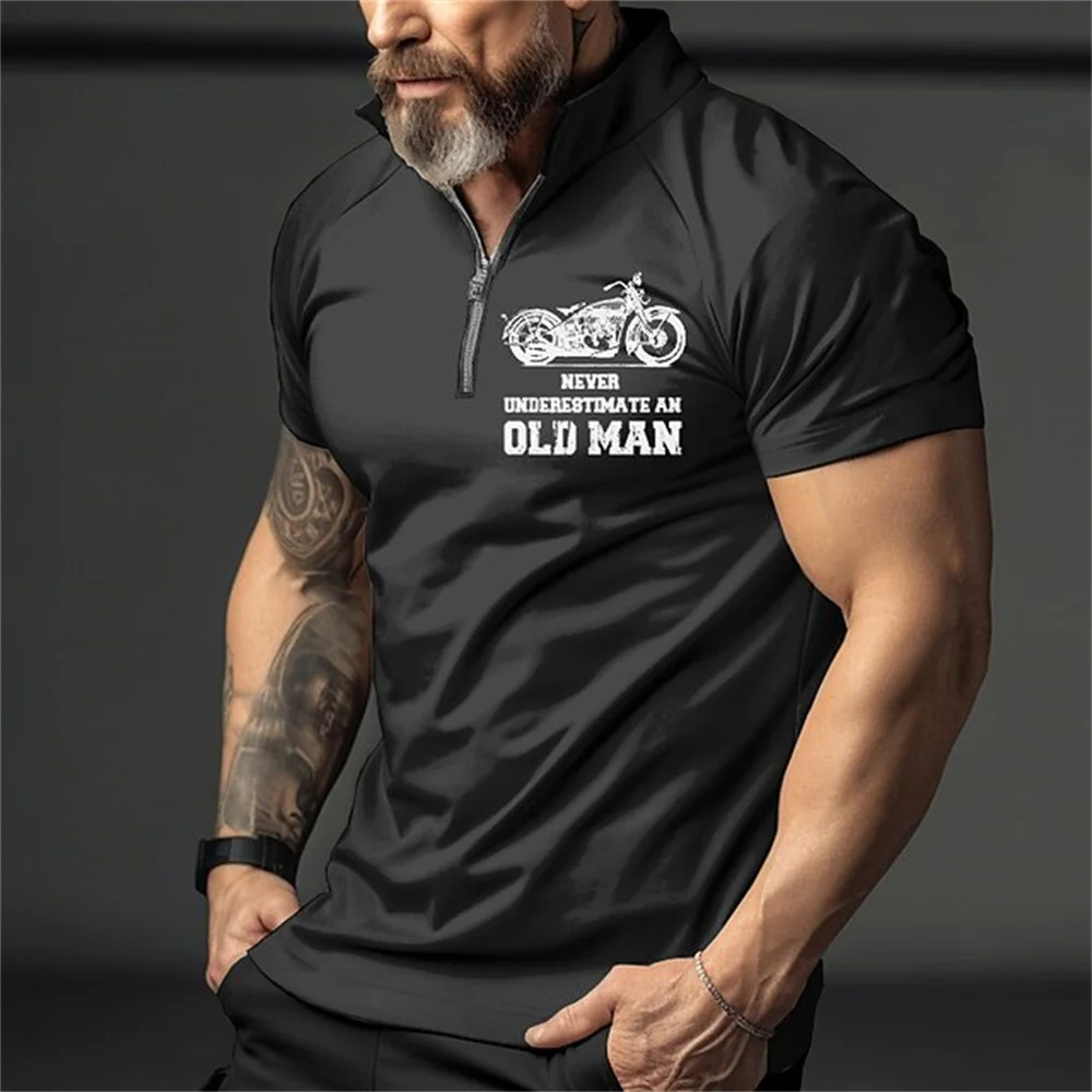 빈티지 짧은 소매 남성용 폴로 셔츠 오토바이 3D 프린트 라 지퍼 남성용 최고 하이 퀄리티 캐주얼 웨어