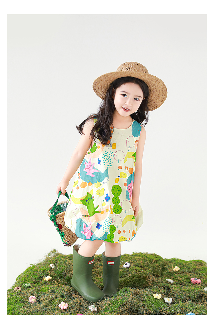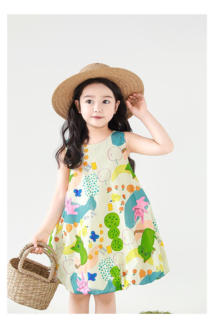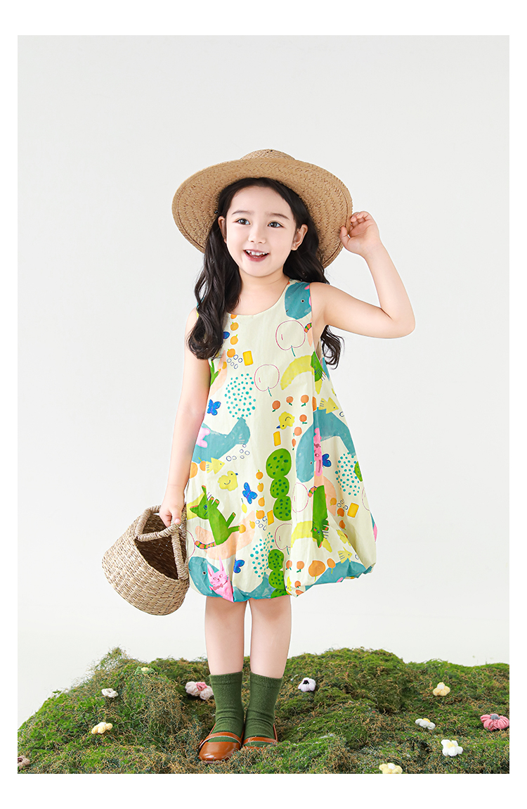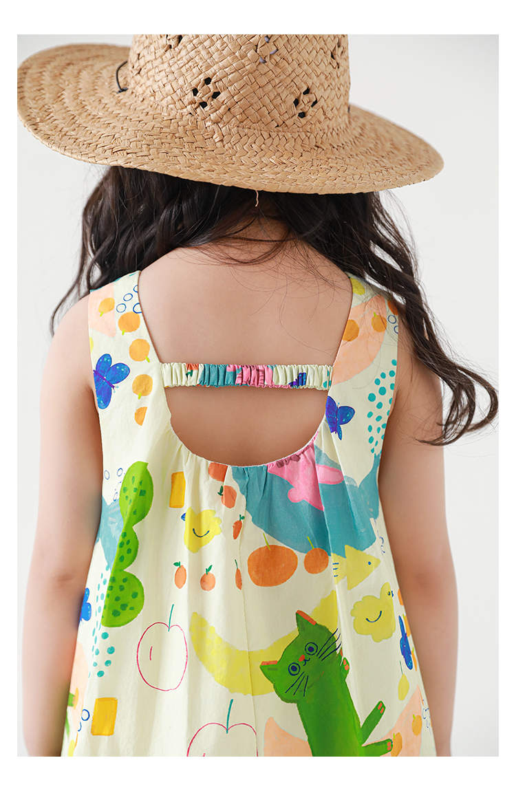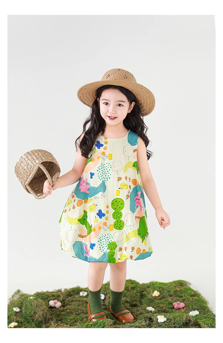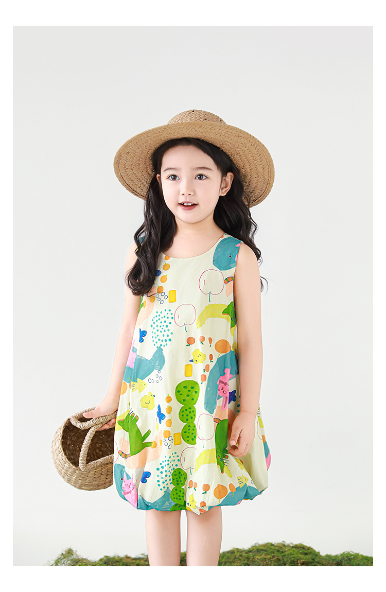 Wulibuyi 소녀 만화 프린트 조끼 드레스 2025 여름 어린이 귀여운 상쾌한 통기성 민소매 꽃 스커트스토어 가기