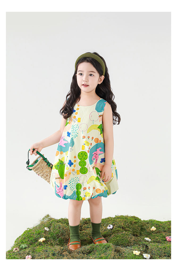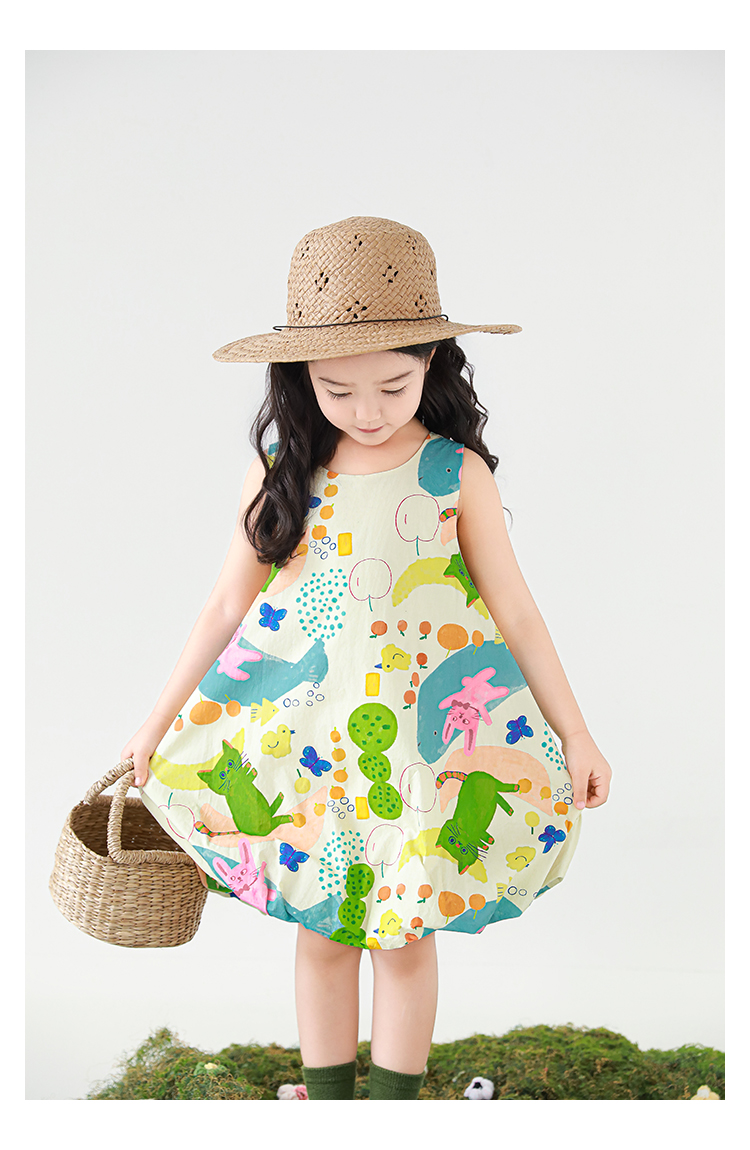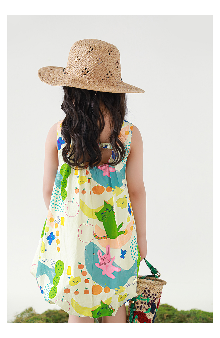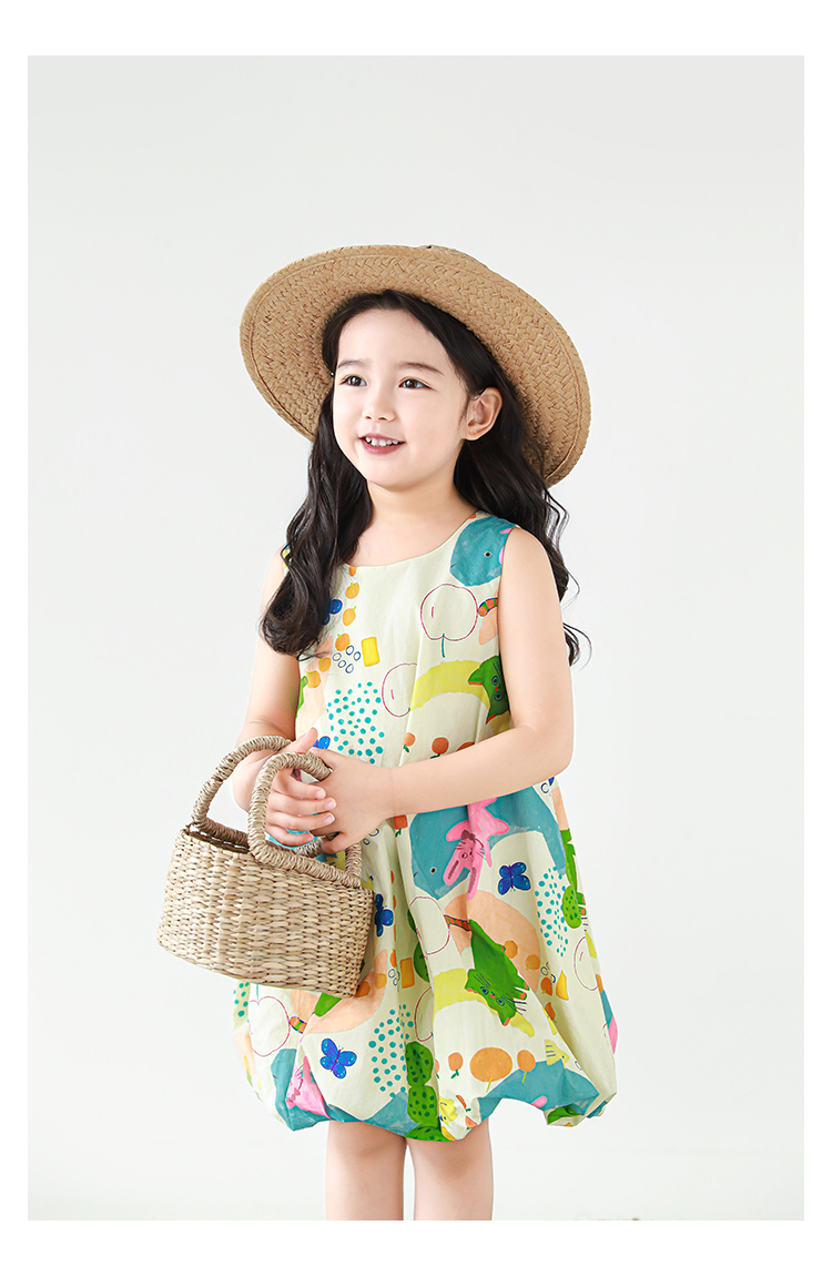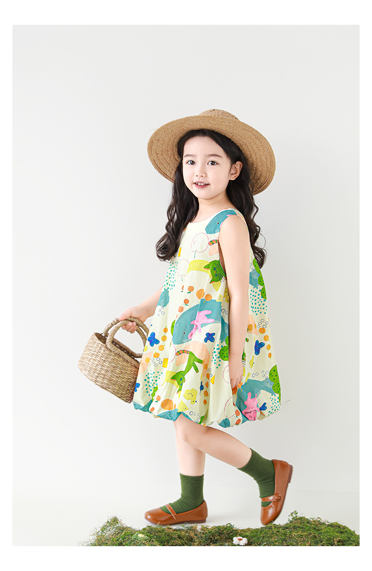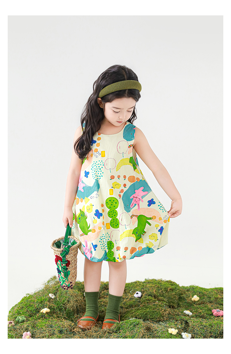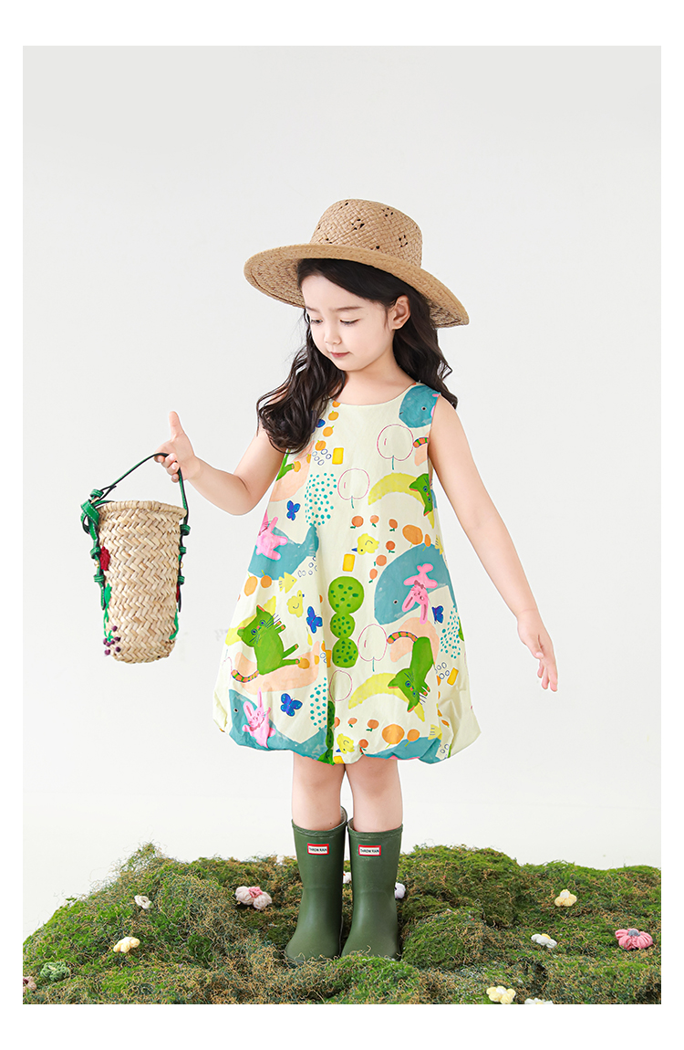 Wulibuyi 소녀 만화 프린트 조끼 드레스 2025 여름 어린이 귀여운 상쾌한 통기성 민소매 꽃 스커트스토어 가기