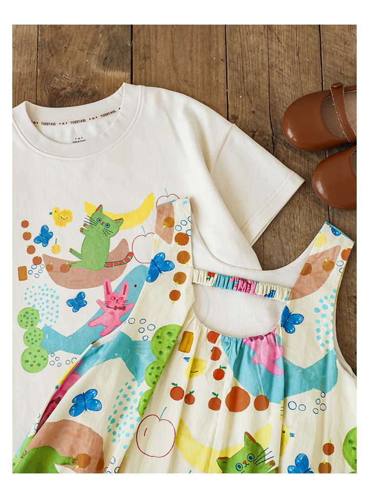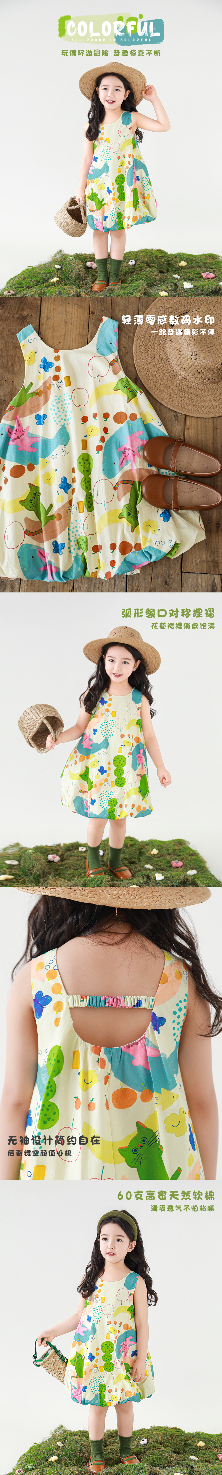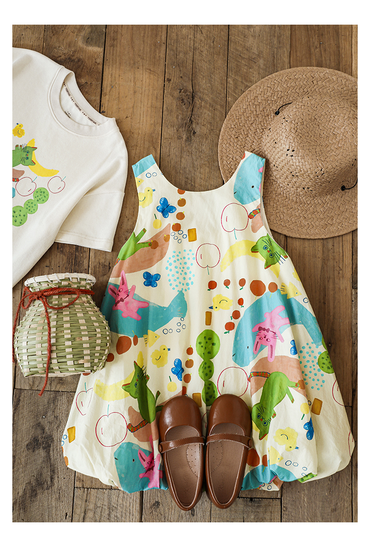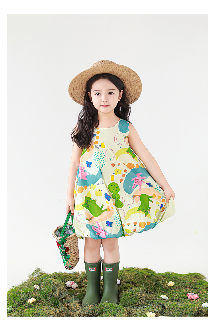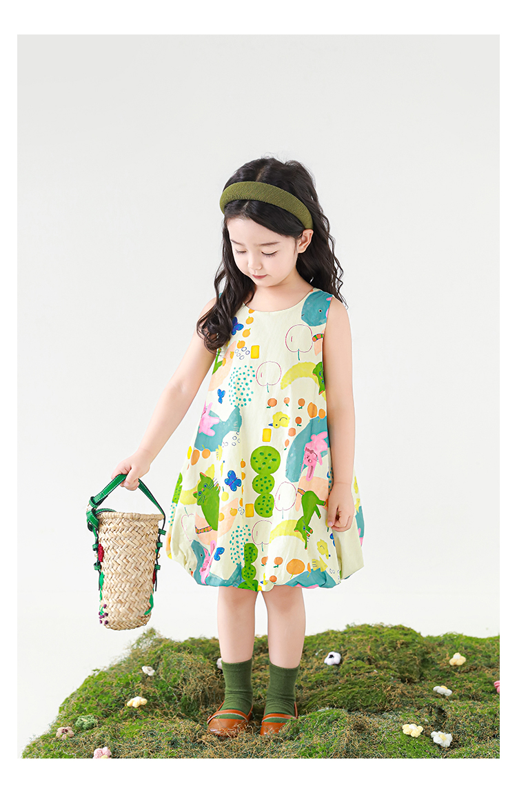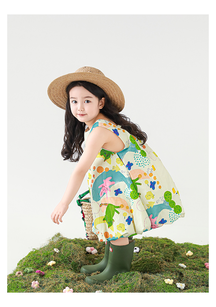 Wulibuyi 소녀 만화 프린트 조끼 드레스 2025 여름 어린이 귀여운 상쾌한 통기성 민소매 꽃 스커트스토어 가기