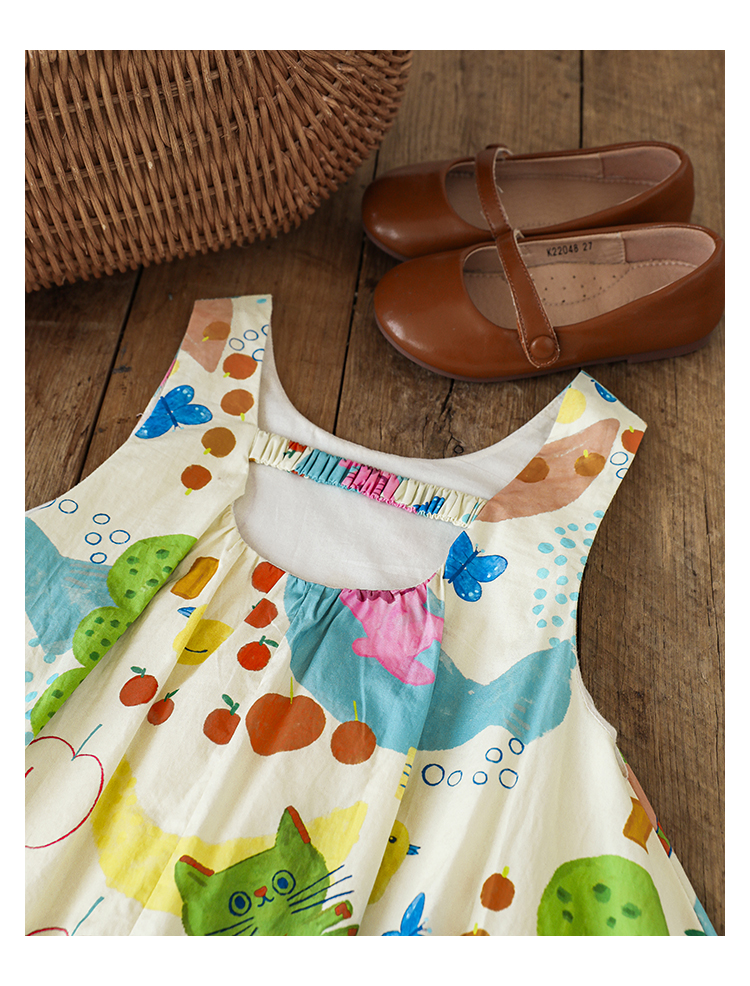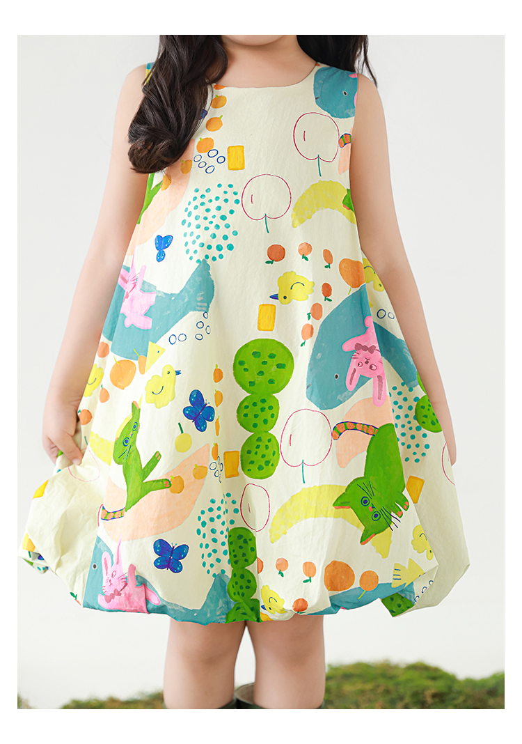 Wulibuyi 소녀 만화 프린트 조끼 드레스 2025 여름 어린이 귀여운 상쾌한 통기성 민소매 꽃 스커트