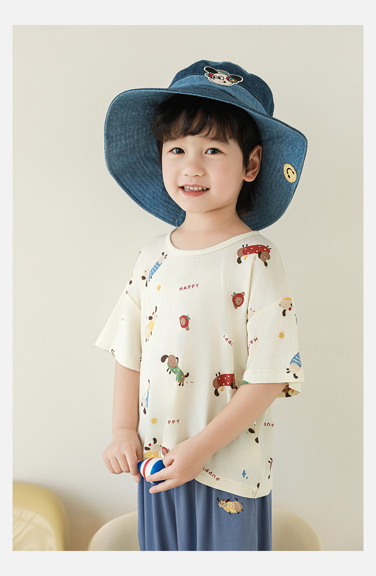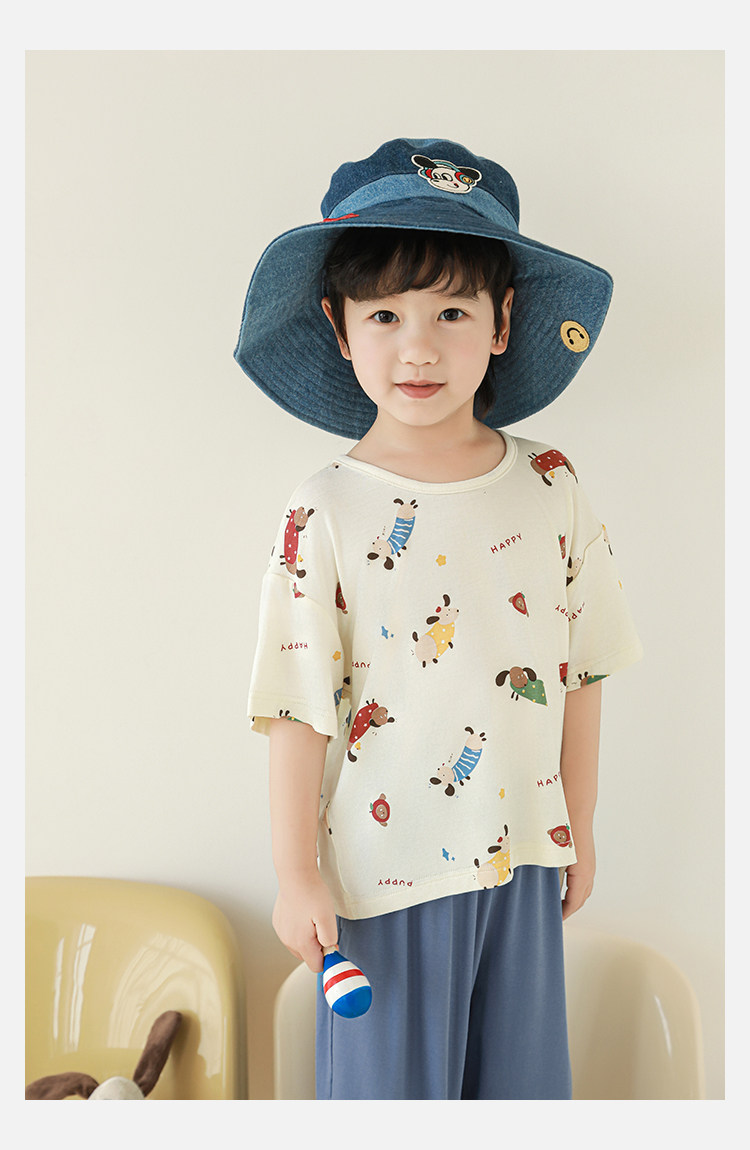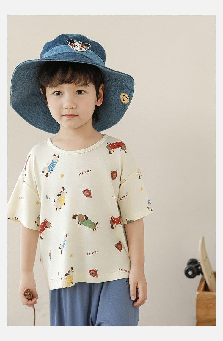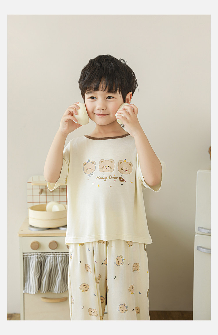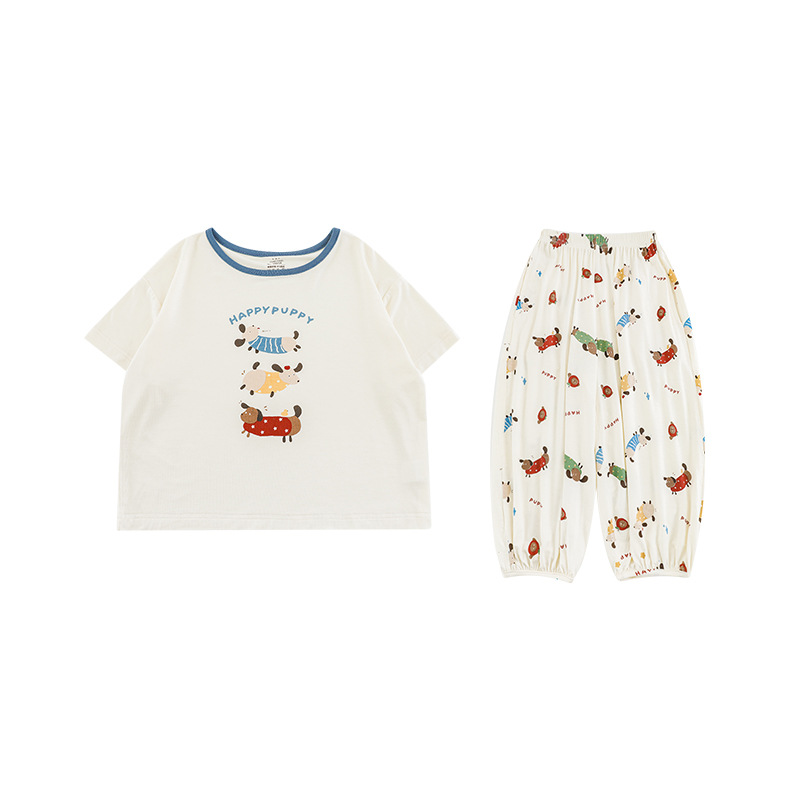 Wulibuyi 소년 2025 여름 새로운 얇은 통기성 티셔츠 어린이 가정 의류 세트 패션 만화 잠옷