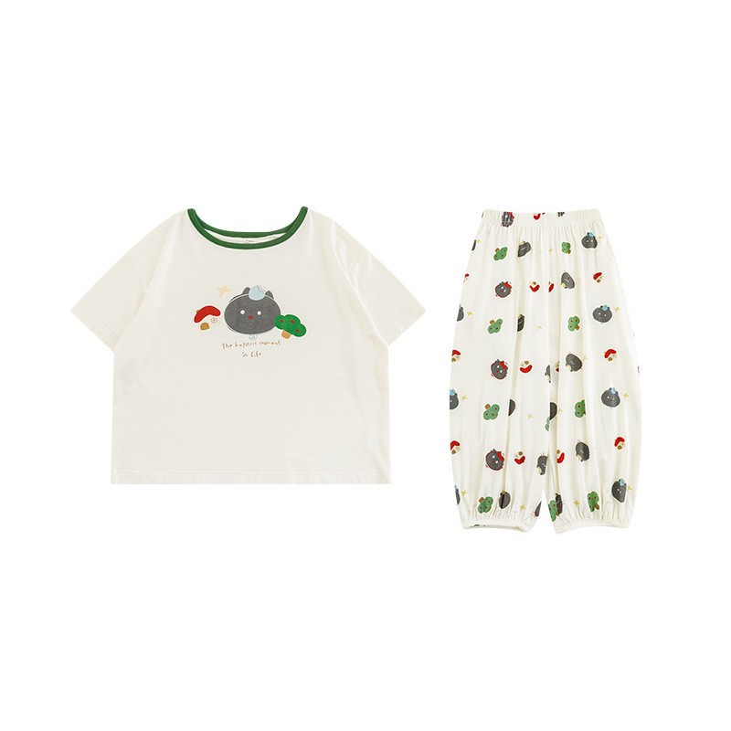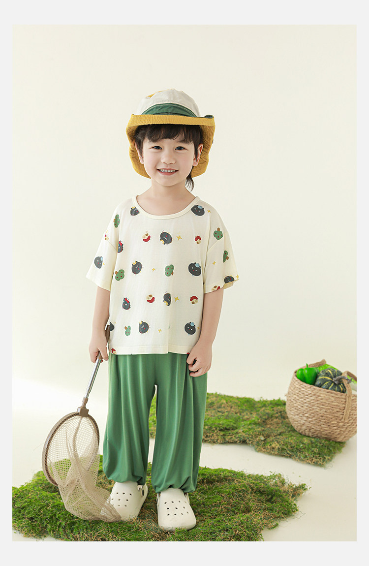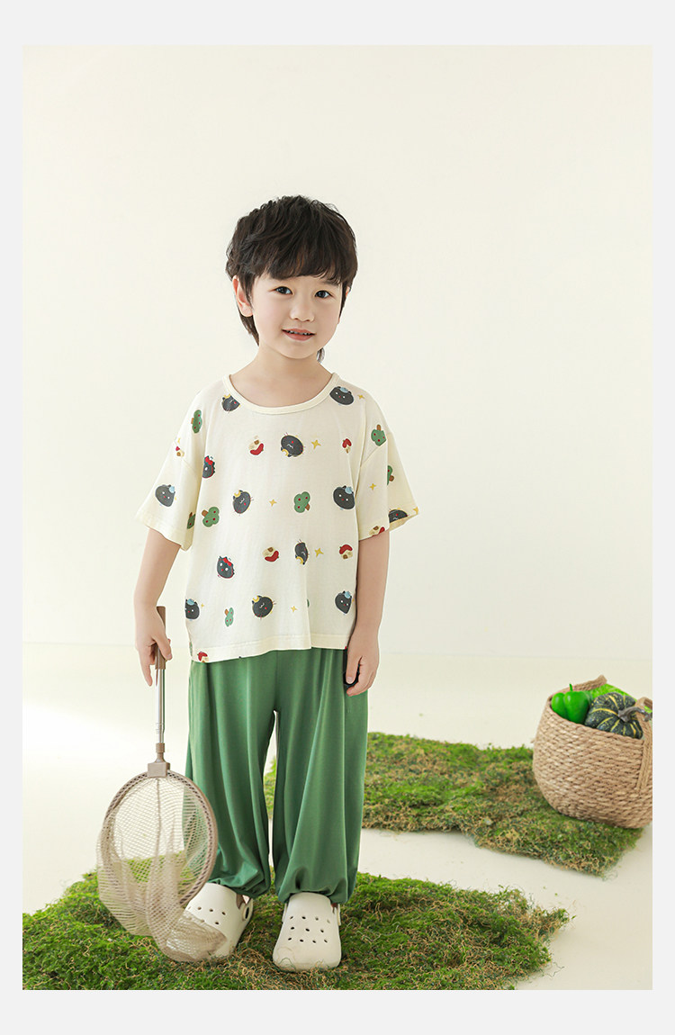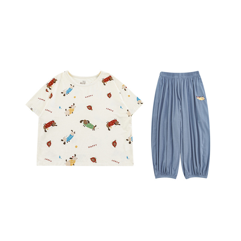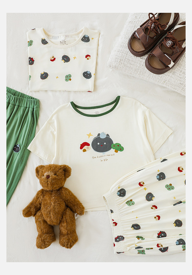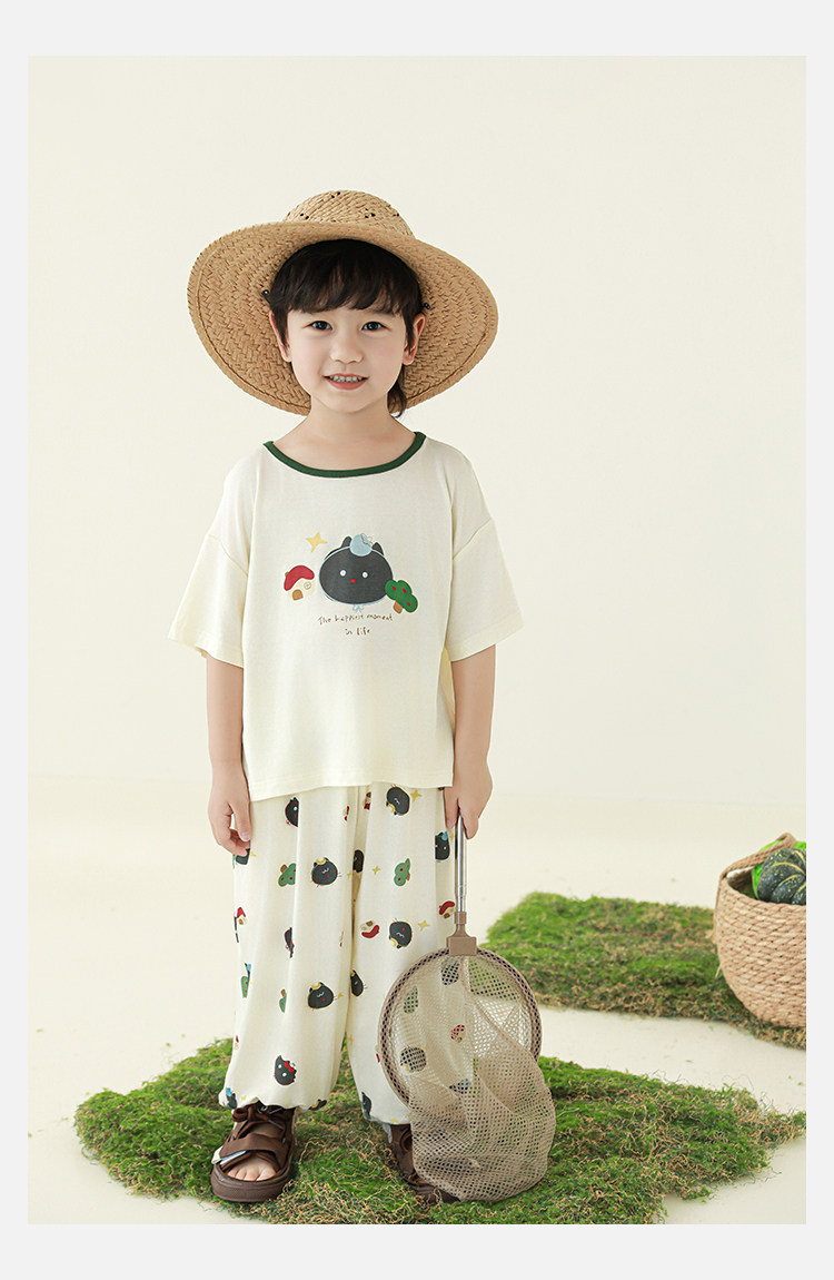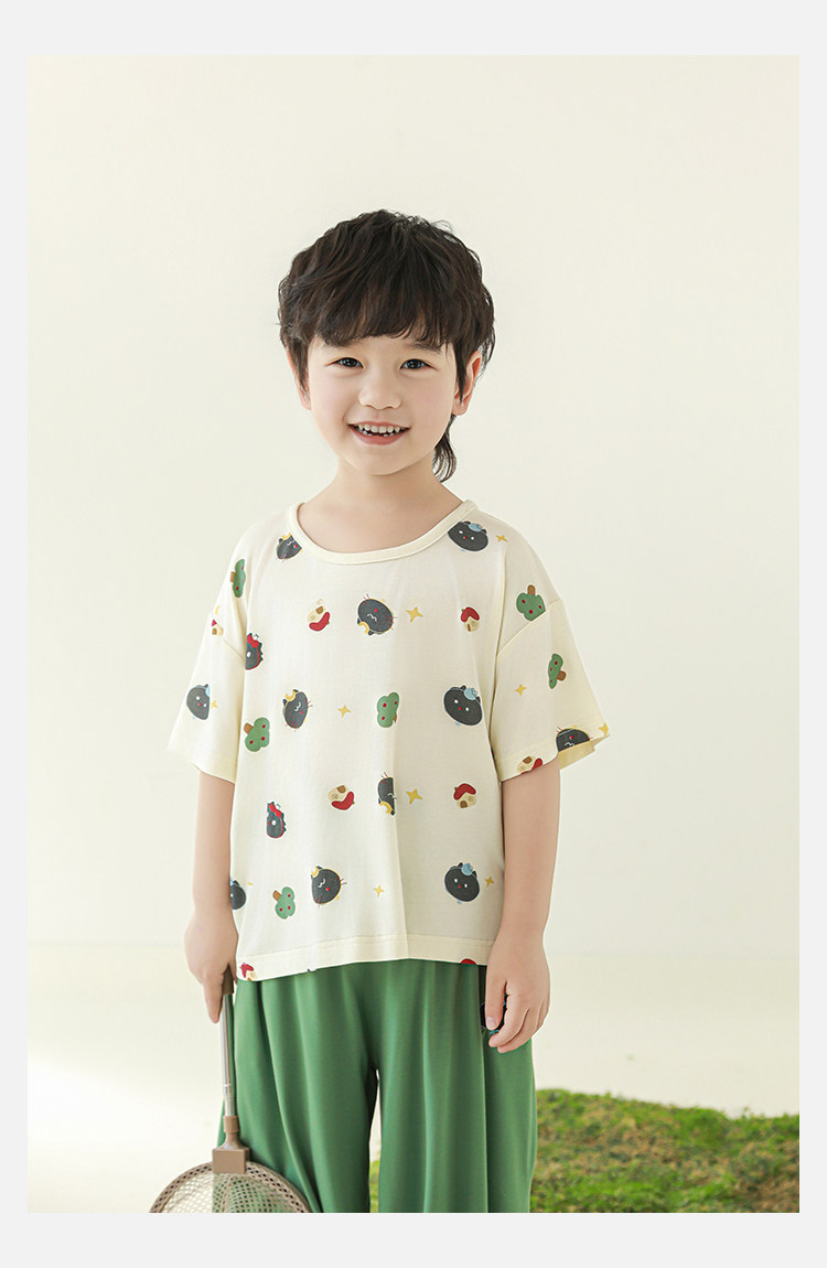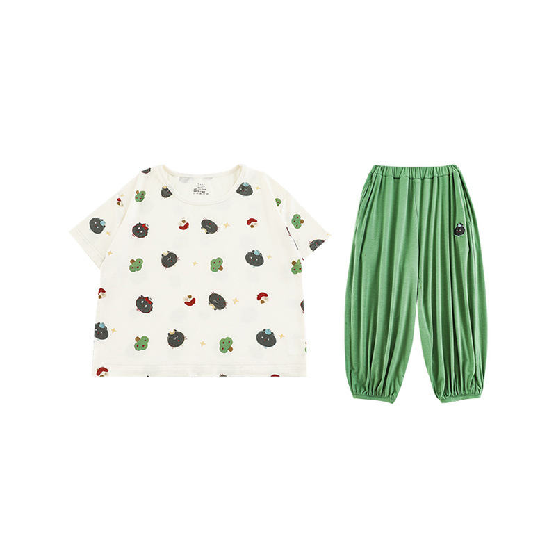 Wulibuyi 소년 2025 여름 새로운 얇은 통기성 티셔츠 어린이 가정 의류 세트 패션 만화 잠옷스토어 가기
