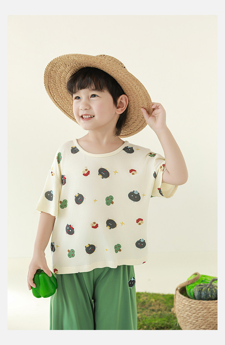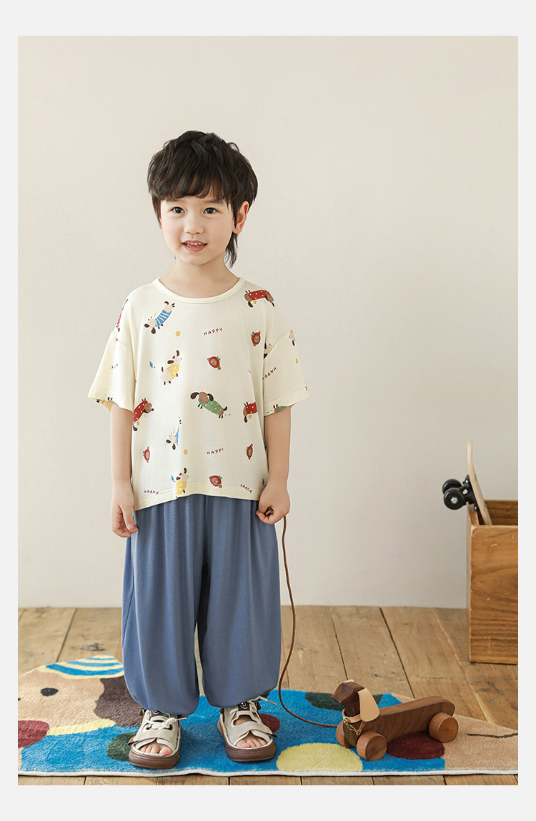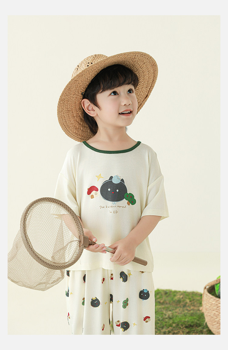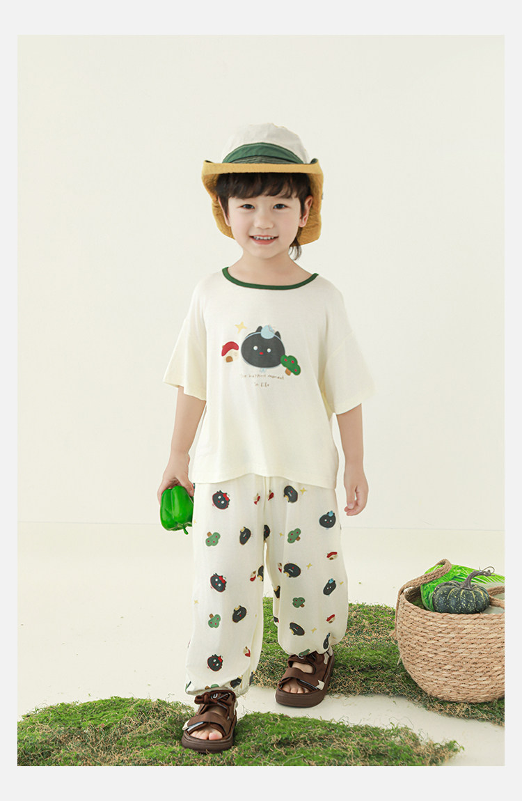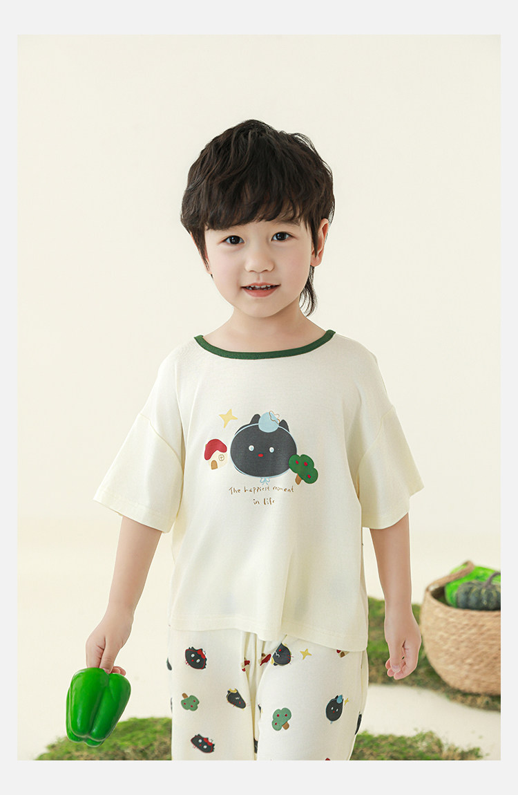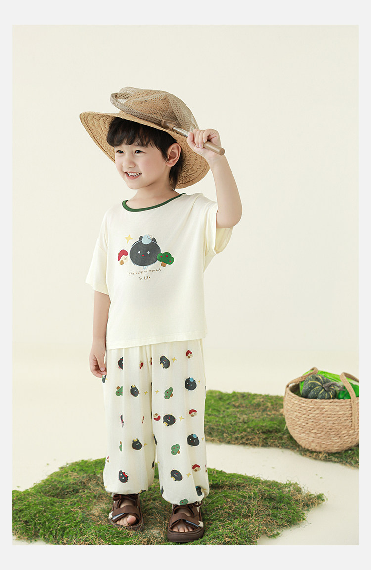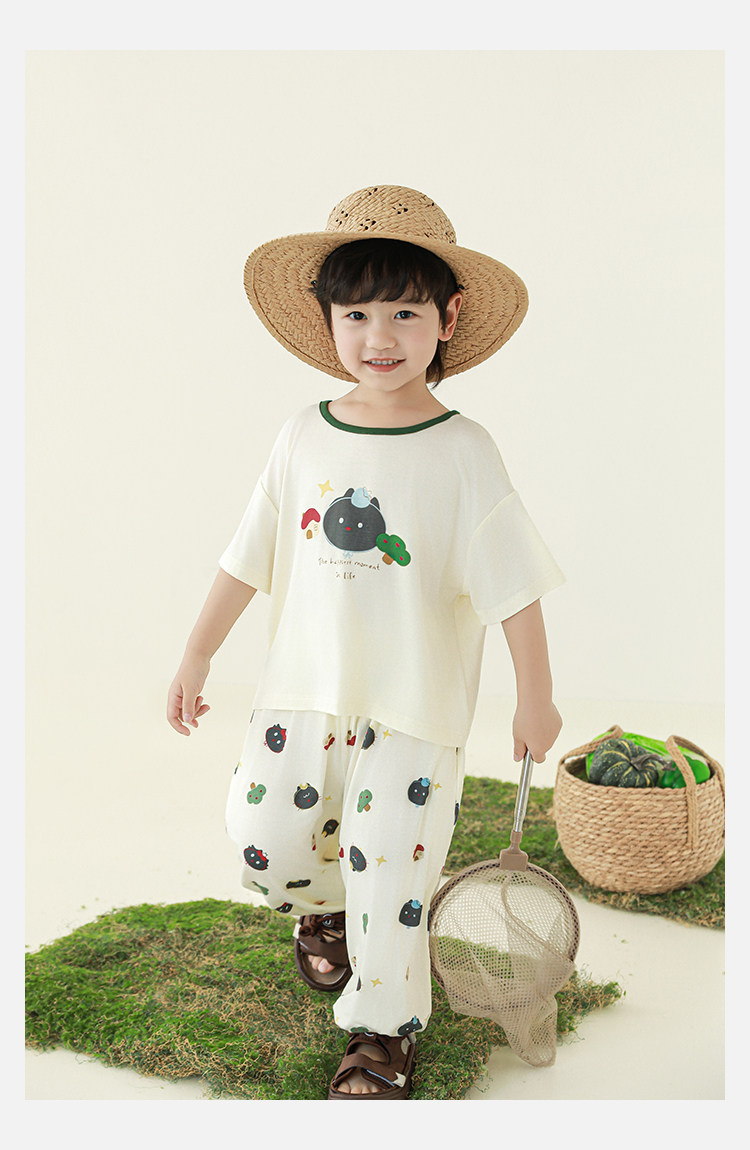 Wulibuyi 소년 2025 여름 새로운 얇은 통기성 티셔츠 어린이 가정 의류 세트 패션 만화 잠옷스토어 가기