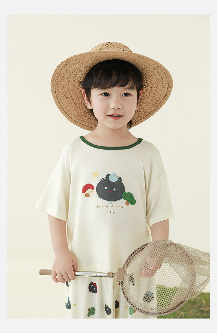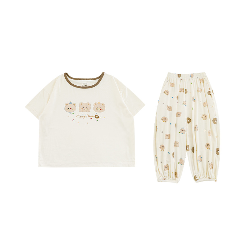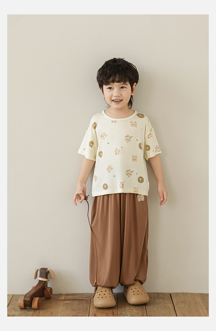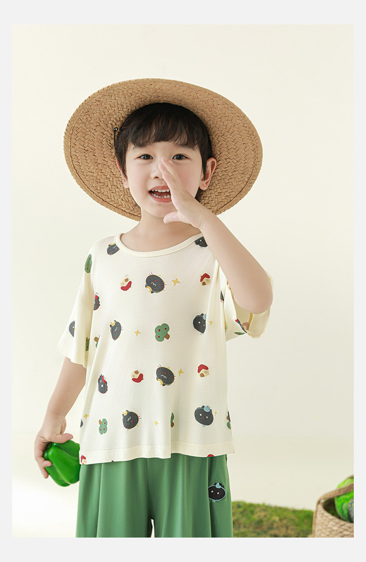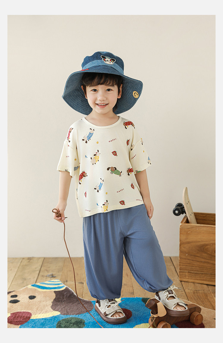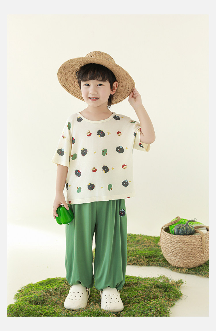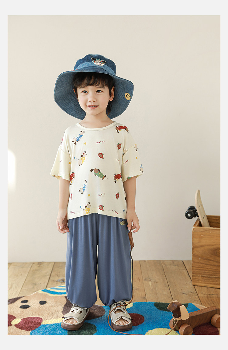 Wulibuyi 소년 2025 여름 새로운 얇은 통기성 티셔츠 어린이 가정 의류 세트 패션 만화 잠옷스토어 가기
