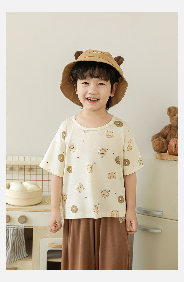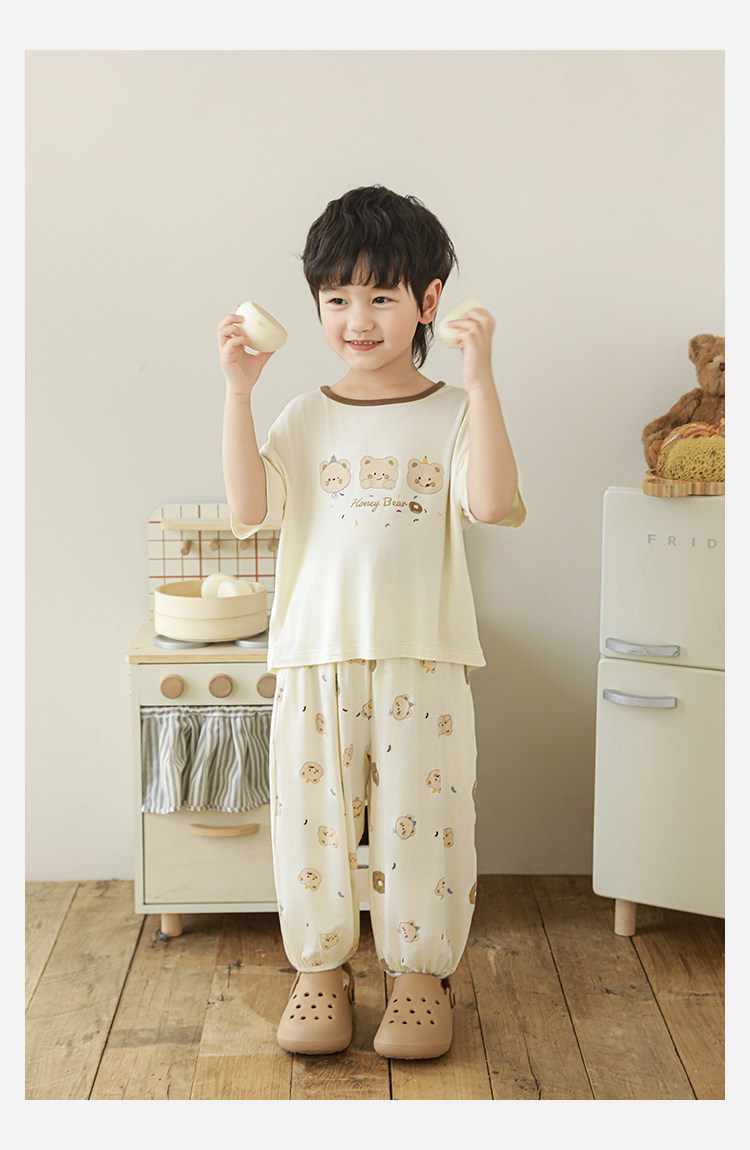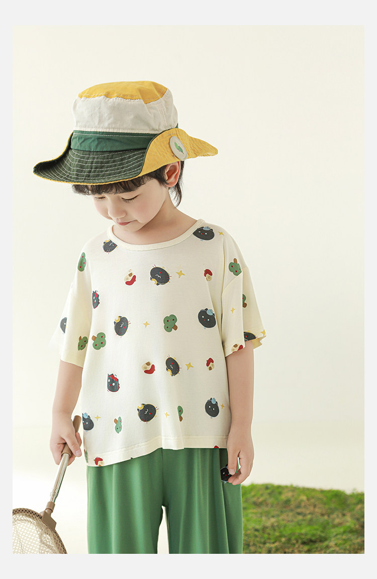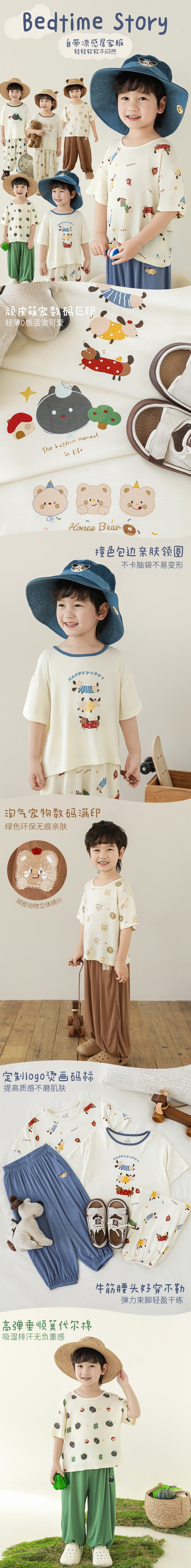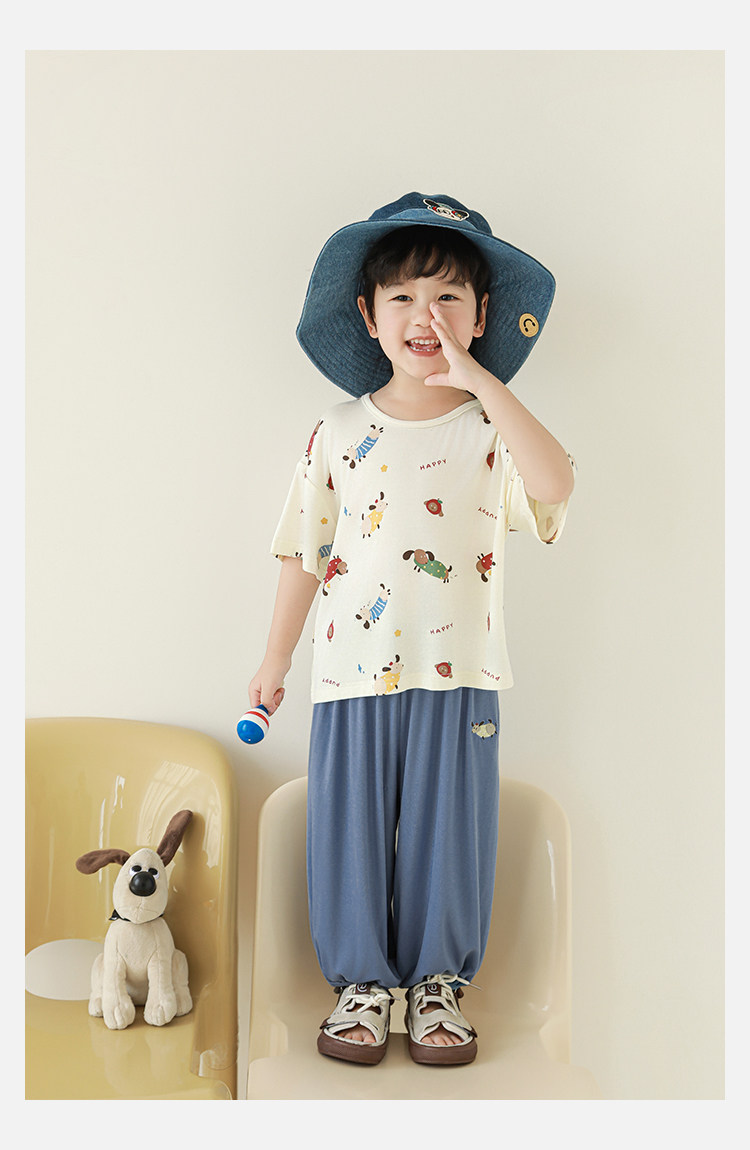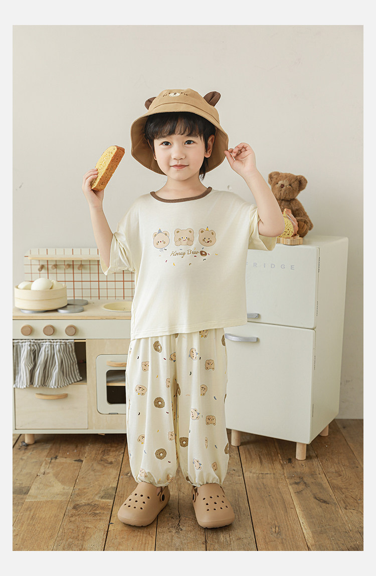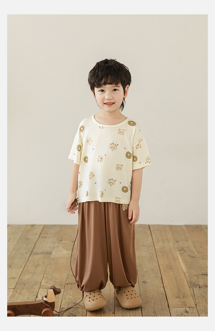 Wulibuyi 소년 2025 여름 새로운 얇은 통기성 티셔츠 어린이 가정 의류 세트 패션 만화 잠옷스토어 가기