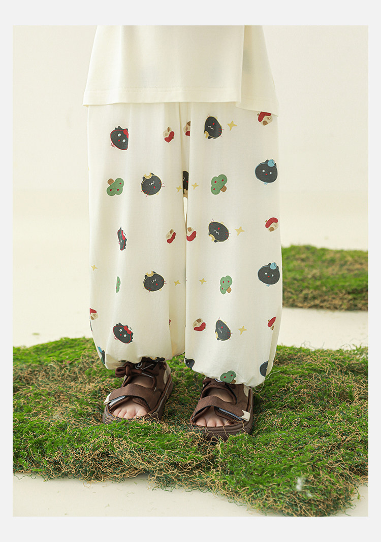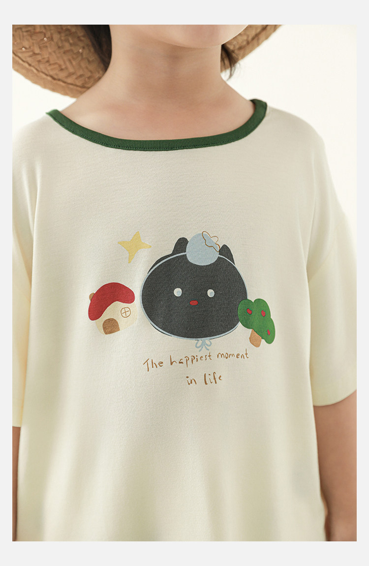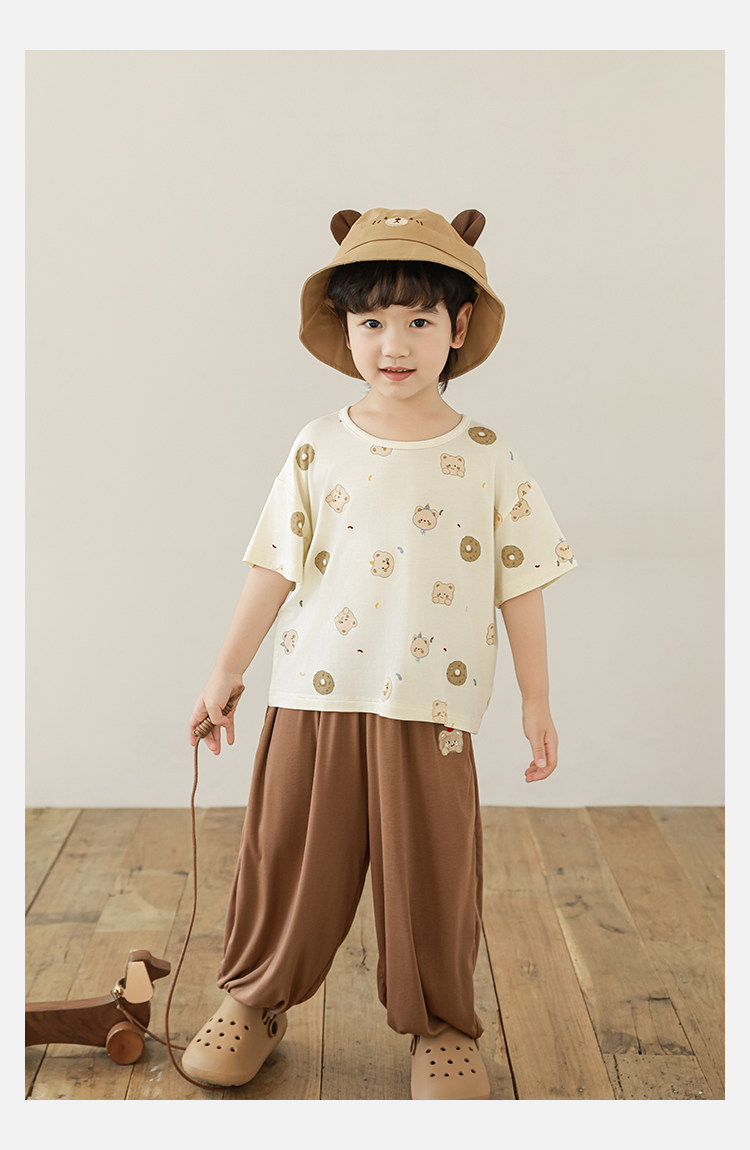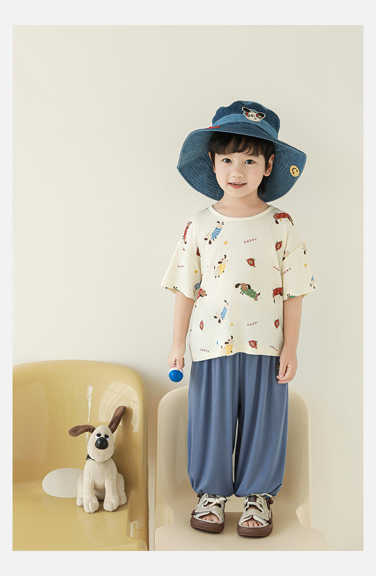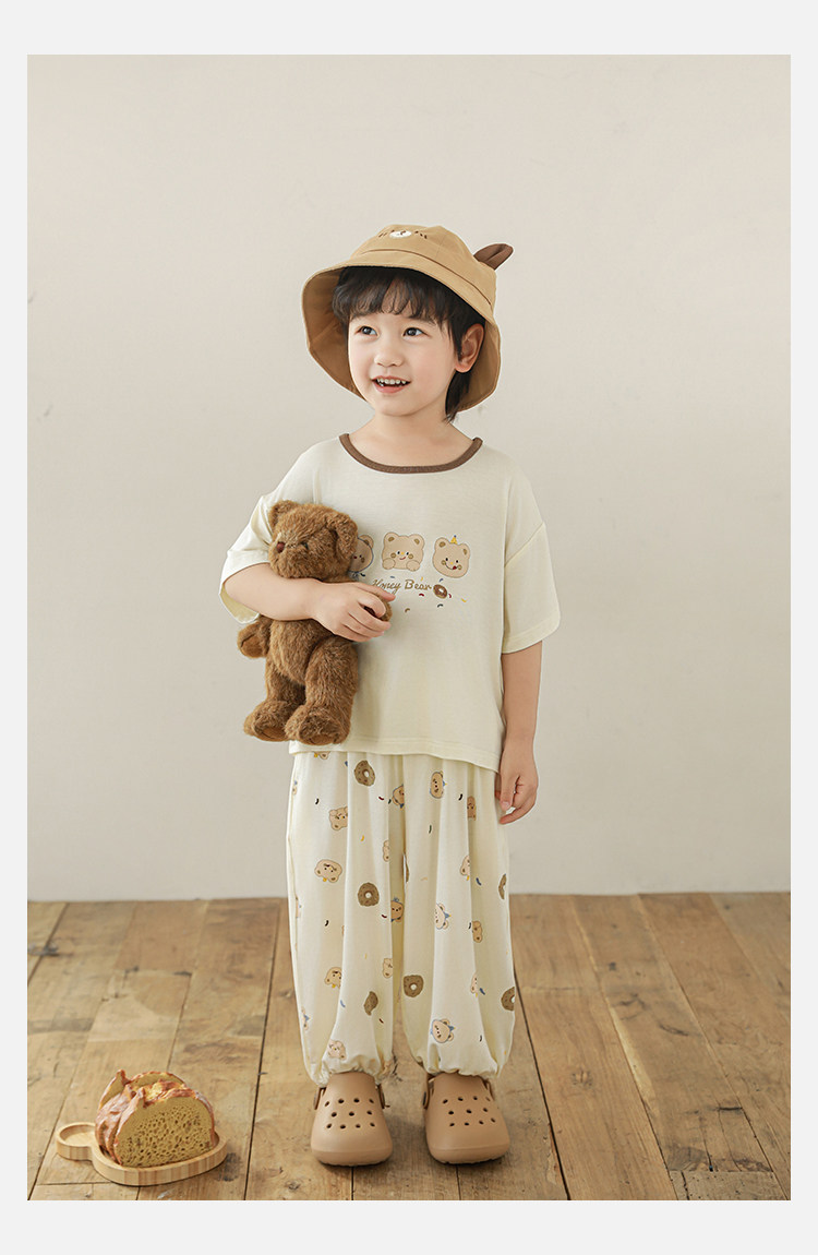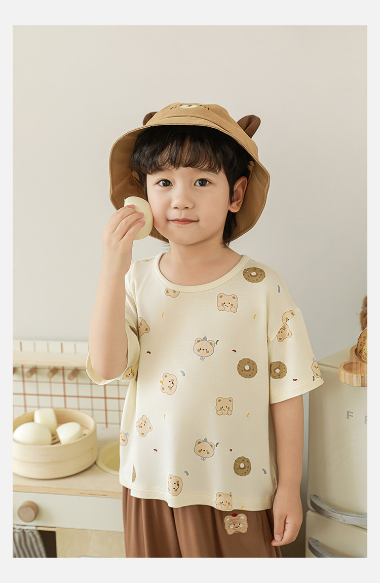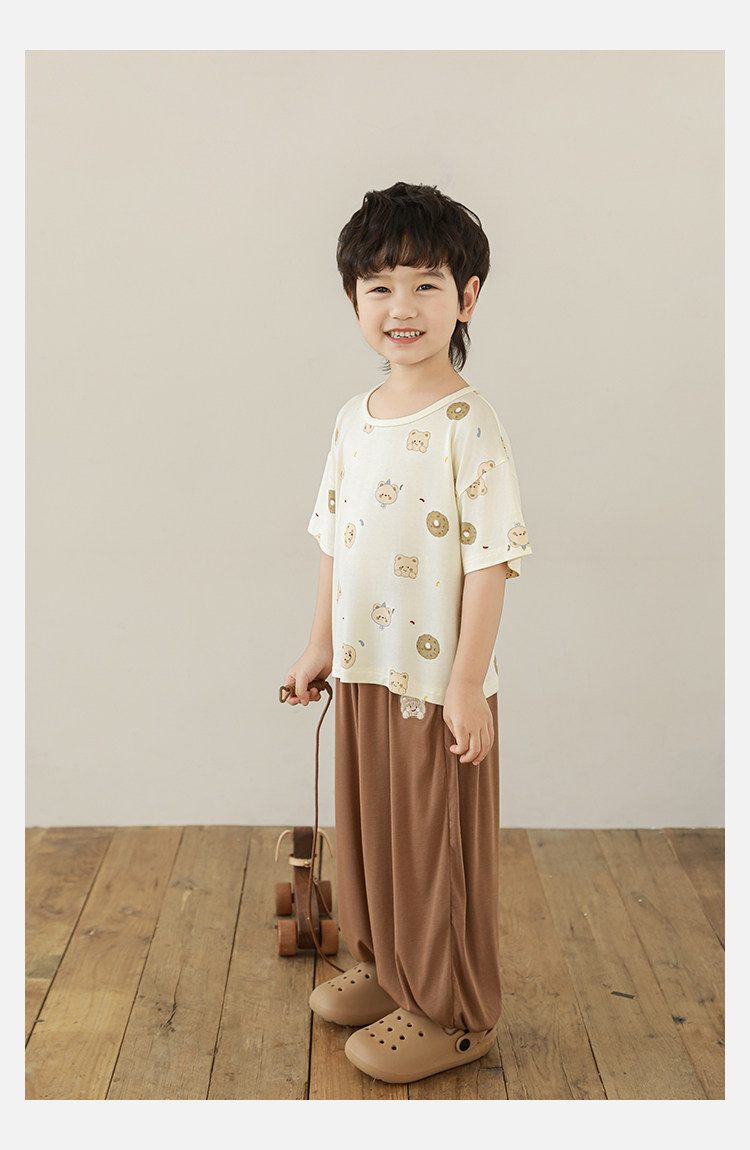 Wulibuyi 소년 2025 여름 새로운 얇은 통기성 티셔츠 어린이 가정 의류 세트 패션 만화 잠옷스토어 가기