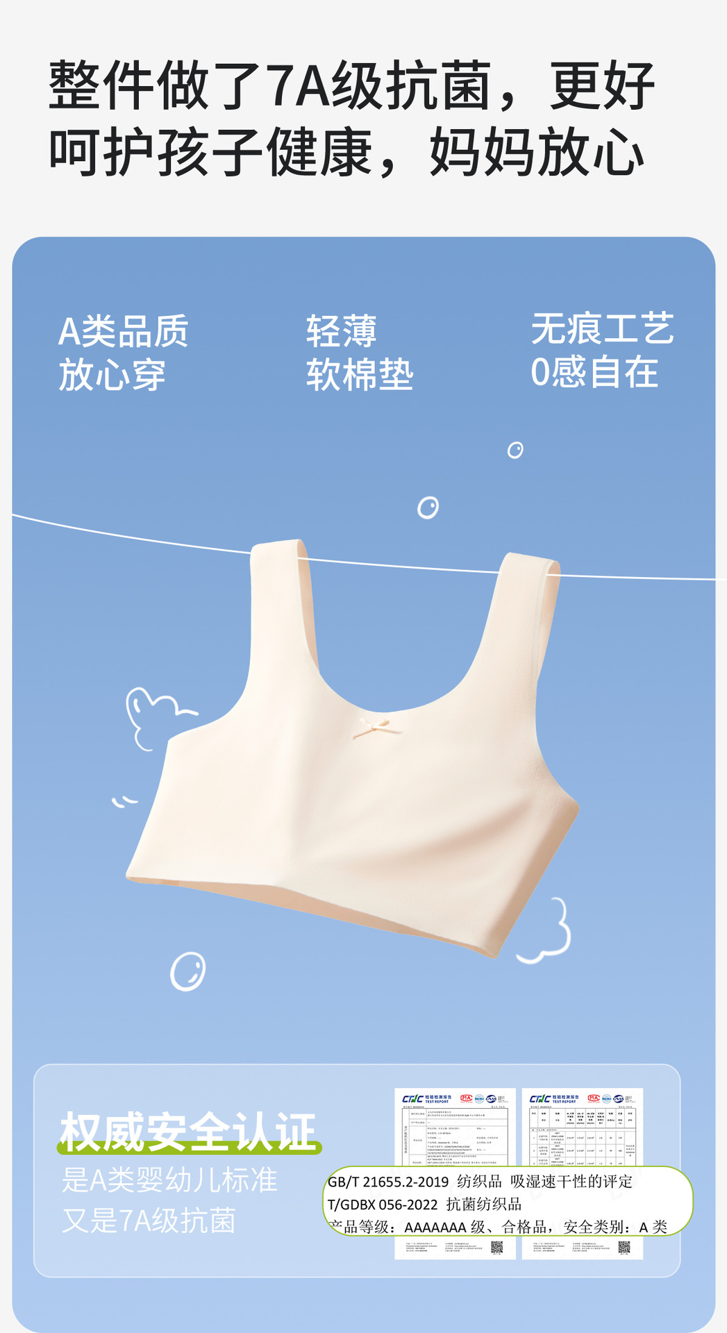 여아 속옷 여름 얇은 발달기 10세 1단계 여아 무봉제 조끼 초등학생 여아 브라