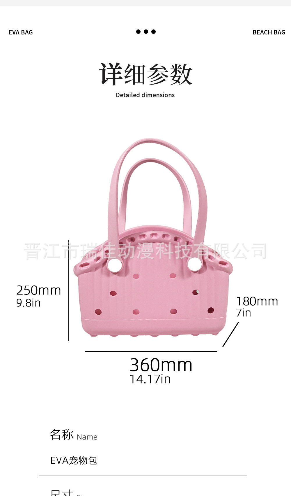 새로운 휴대용 EVA 애완동물 가방 여름 야외 산책용 강아지 가방 가벼운 고양이와 강아지 가방 중소형견 해변 가방