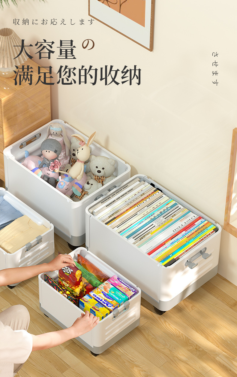 바퀴가 달린 거실 보관 상자 접이식 트롤리 책 상자 장난감 교실 보관 상자 옷 집 마무리 신