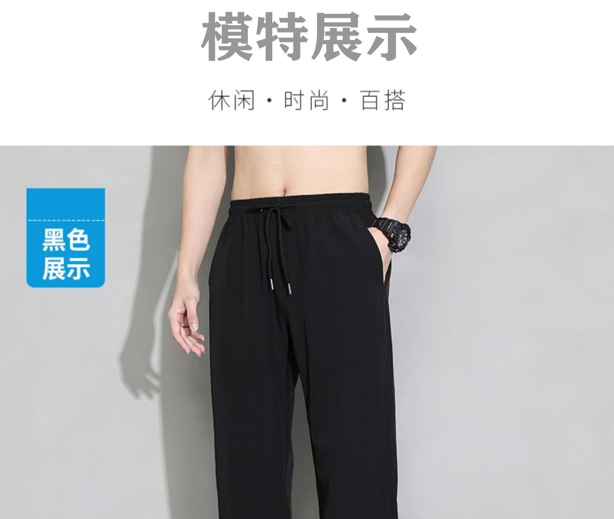 아이스 실크 바지 남자 2025 년 여름 새로운 느슨한 타이트 허리 캐주얼 바지 남자 스트레이트 바지