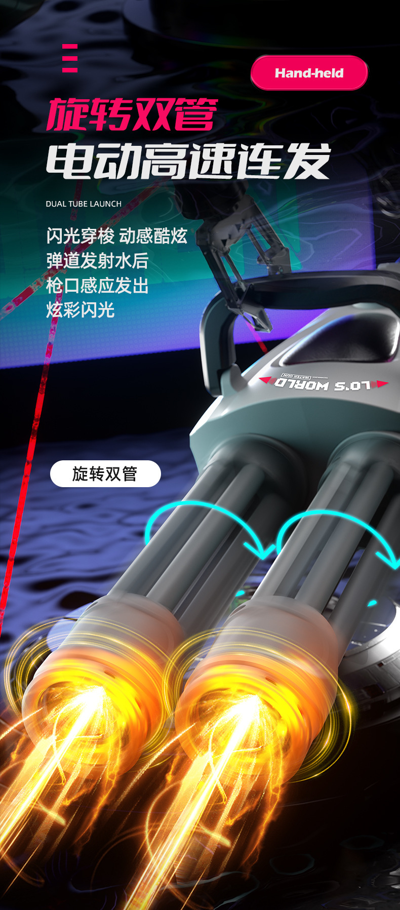 Luochen 이중 튜브 개틀링 물총 전기 고속 연속 발사 깜박이는 다채로운 조명 어린이 여름 물 장난감