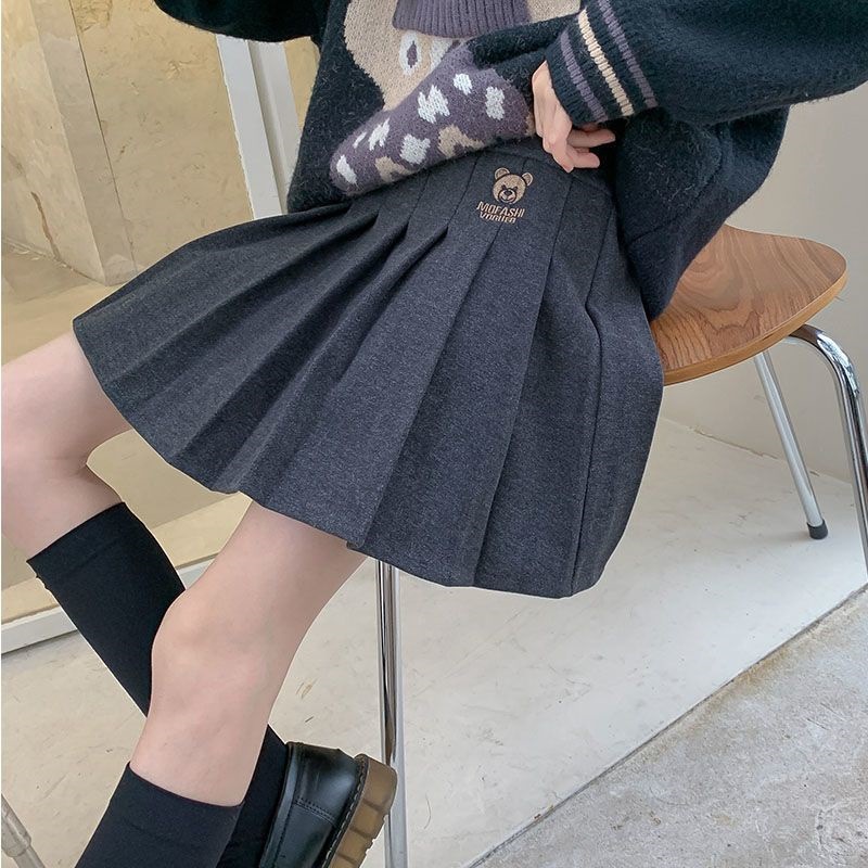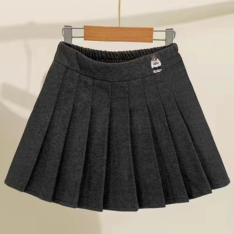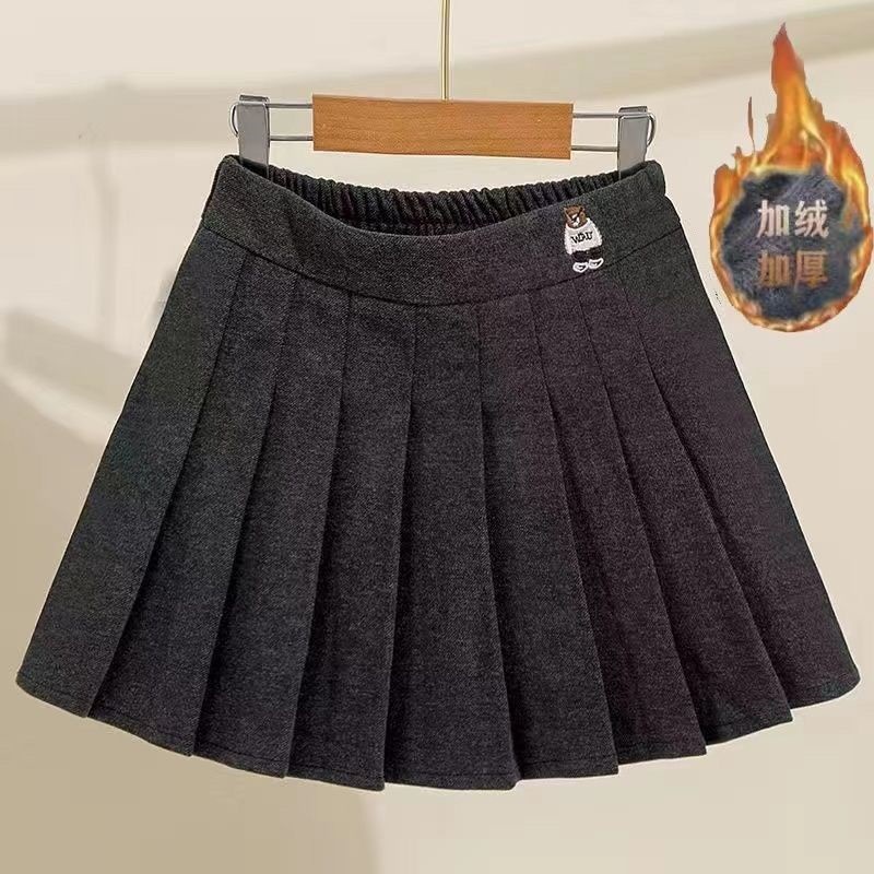• 그레이 가을, 겨울 벨벳 두꺼운 자수 곰 원단 스커트