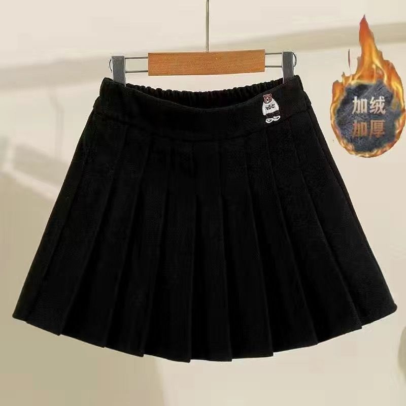 • 블랙 가을, 겨울 벨벳 두꺼운 자수 곰 원단 스커트