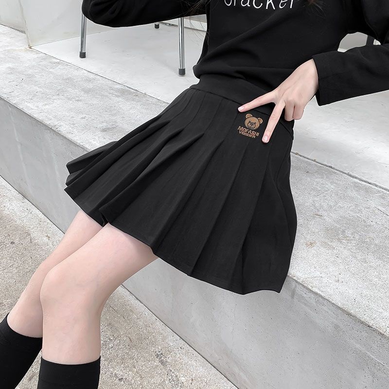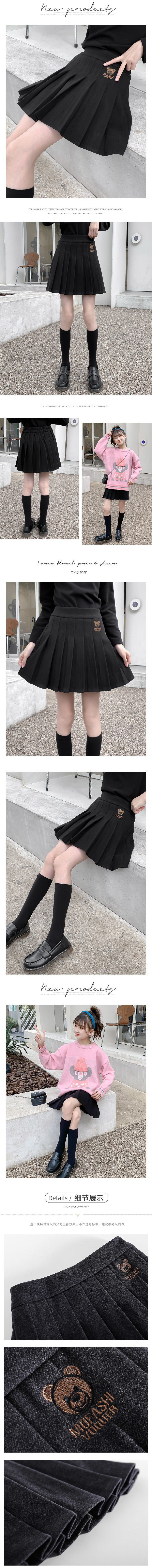 • 블랙 모직 북극곰 플러스 벨벳 자수 곰 패브릭 스커트
