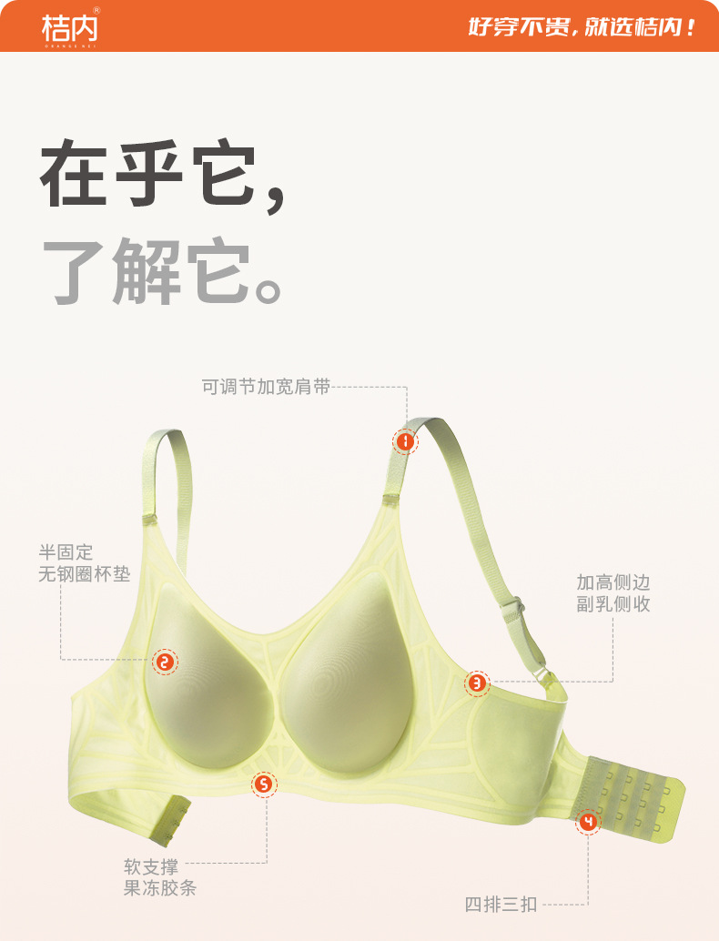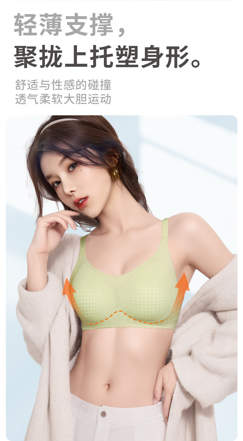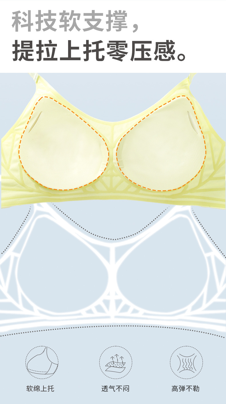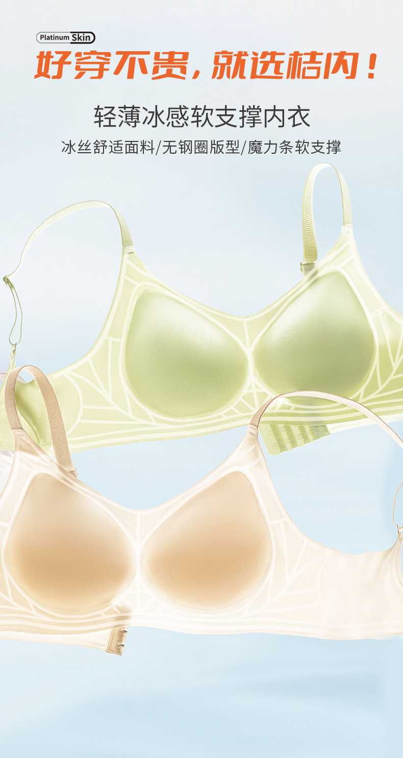 오렌지 이너 속옷 여성의 여름 얇은 아이스 실크 통기성 무더운 개더 부드러운 지원 브래지어 트레이스 무테 속옷스토어 가기