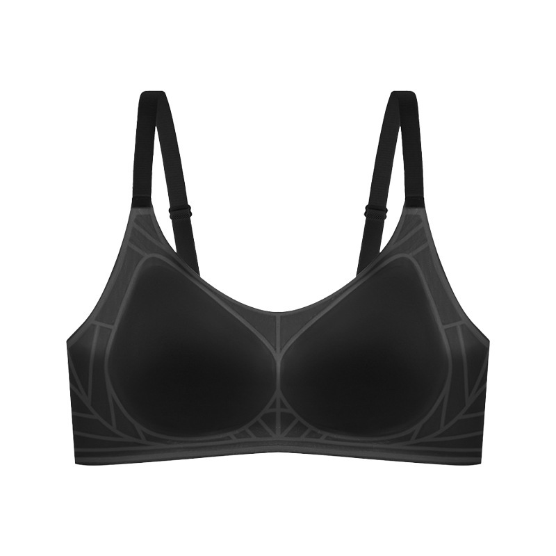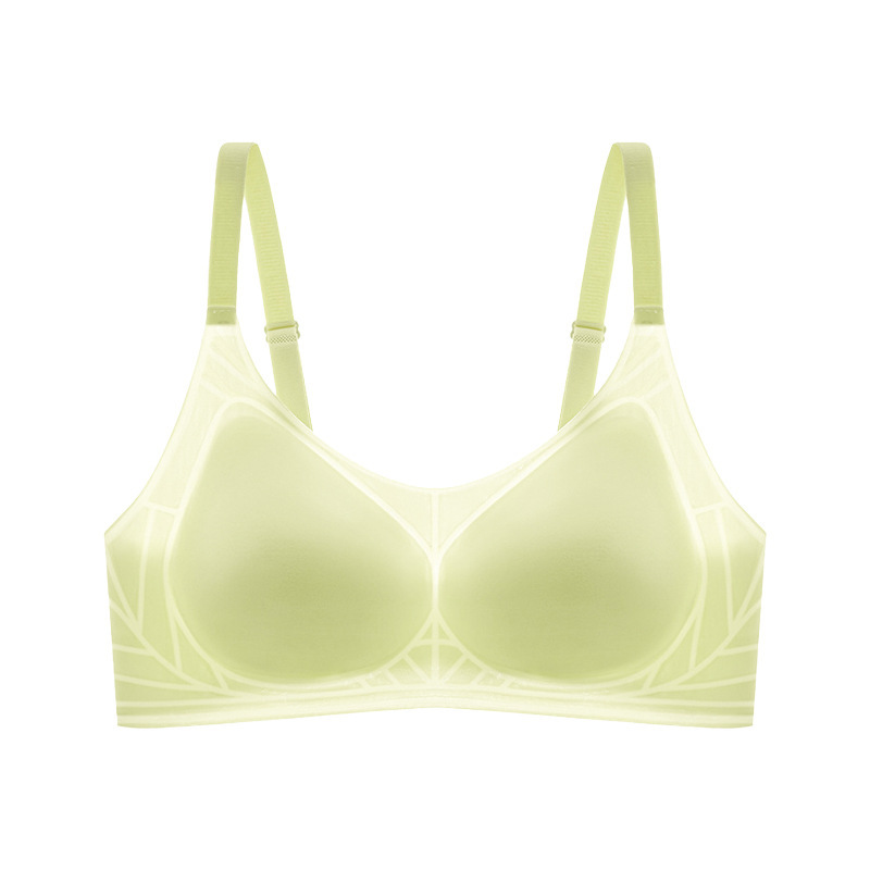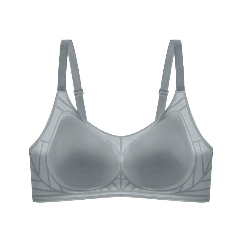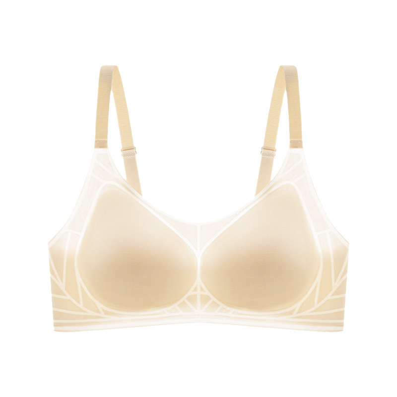 오렌지 이너 속옷 여성의 여름 얇은 아이스 실크 통기성 무더운 개더 부드러운 지원 브래지어 트레이스 무테 속옷