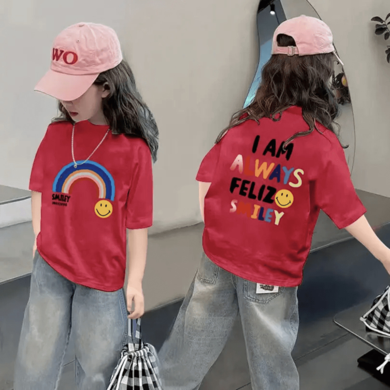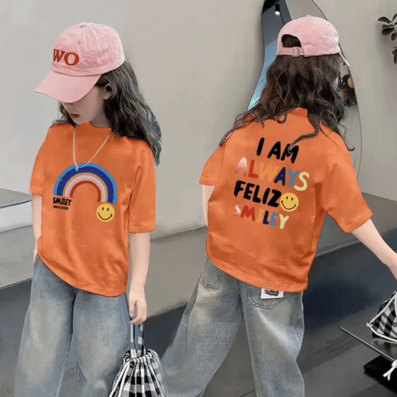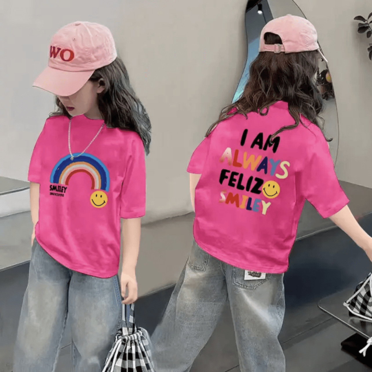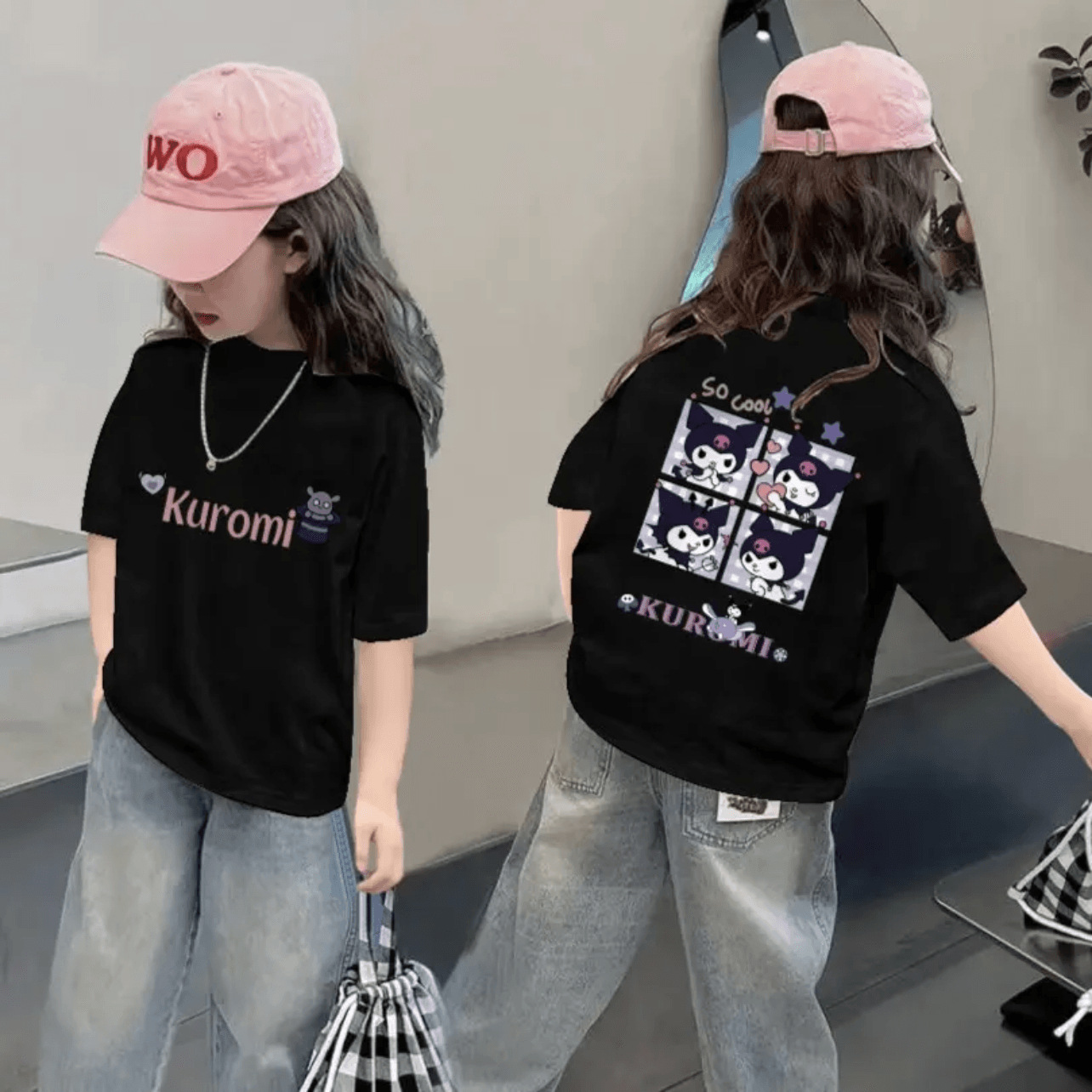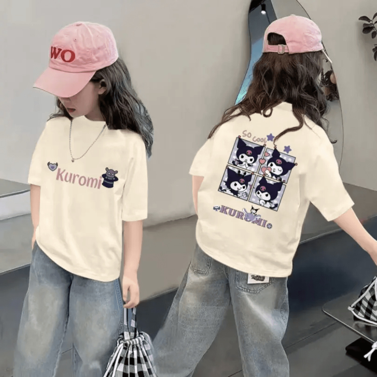 소녀 2025 년 새 여름 퓨어 코튼 카툰 프린트 반팔 티셔츠 빅 키즈 캐주얼 올 매치 반소매 탑 트렌디 티셔츠스토어 가기