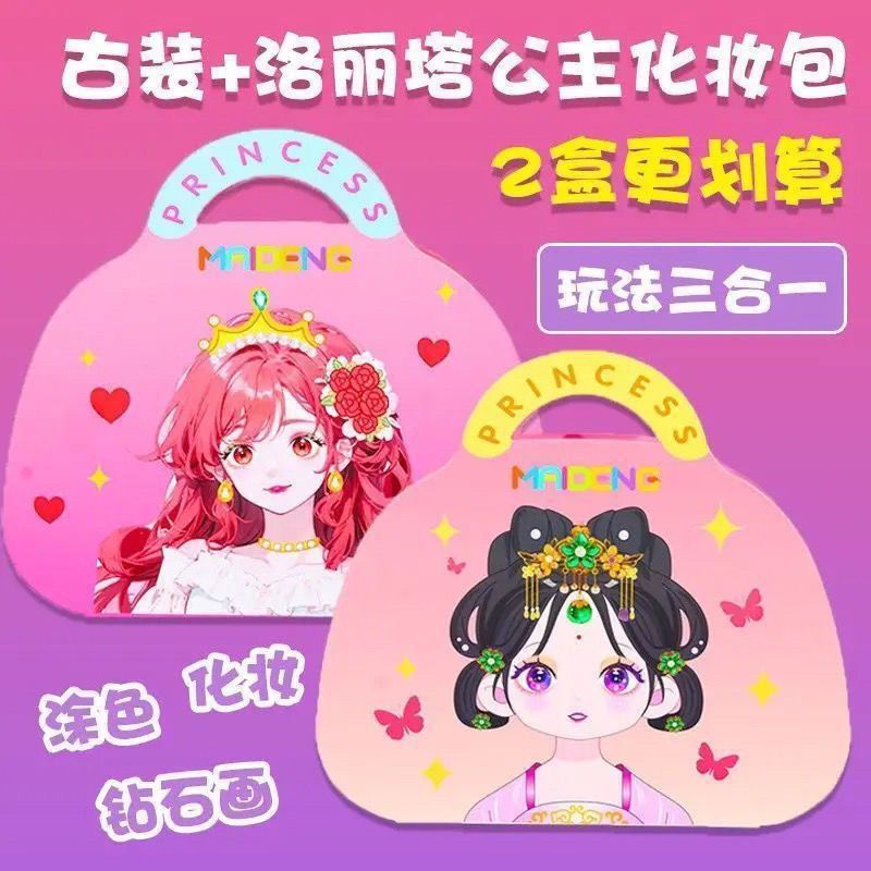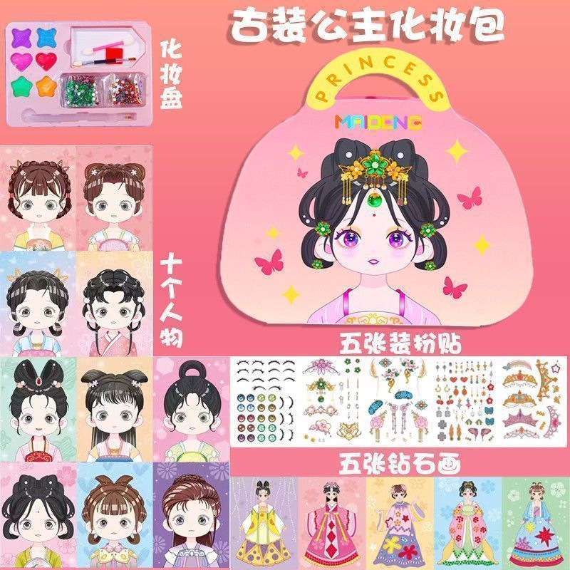 높은 뷰티 가치 공주 메이크업 가방 어린이 DIY 메이크업 책 몰입 형 장난감 스티커 소녀 장난감 생일 선물스토어 가기