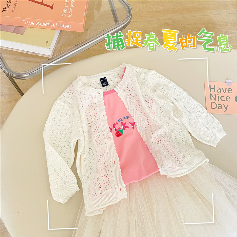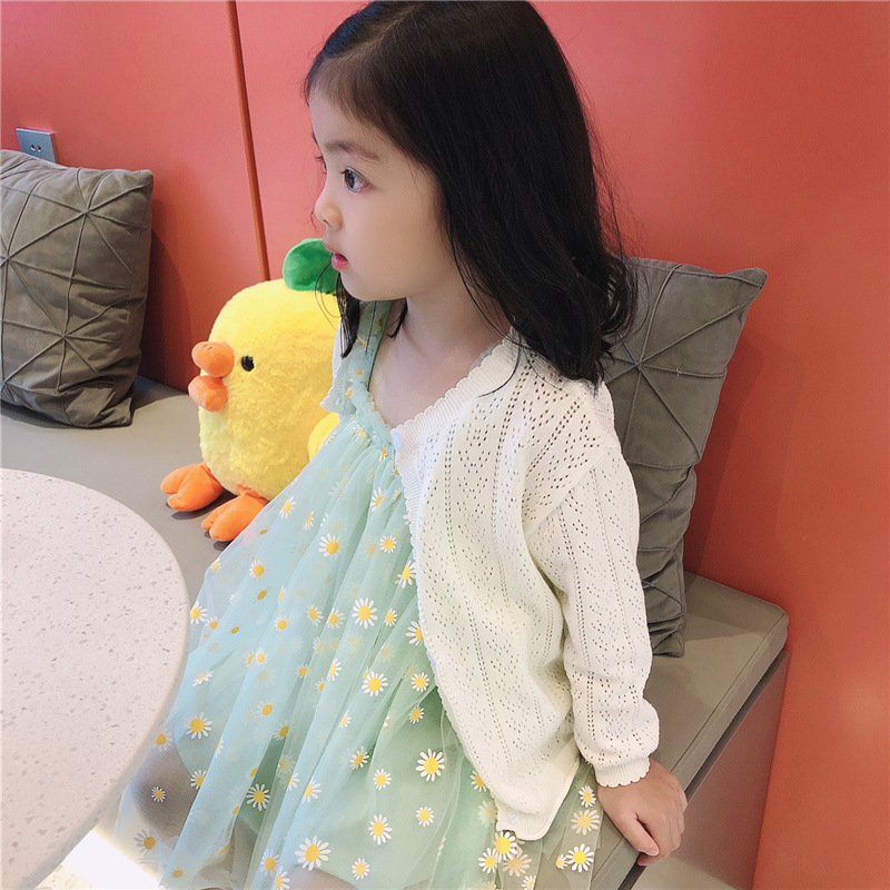 중소형 아동용 면 긴팔 재킷, 여름용 얇은 상의, 유아용 니트 가디건, 자외선 차단복, 여아용 에어컨 셔츠, 트렌디스토어 가기