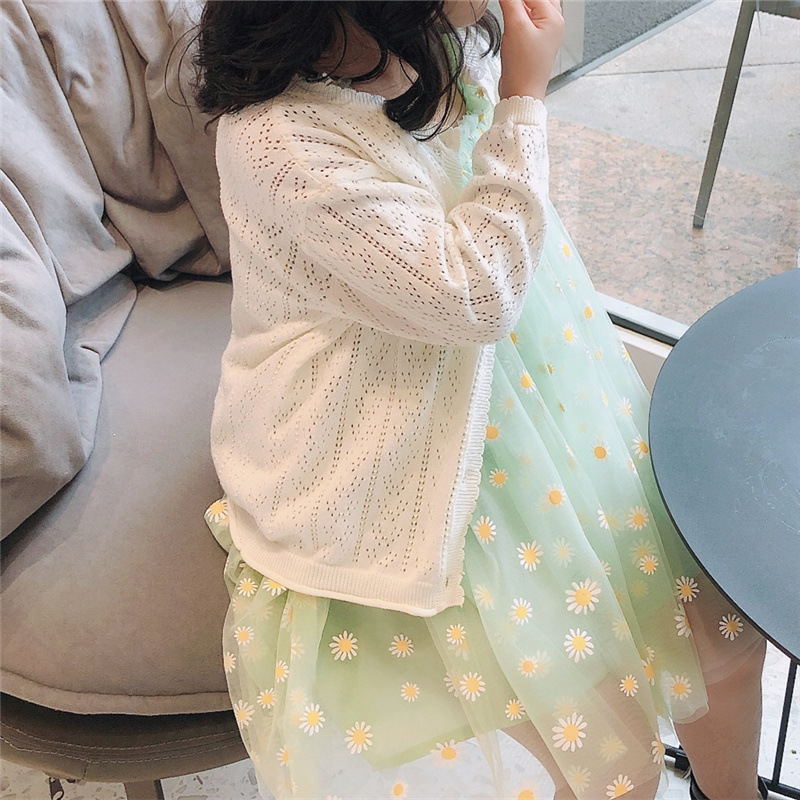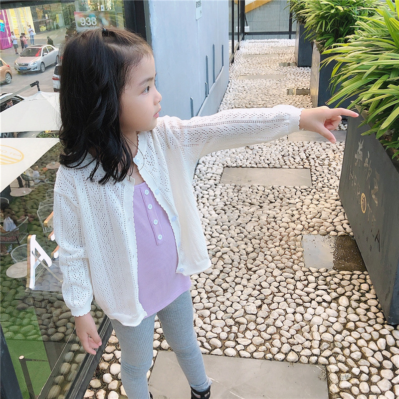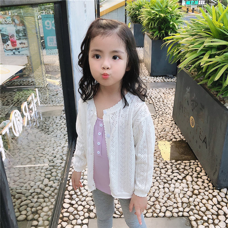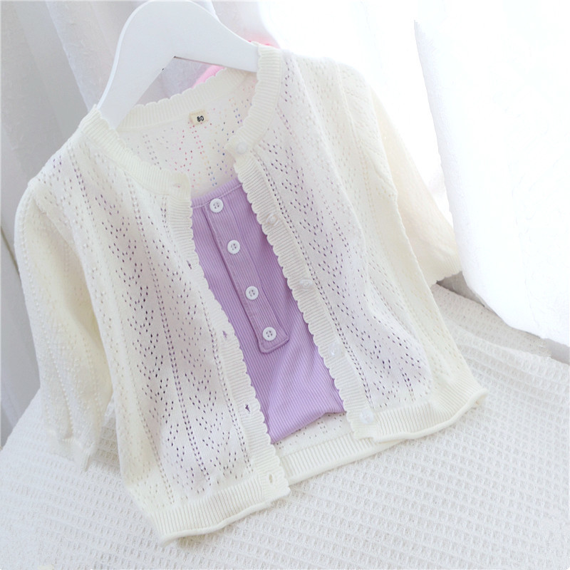 중소형 아동용 면 긴팔 재킷, 여름용 얇은 상의, 유아용 니트 가디건, 자외선 차단복, 여아용 에어컨 셔츠, 트렌디
