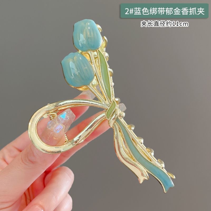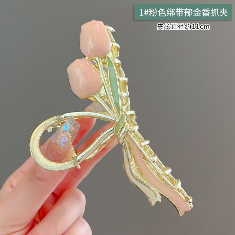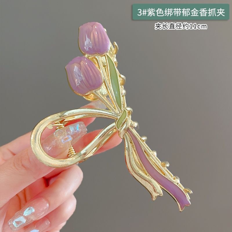 2024 새로운 슈퍼 페어리 튤립 헤어핀 머리 머리 금속 잡아 클립 여성용 여름 대형 프리미엄 상어 클립스토어 가기