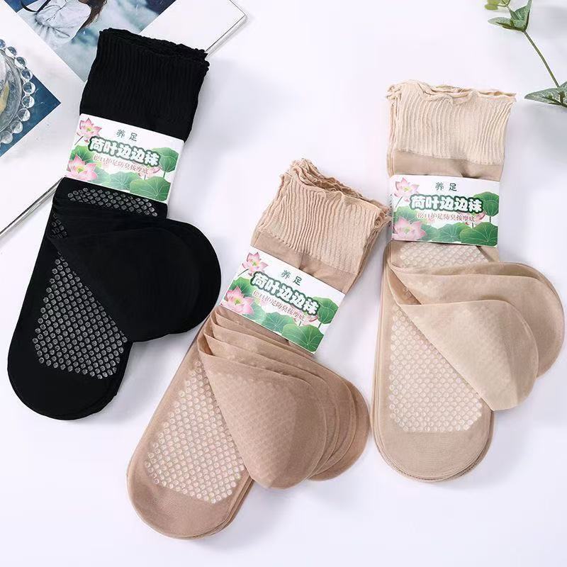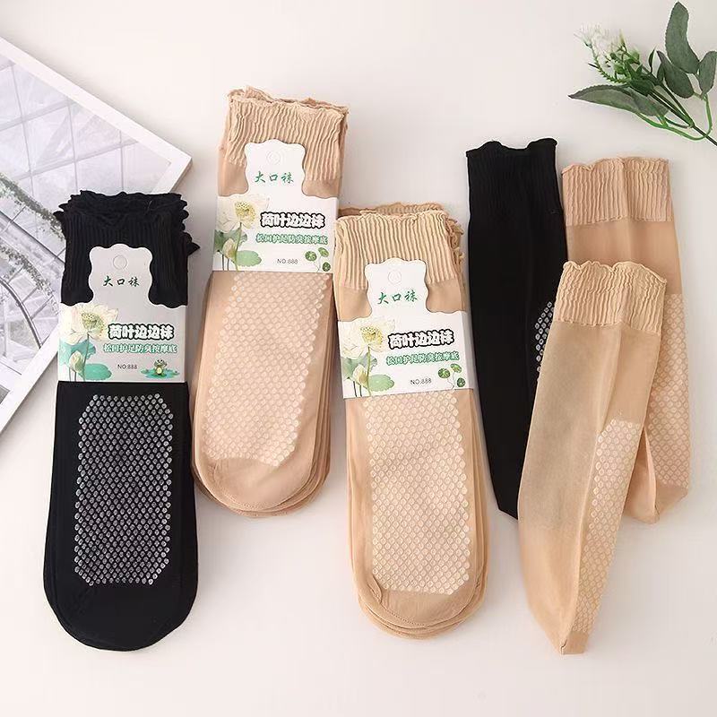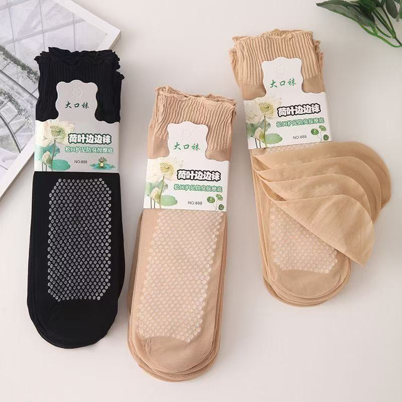 땀흡수 면바닥, 미끄럼방지, 루즈한 러플 레이스 스타킹, 짧은 양말, 루즈한 양말, 입이 넓은 임산부 및 노인용