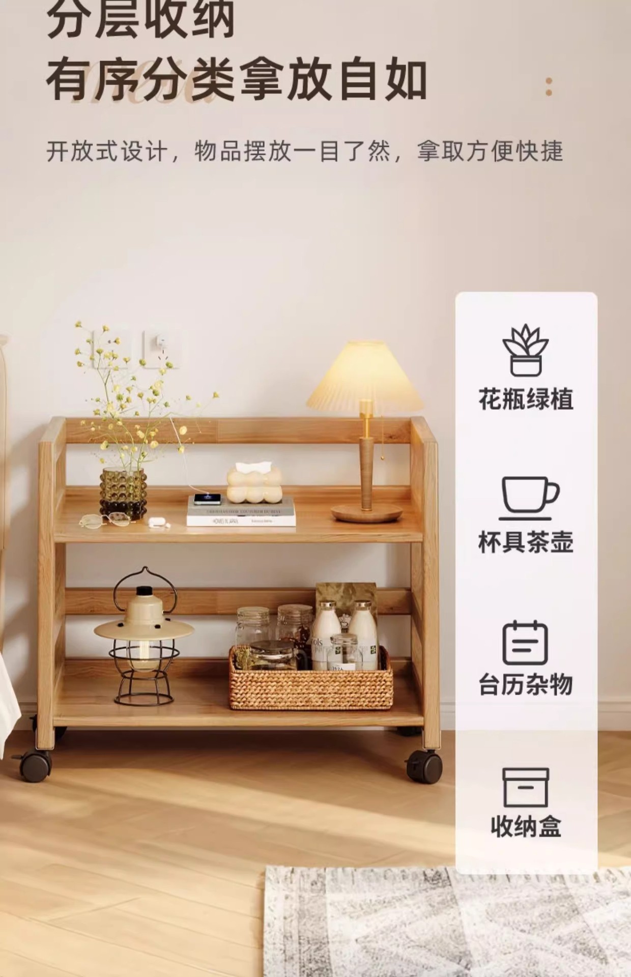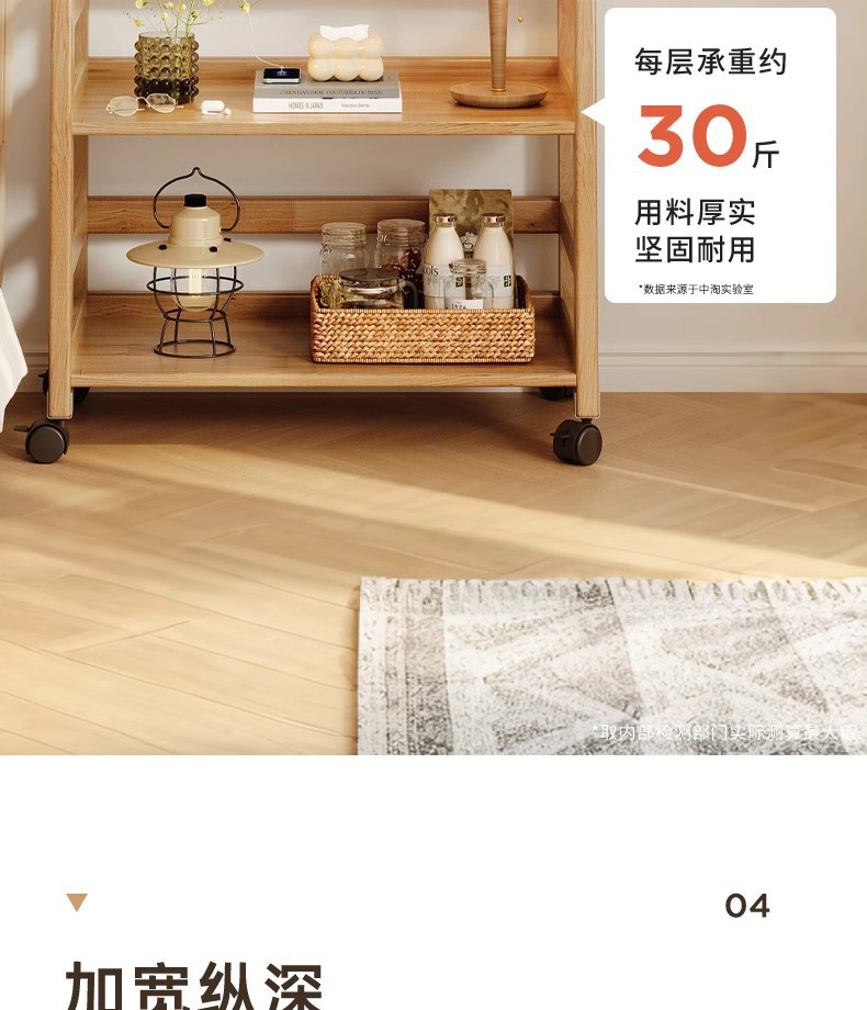 나무 색상 단단한 나무 침대 옆 테이블 보관함 바닥에서 천장까지 거실 다층 트롤리 침실 이동식 보관함스토어 가기