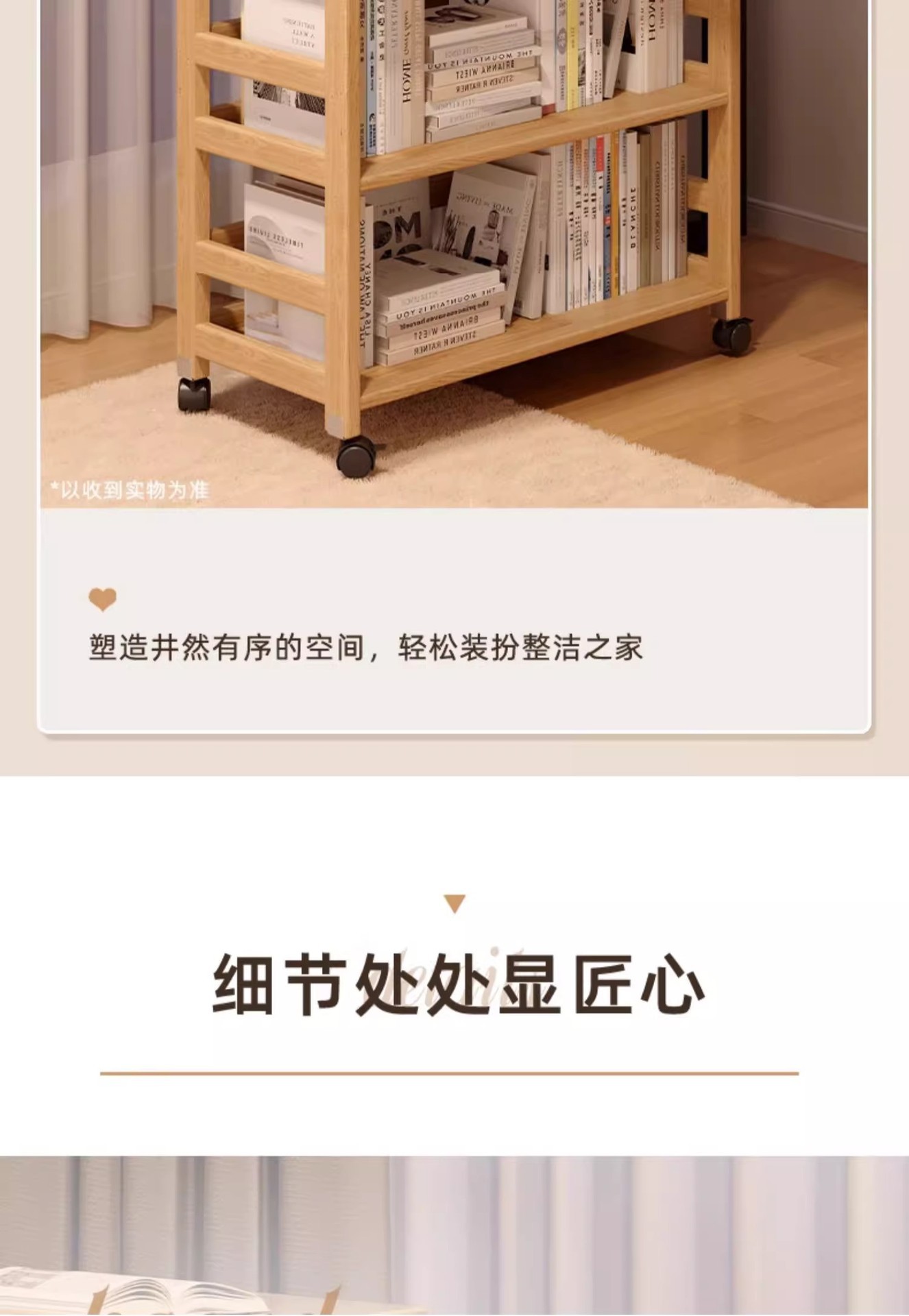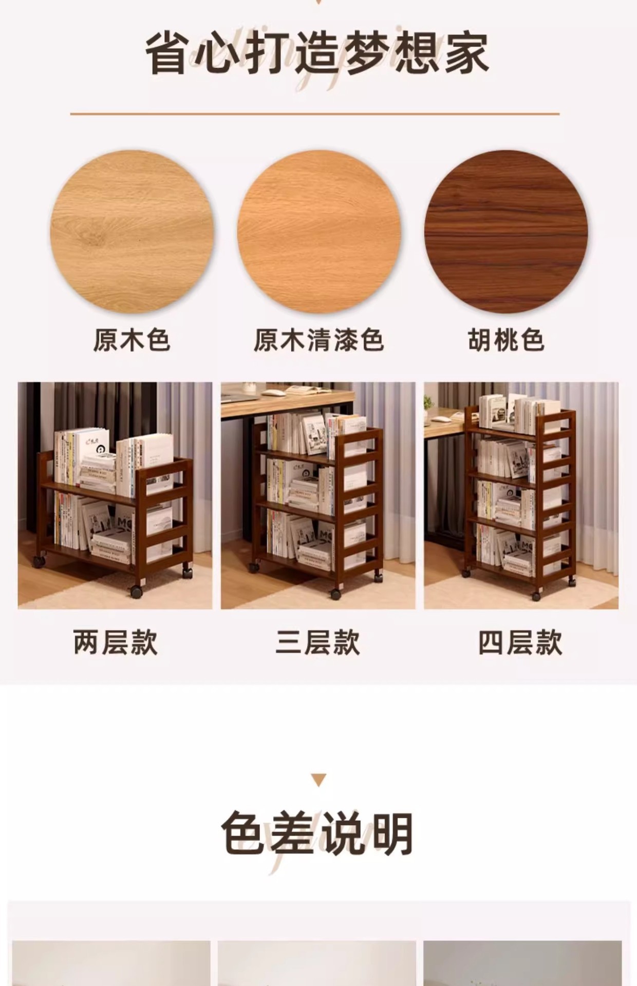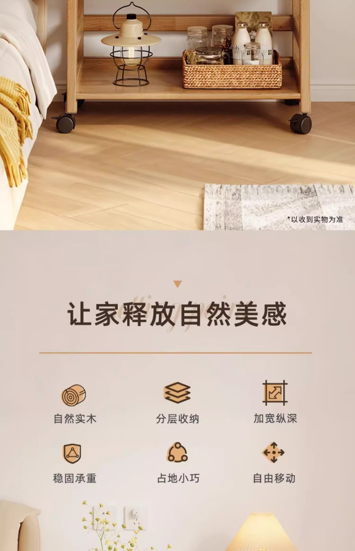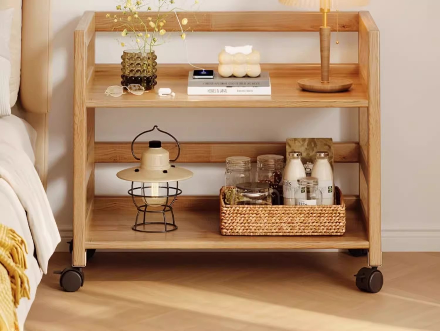 나무 색상 단단한 나무 침대 옆 테이블 보관함 바닥에서 천장까지 거실 다층 트롤리 침실 이동식 보관함