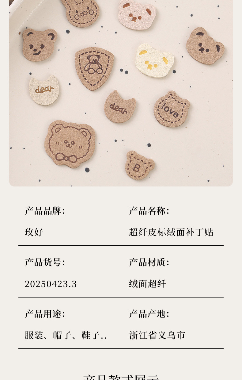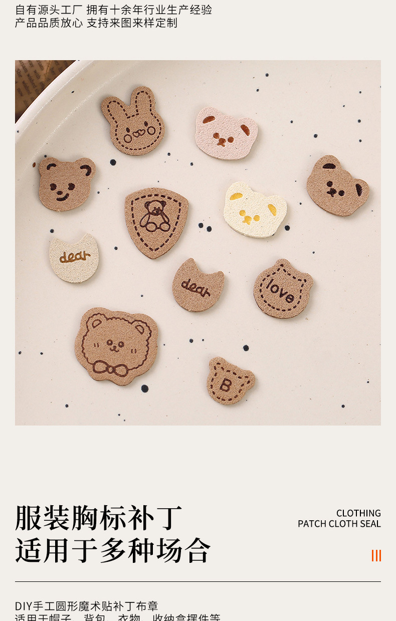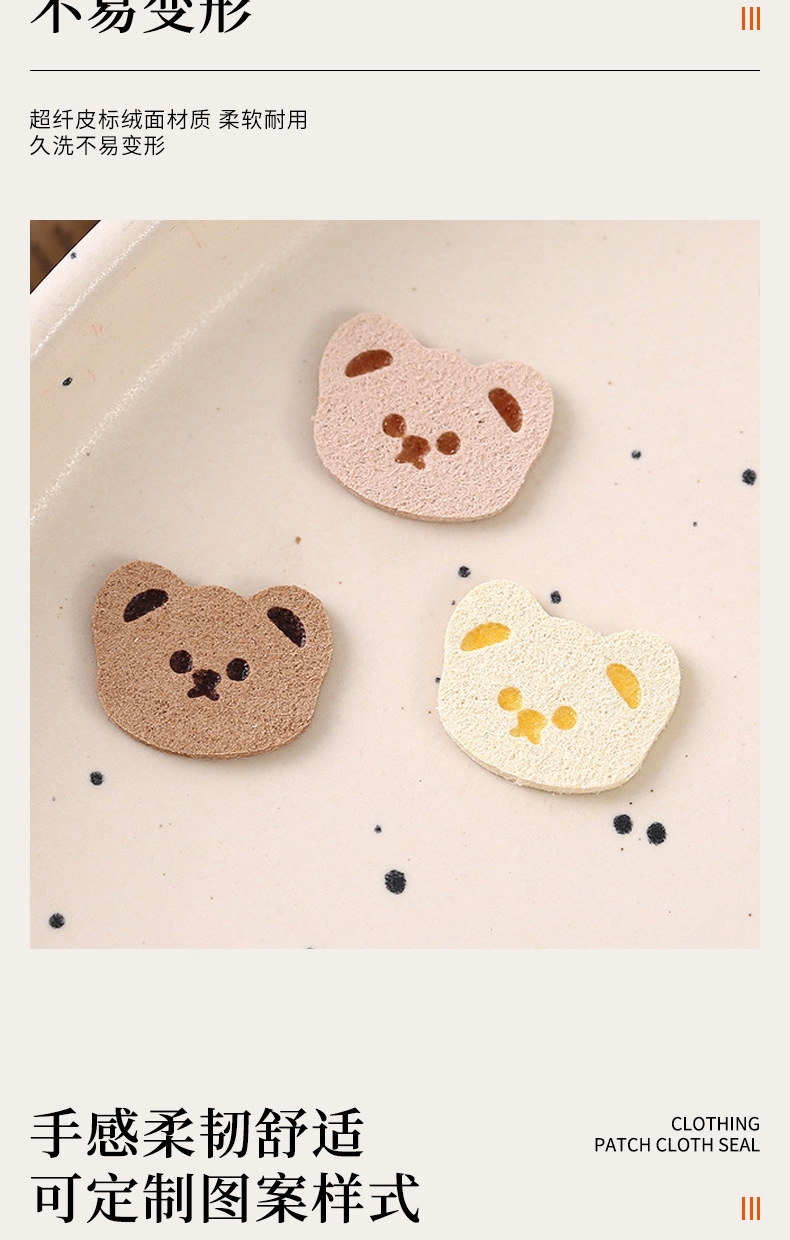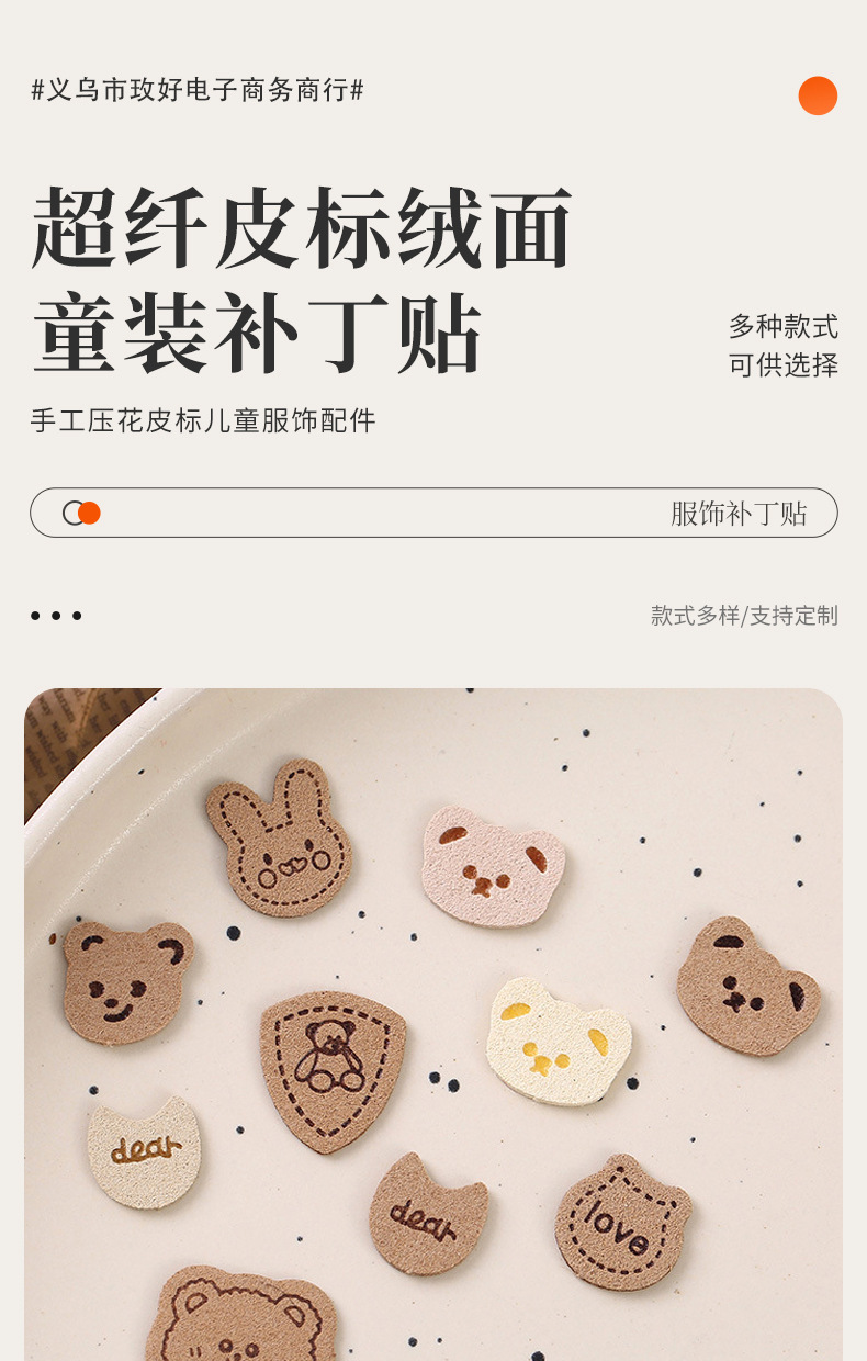 어린이 의류 패치 마이크로 화이버 가죽 라벨 스웨이드 마이크로 화이버 소프트 가죽 라벨 양각 수제 베어 헤드 가죽 라벨 어린이 의류 액세서리스토어 가기