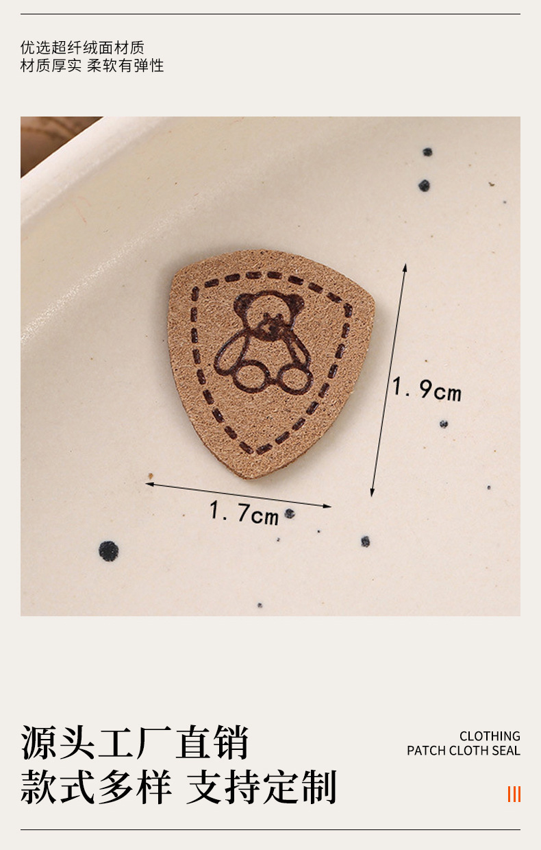 어린이 의류 패치 마이크로 화이버 가죽 라벨 스웨이드 마이크로 화이버 소프트 가죽 라벨 양각 수제 베어 헤드 가죽 라벨 어린이 의류 액세서리