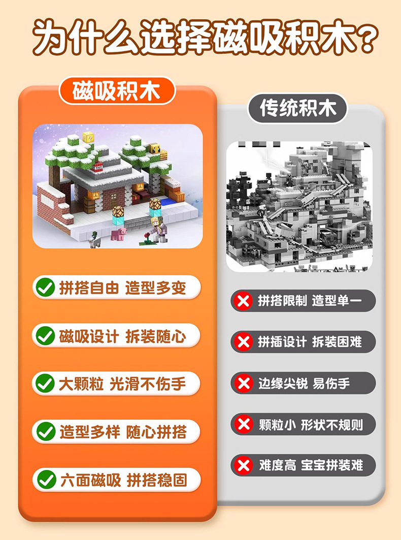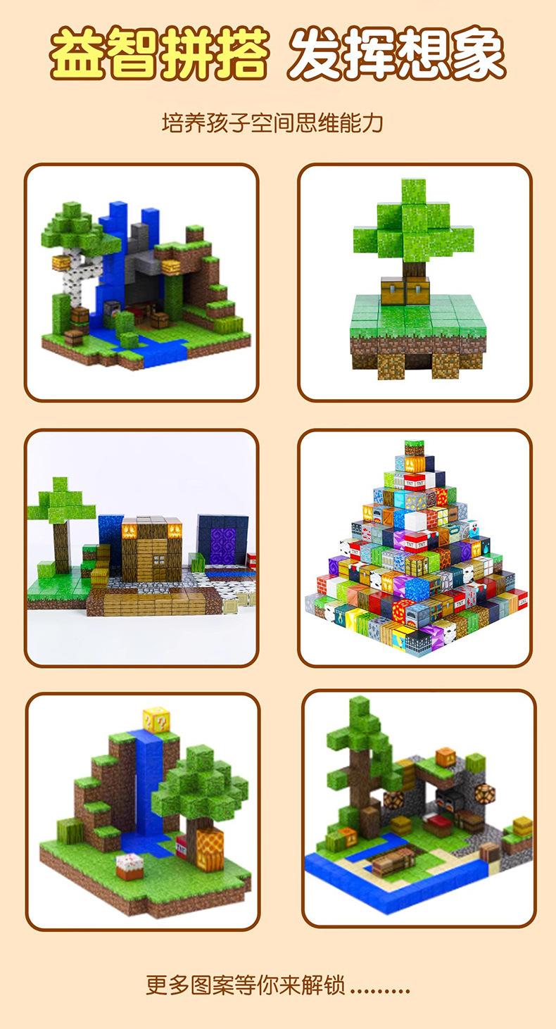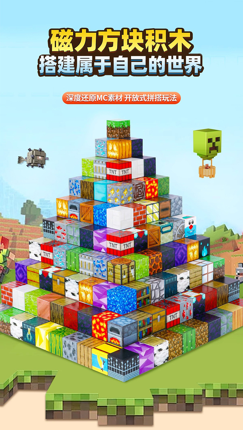 국경을 넘는 인기상품 마인크래프트 자석 블록 네자 빌딩블록 퍼즐 교육용 조립 자석 어린이 장난감 도매스토어 가기
