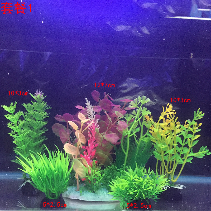 어항 장식 수초 수족관 조경 인조 수초 플라스틱 꽃과 식물 다양한 크기 장식품 간편 세트
