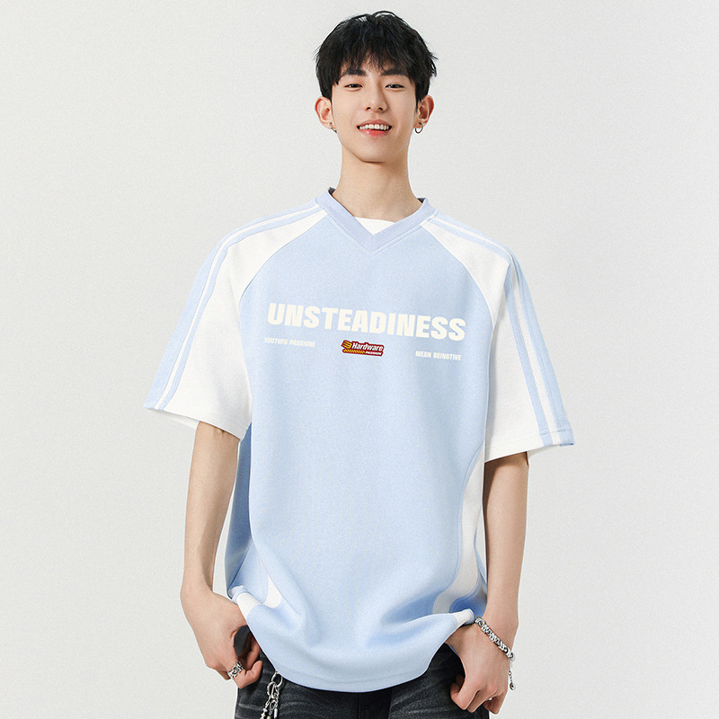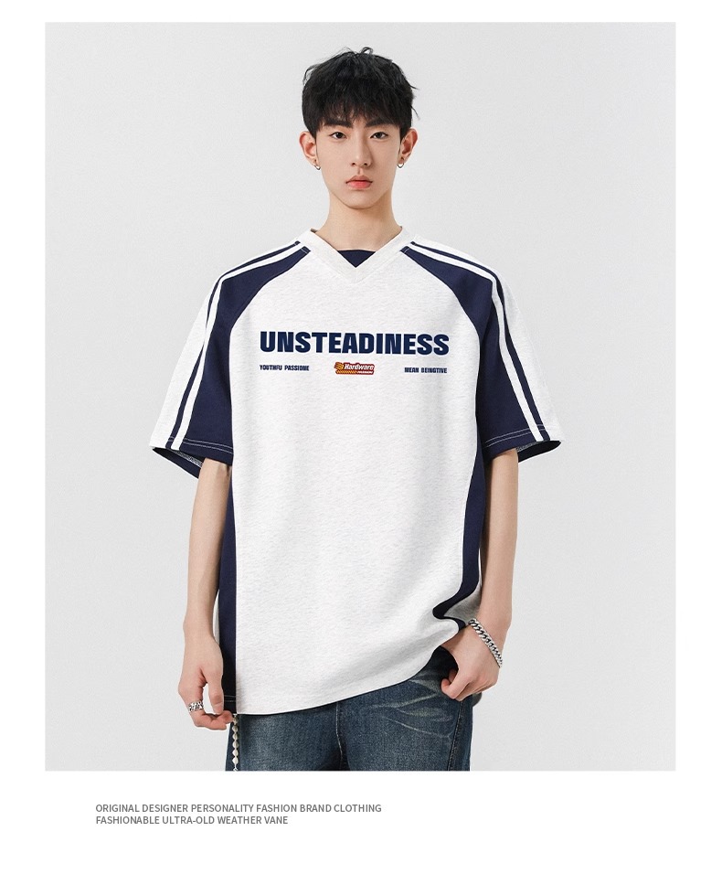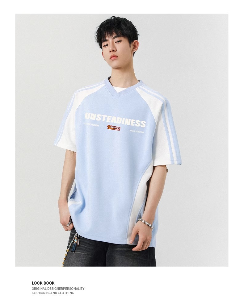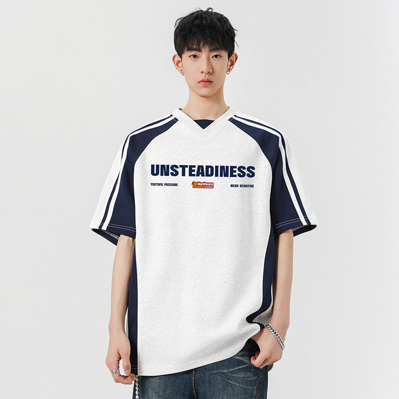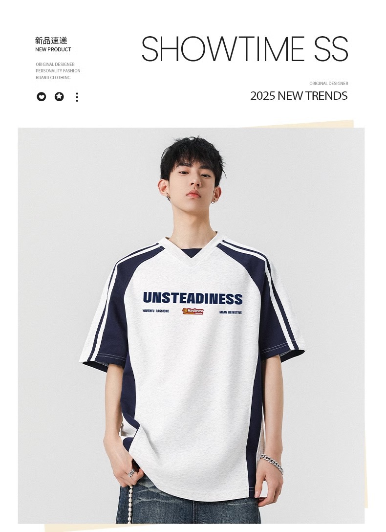 NASA 반팔 티셔츠 남성 2025 여름 얇은 트렌디 브랜드 루즈 V 넥 반팔 캐주얼 스포츠 탑
