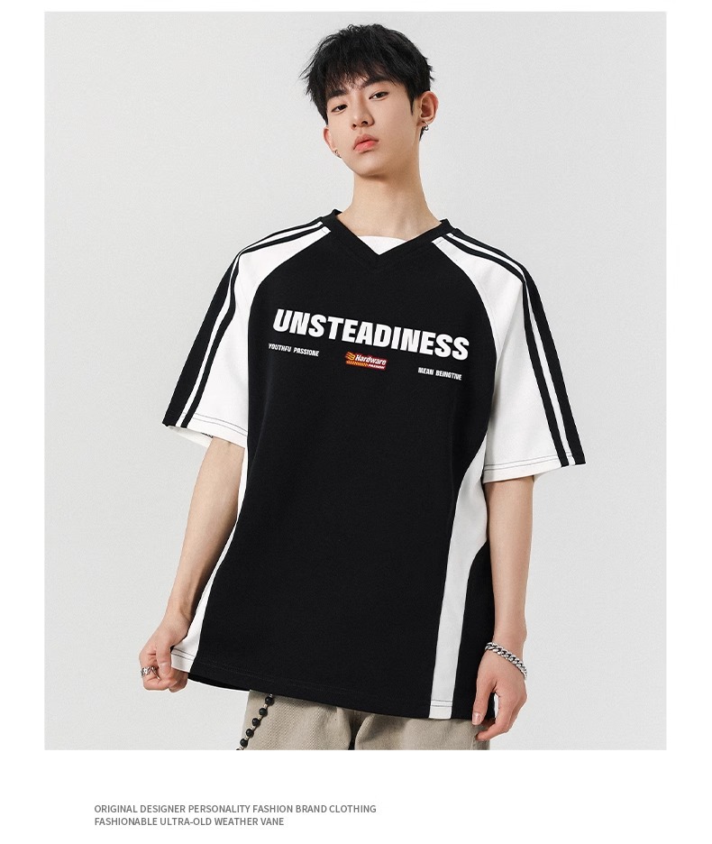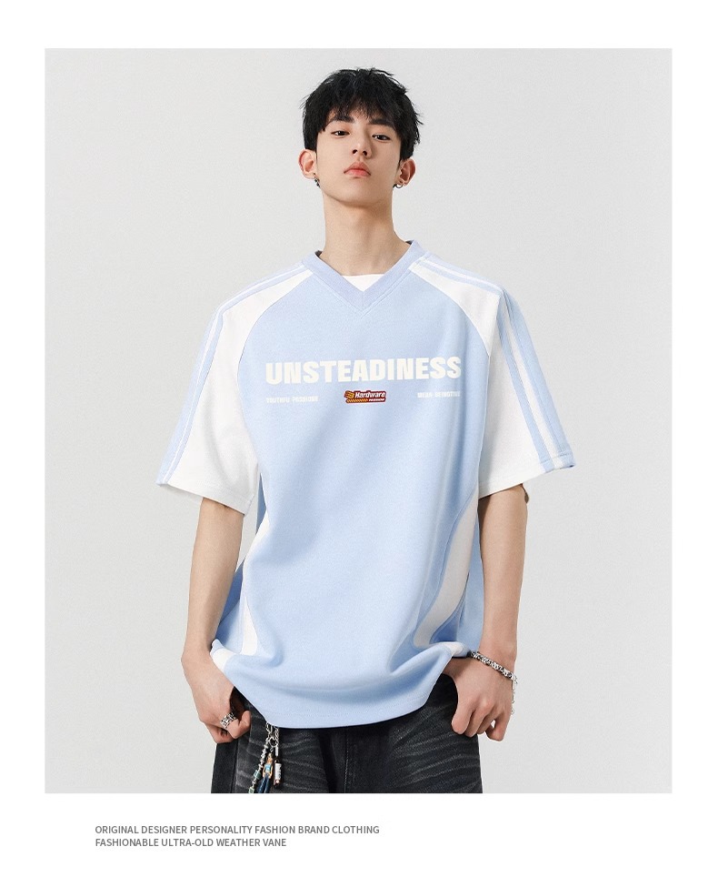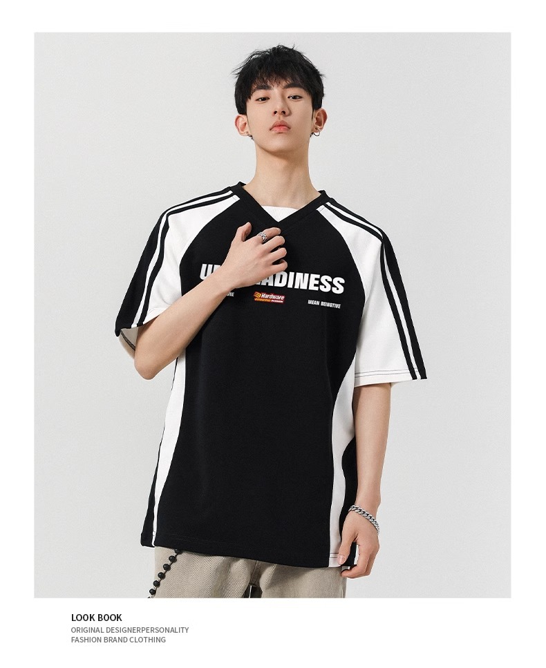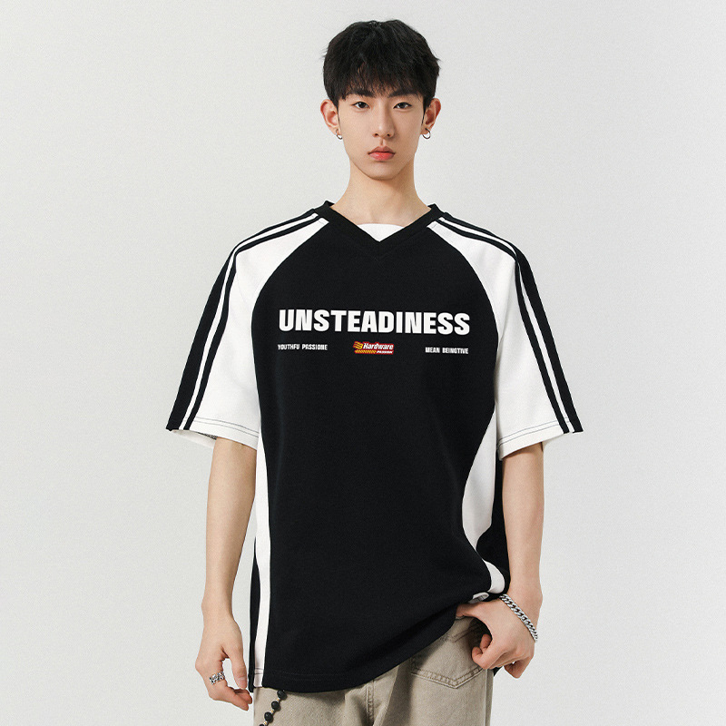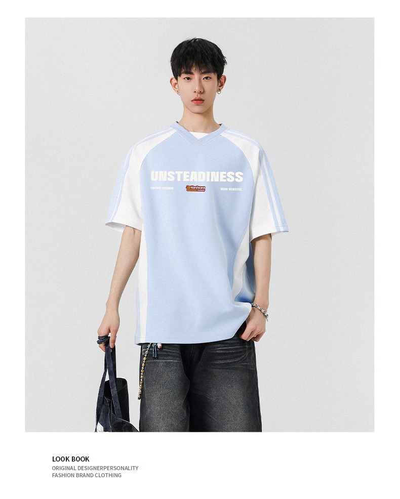NASA 반팔 티셔츠 남성 2025 여름 얇은 트렌디 브랜드 루즈 V 넥 반팔 캐주얼 스포츠 탑