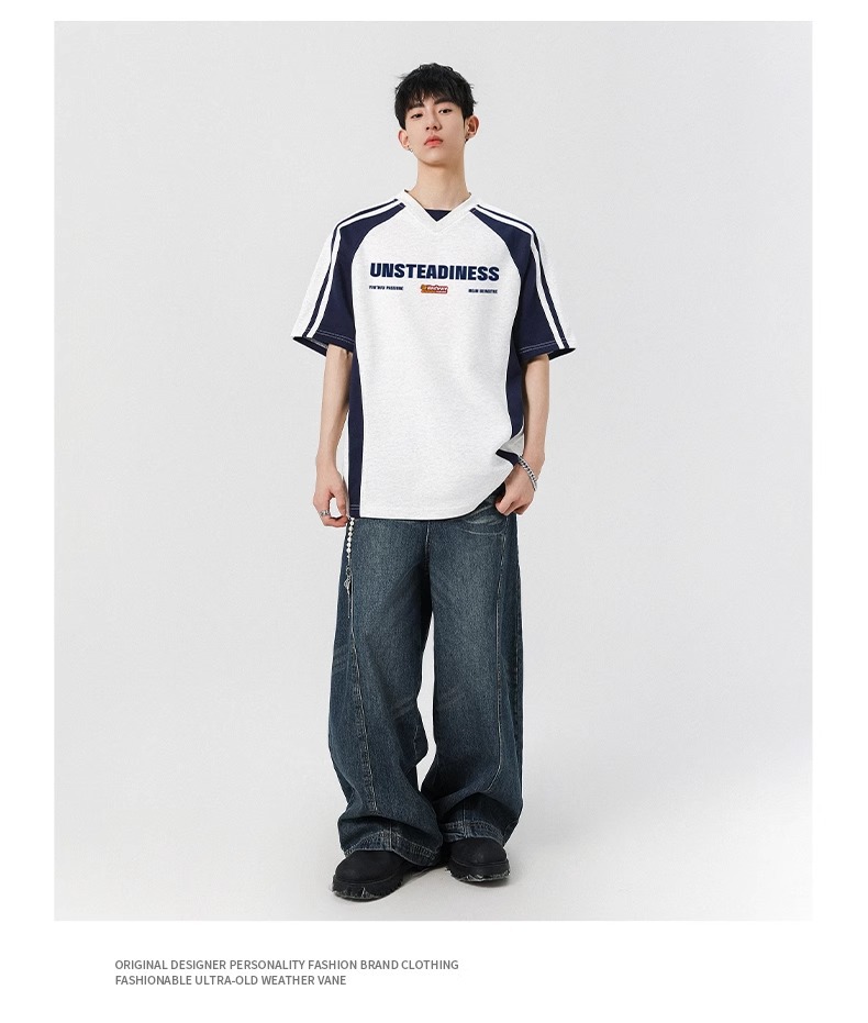NASA 반팔 티셔츠 남성 2025 여름 얇은 트렌디 브랜드 루즈 V 넥 반팔 캐주얼 스포츠 탑스토어 가기