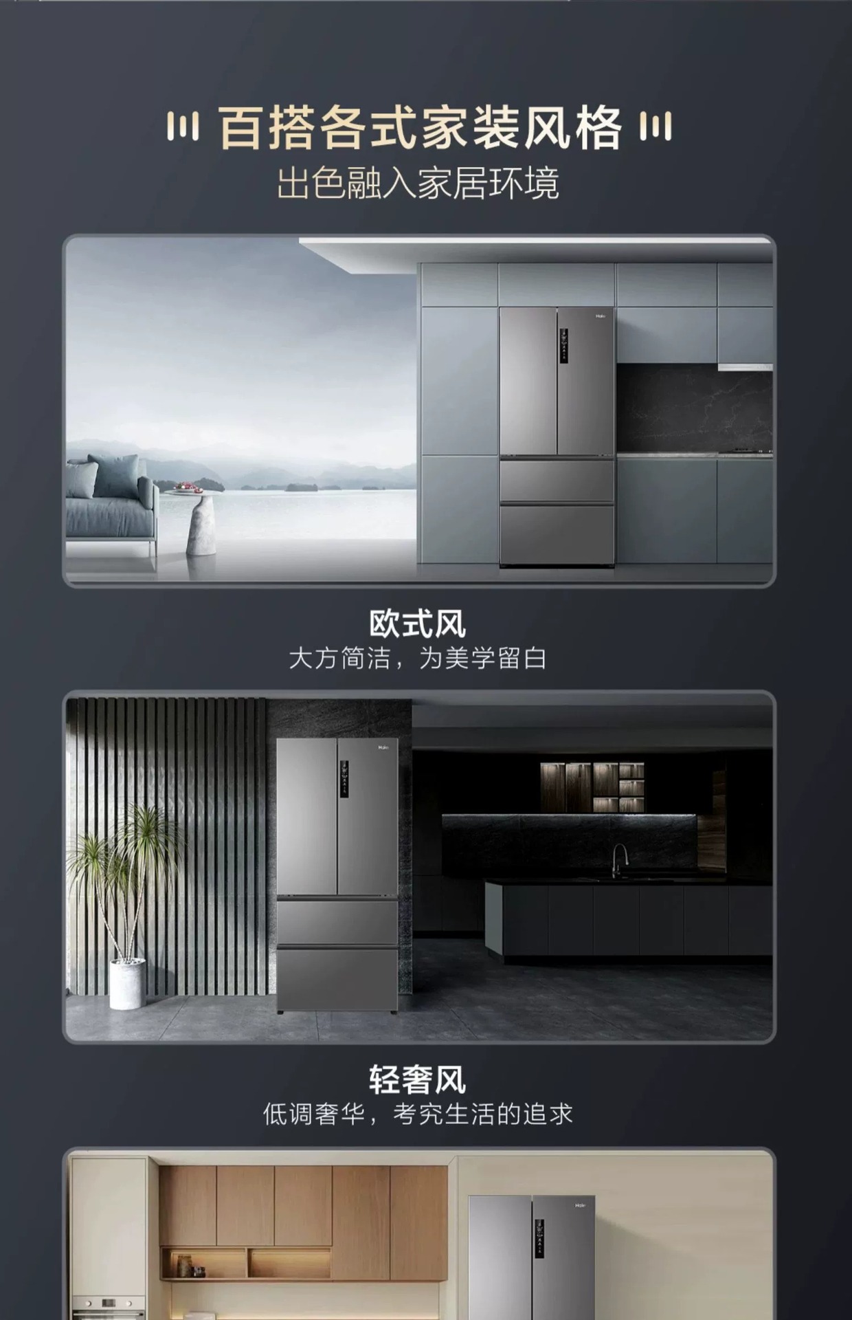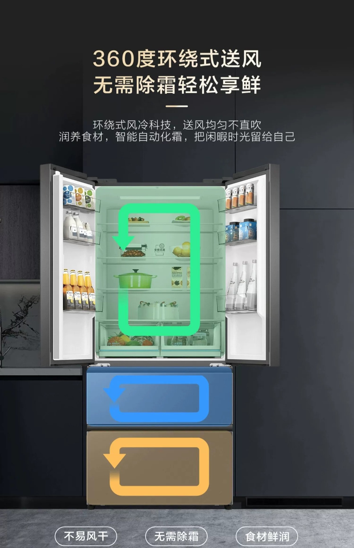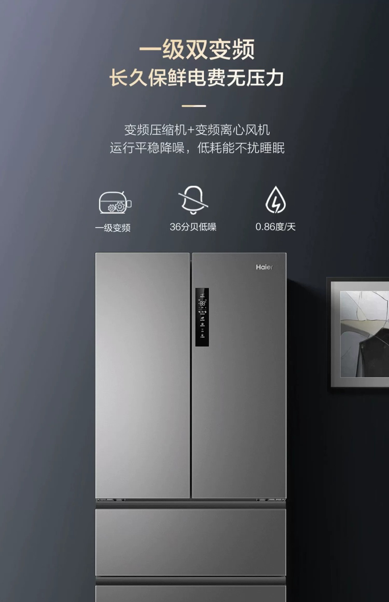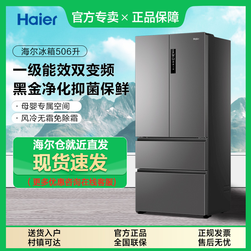 하이얼 냉장고 506L 프랑스 더블 도어 멀티 레벨 주파수 변환 서리없는 대용량 냉장고 가구 공식스토어 가기
