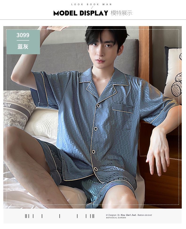남성용 잠옷 여름 얼음 실크 반팔 반바지 새틴 실크는 청소년 가정복 세트 여름 얇은 스타일 외부에 착용 가능스토어 가기