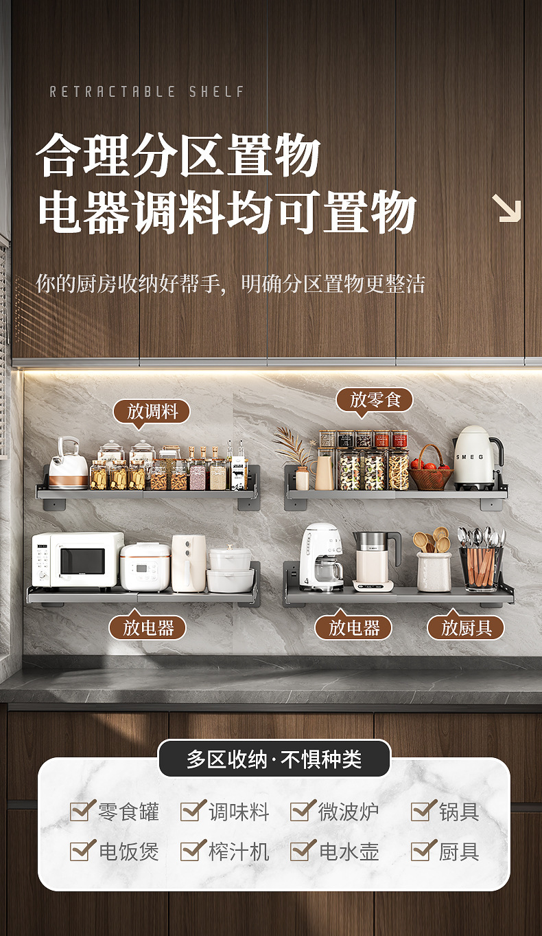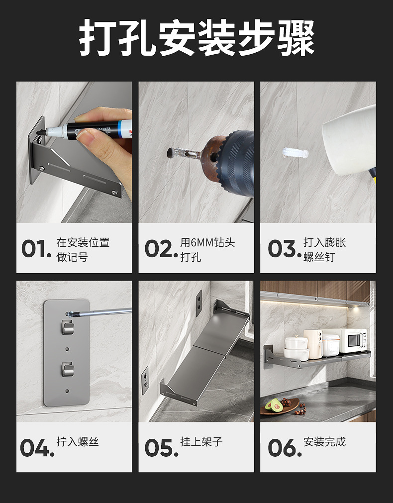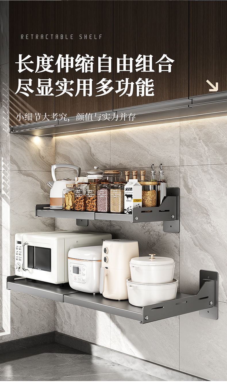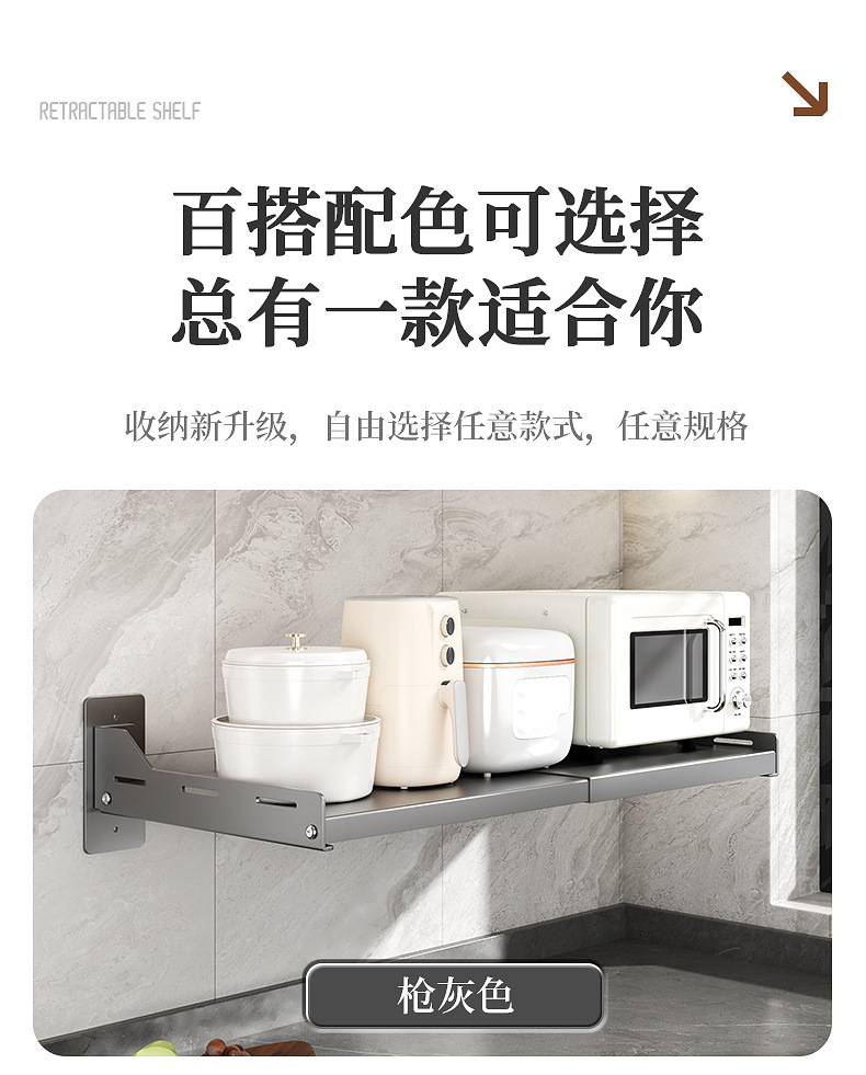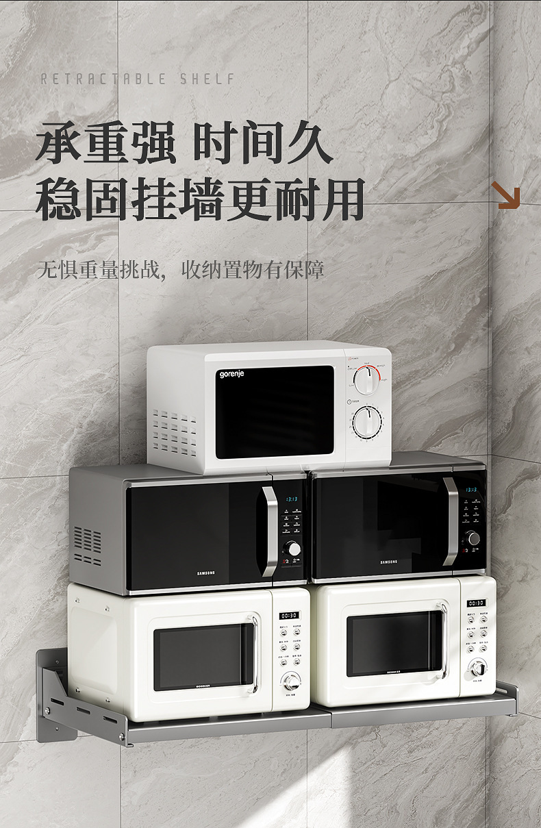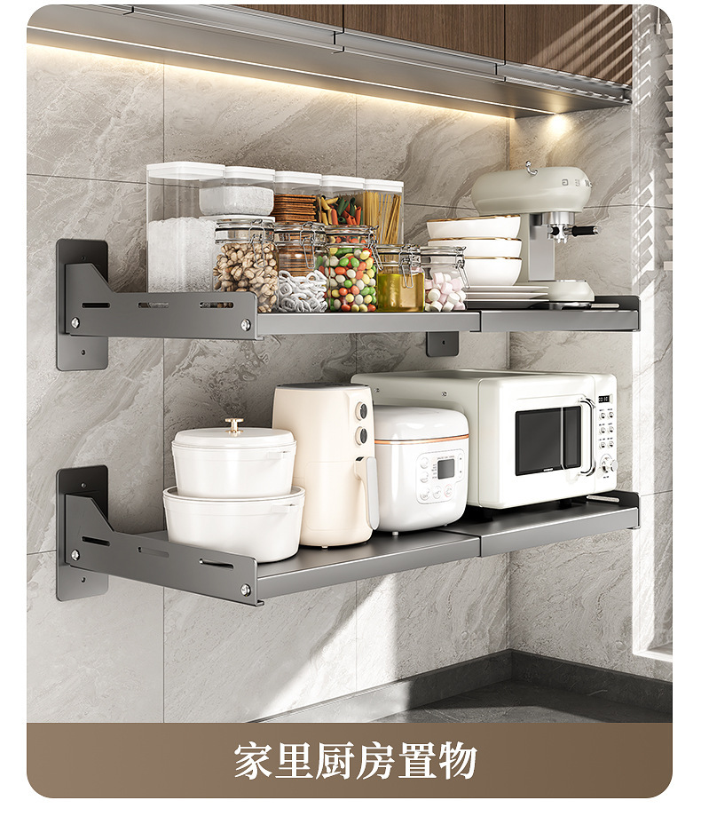 오, 벽에 구멍을 뚫을 필요가 없는 접이식 주방 전자레인지 보관함, 오븐 선반, 가정용 벽걸이형 보관함스토어 가기