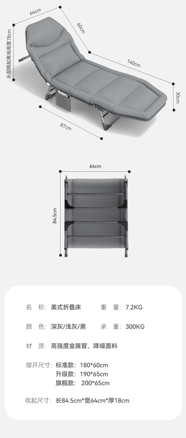 아메리칸 스타일 침대 접히는 침대 싱글 점심 휴식 침대 Recliner 성인 사무실 간단한 3 월 홈 휴대용 침대 레저스토어 가기