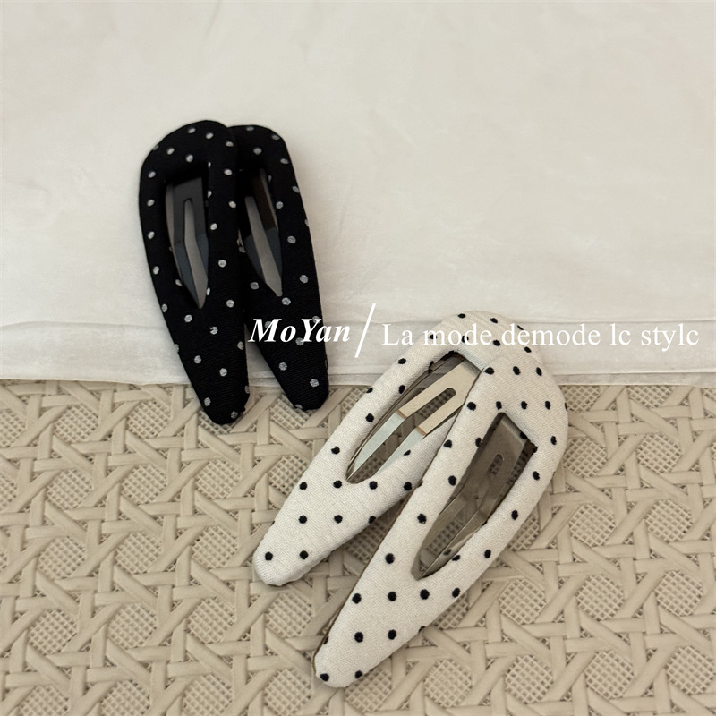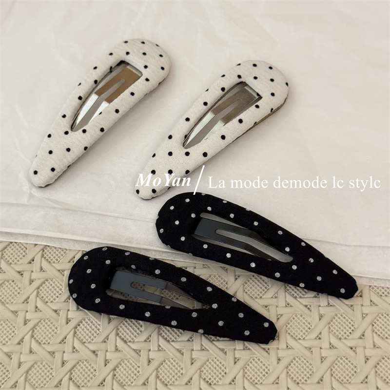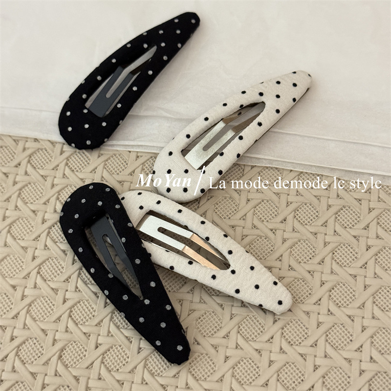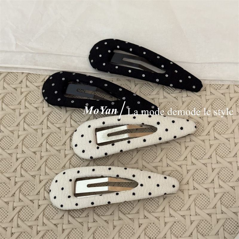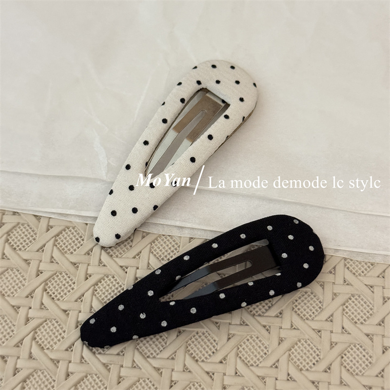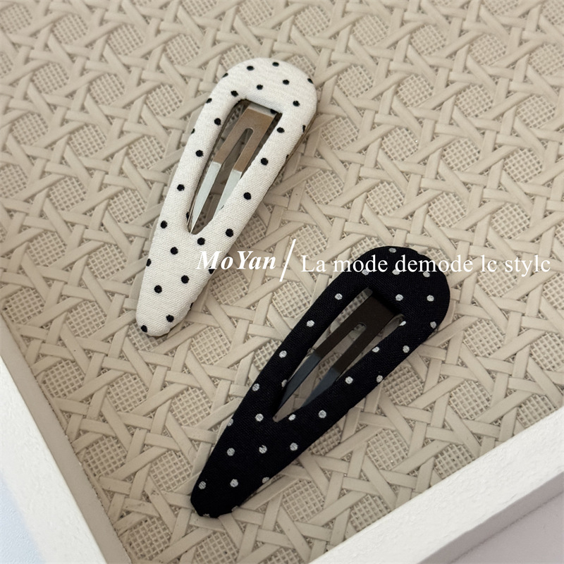 한국식 하이 퀄리티 패브릭 헤어핀 간단한 흑백 폴카 도트 헤어핀 복고풍 물방울 BB 클립 측면 클립 클립 클립 클립 클립