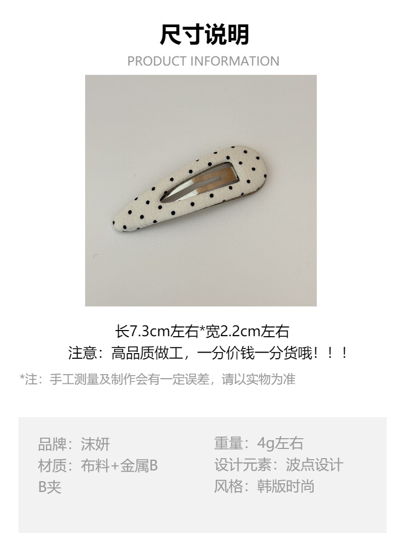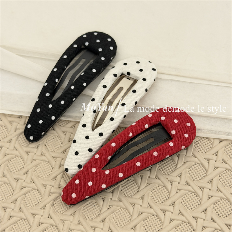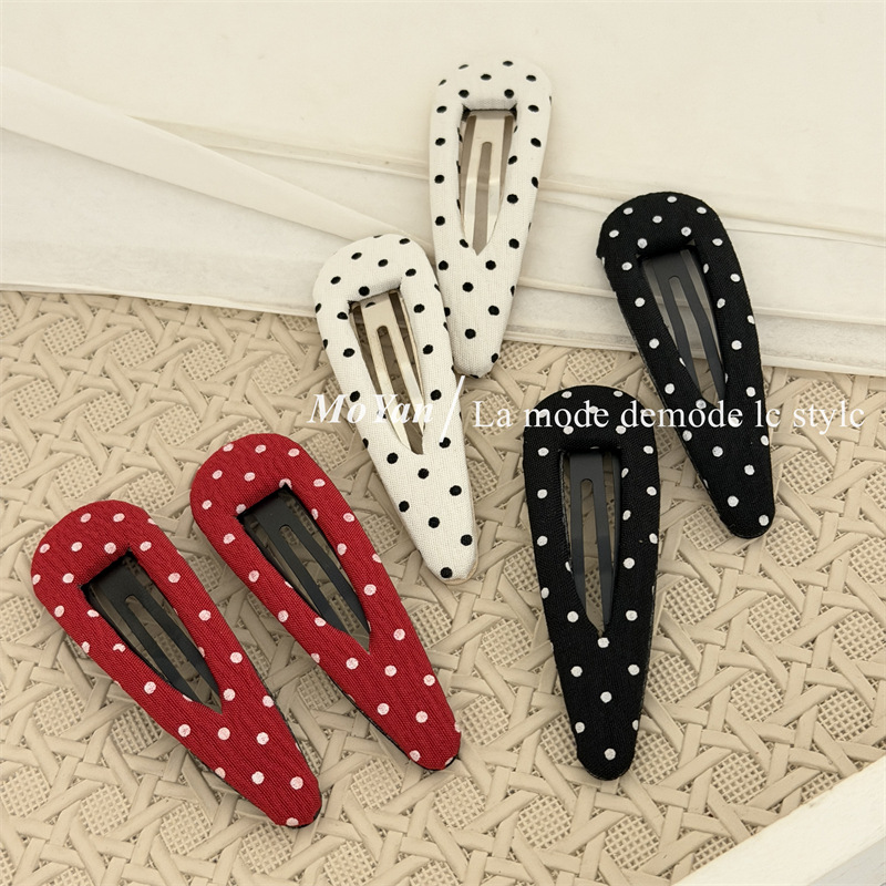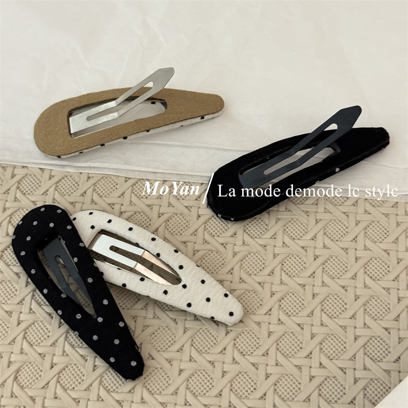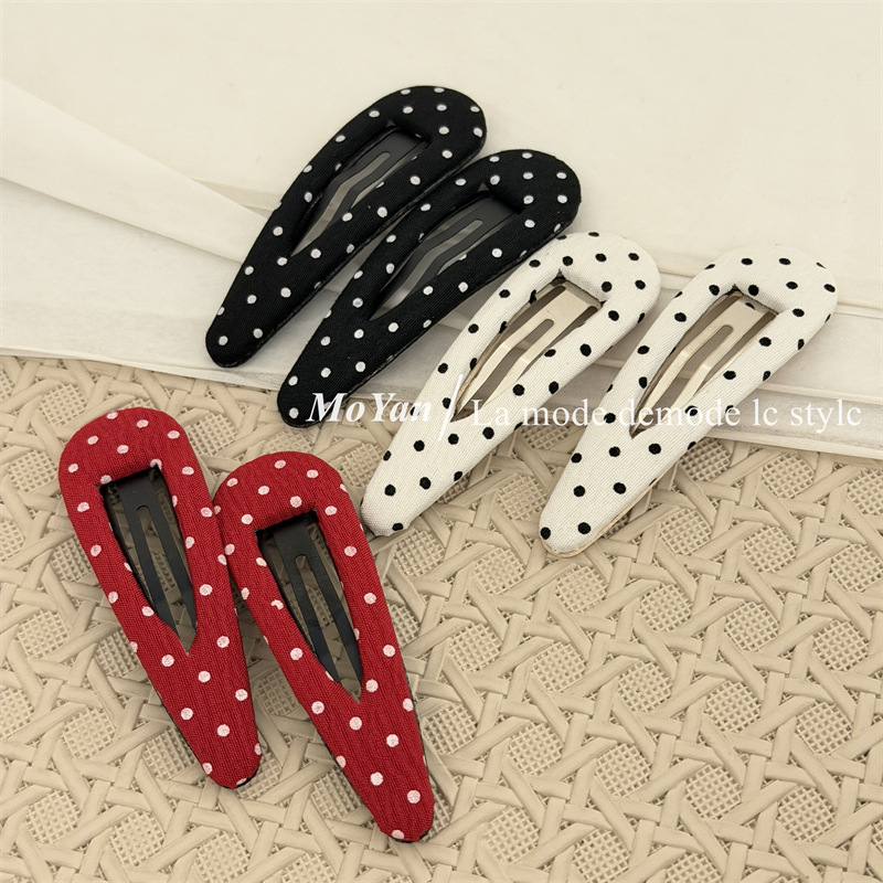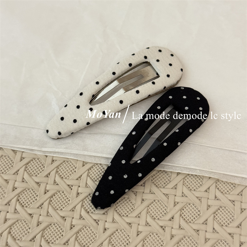 한국식 하이 퀄리티 패브릭 헤어핀 간단한 흑백 폴카 도트 헤어핀 복고풍 물방울 BB 클립 측면 클립 클립 클립 클립 클립